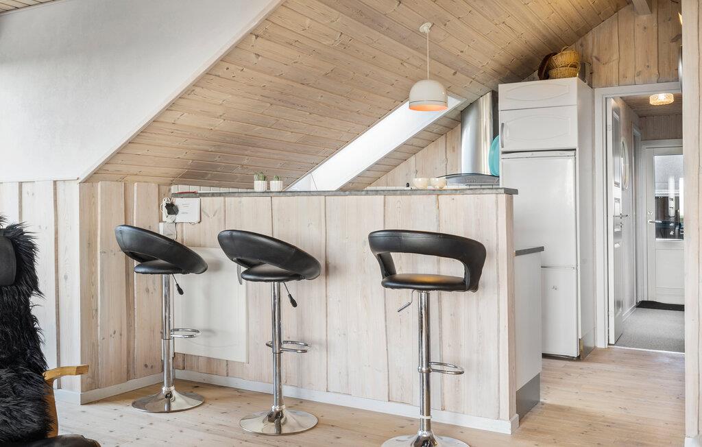 Velkommen til dette flotte hus, der ligger smukt omgivet af de åbne vidder tæt på både Vesterhavet og Ferring Sø. Indvendigt fremtræder huset flot og charmerende med velholdte træpaneler, skråvægge og mange vinduespartier, der giver dejlige lysindfald og en skøn udsigt til det grønne. Køkkenet er rummeligt og veludstyret, så gør madlavningen til et sjovt fællesprojekt, inden der dækkes op til en dejlig aftensmad ved spisebordet med plads til alle. Lad aftenen gå på hæld i det hyggelige sofahjørne med snacks, brætspil og en god film på tv'et, mens I lægger planer for de kommende dage.
