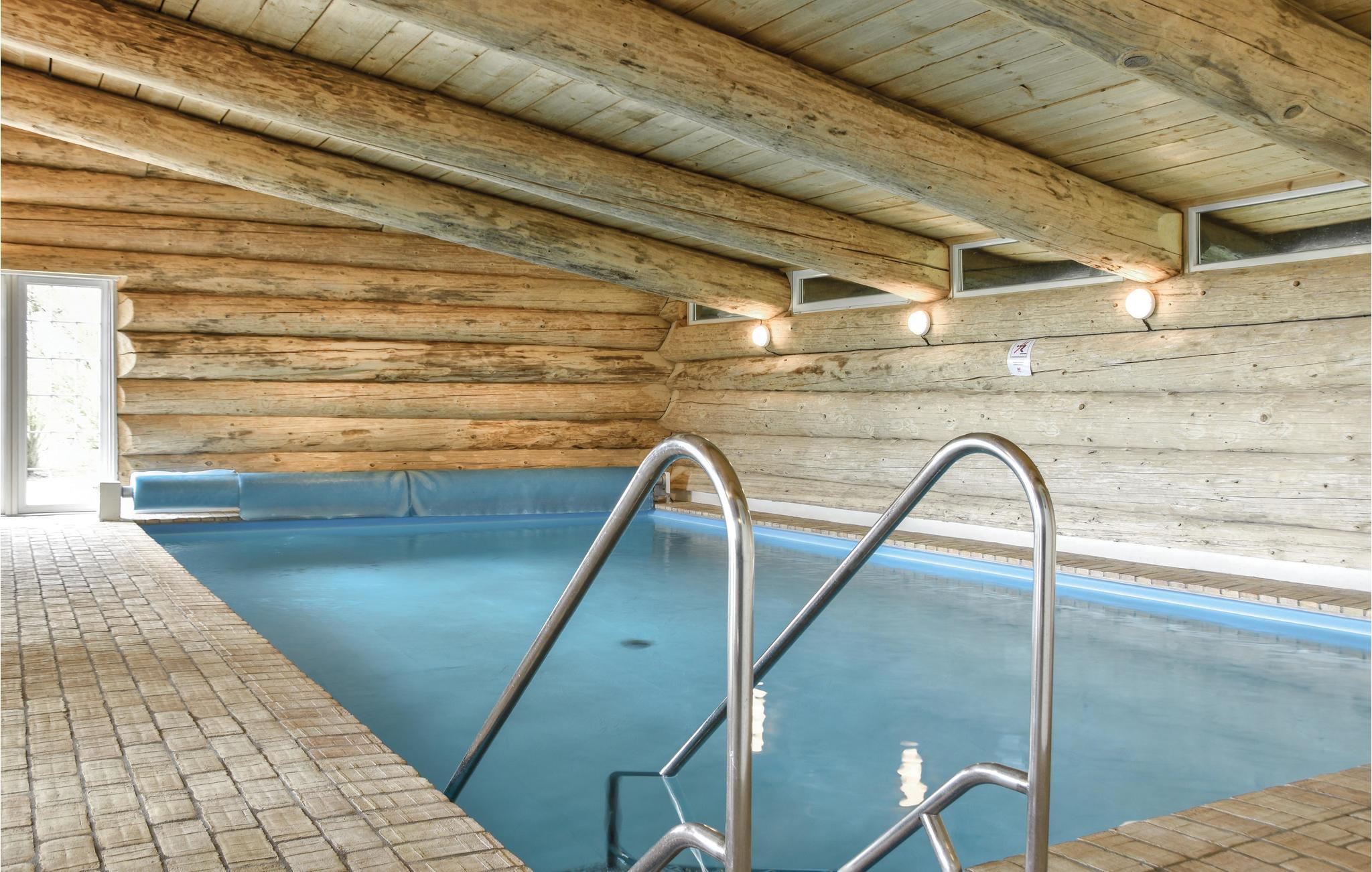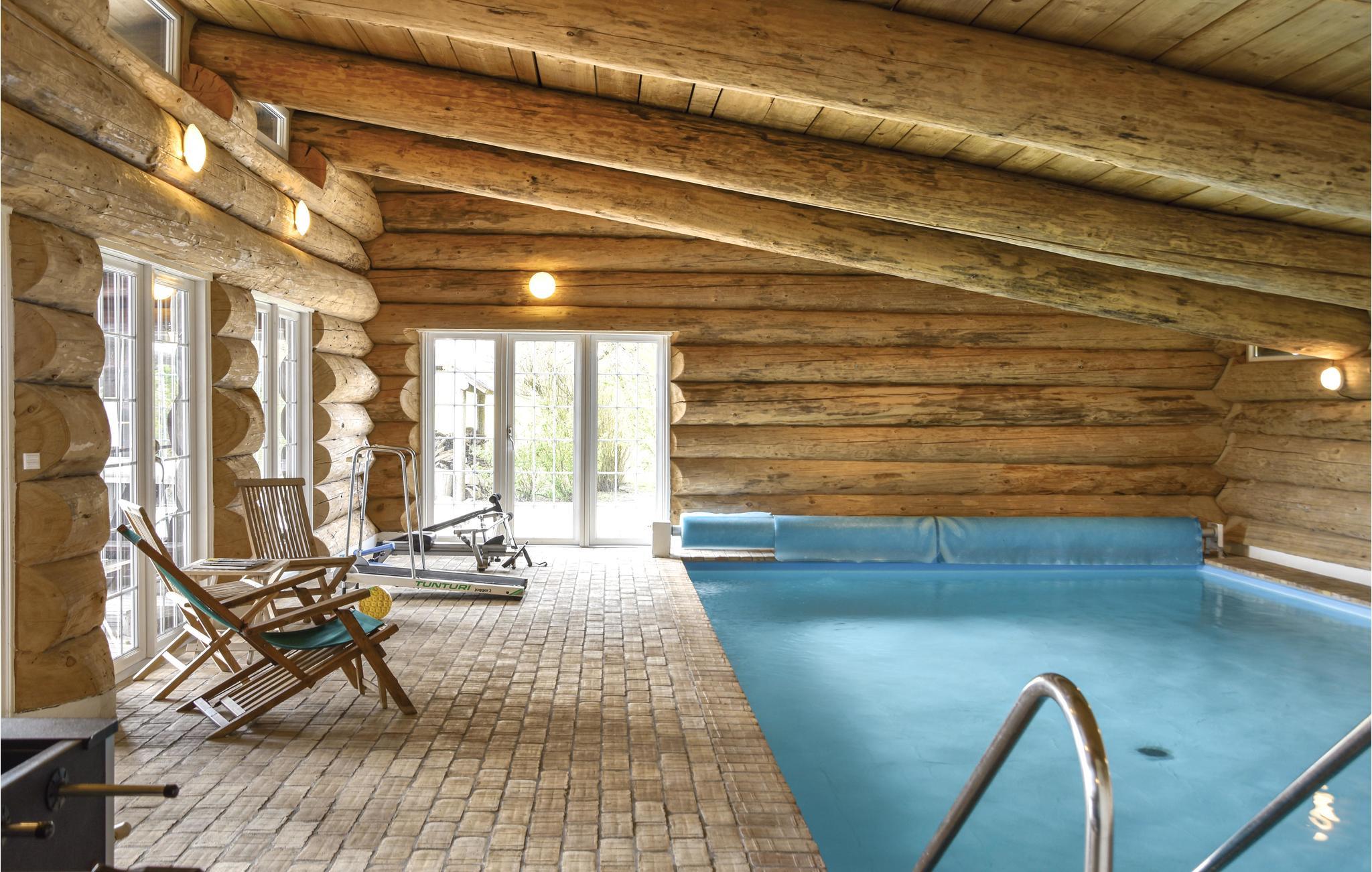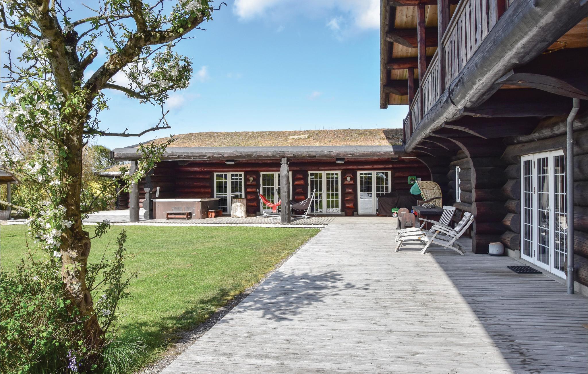 Unikt bjælkehus i Jylland med pool, sauna, spabad og havudsigt, perfekt til en luksuriøs ferieoplevelse.