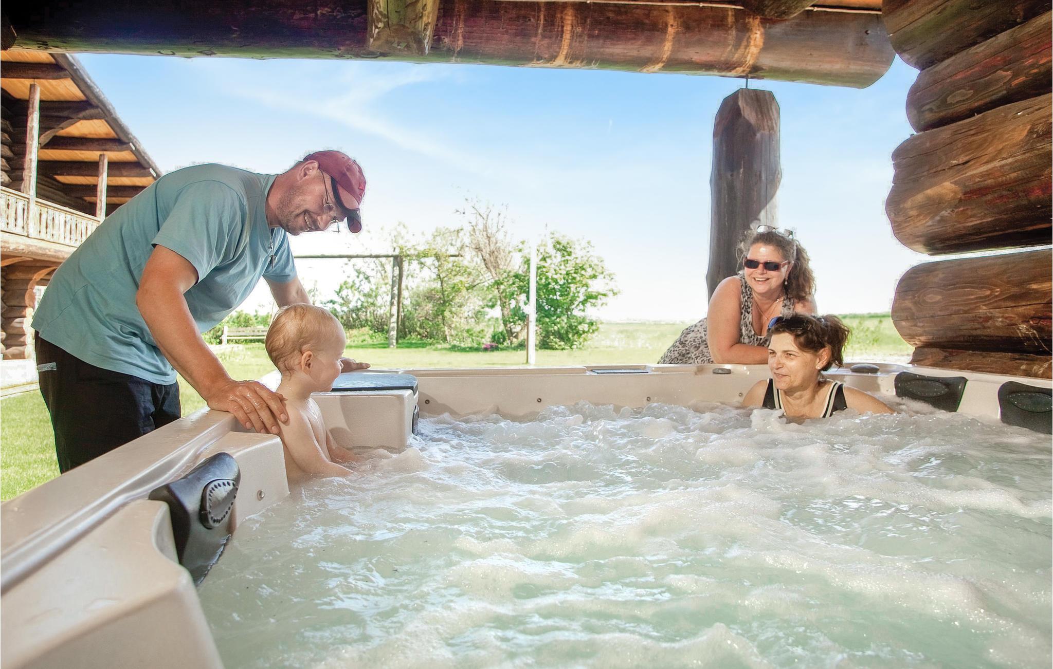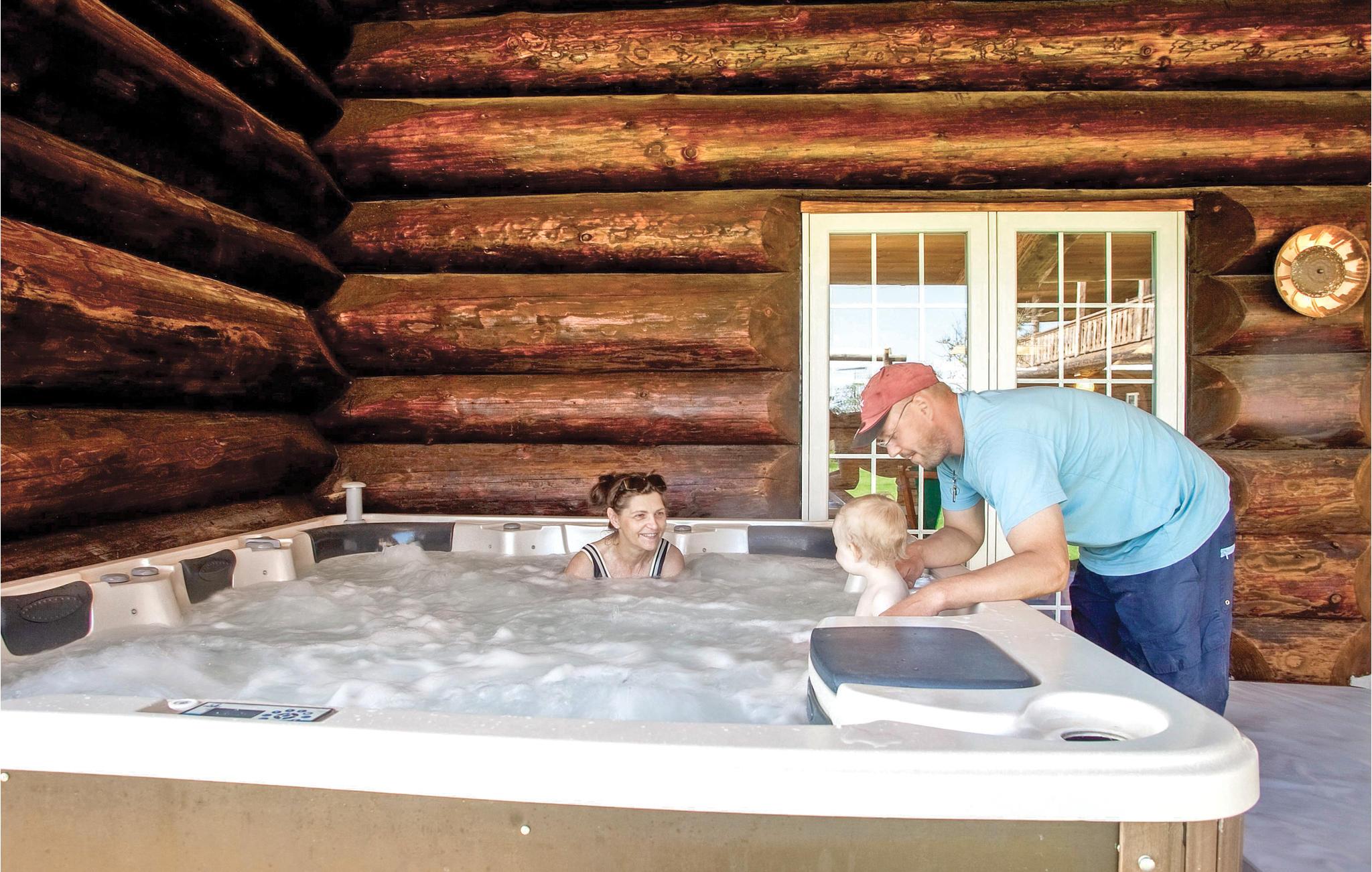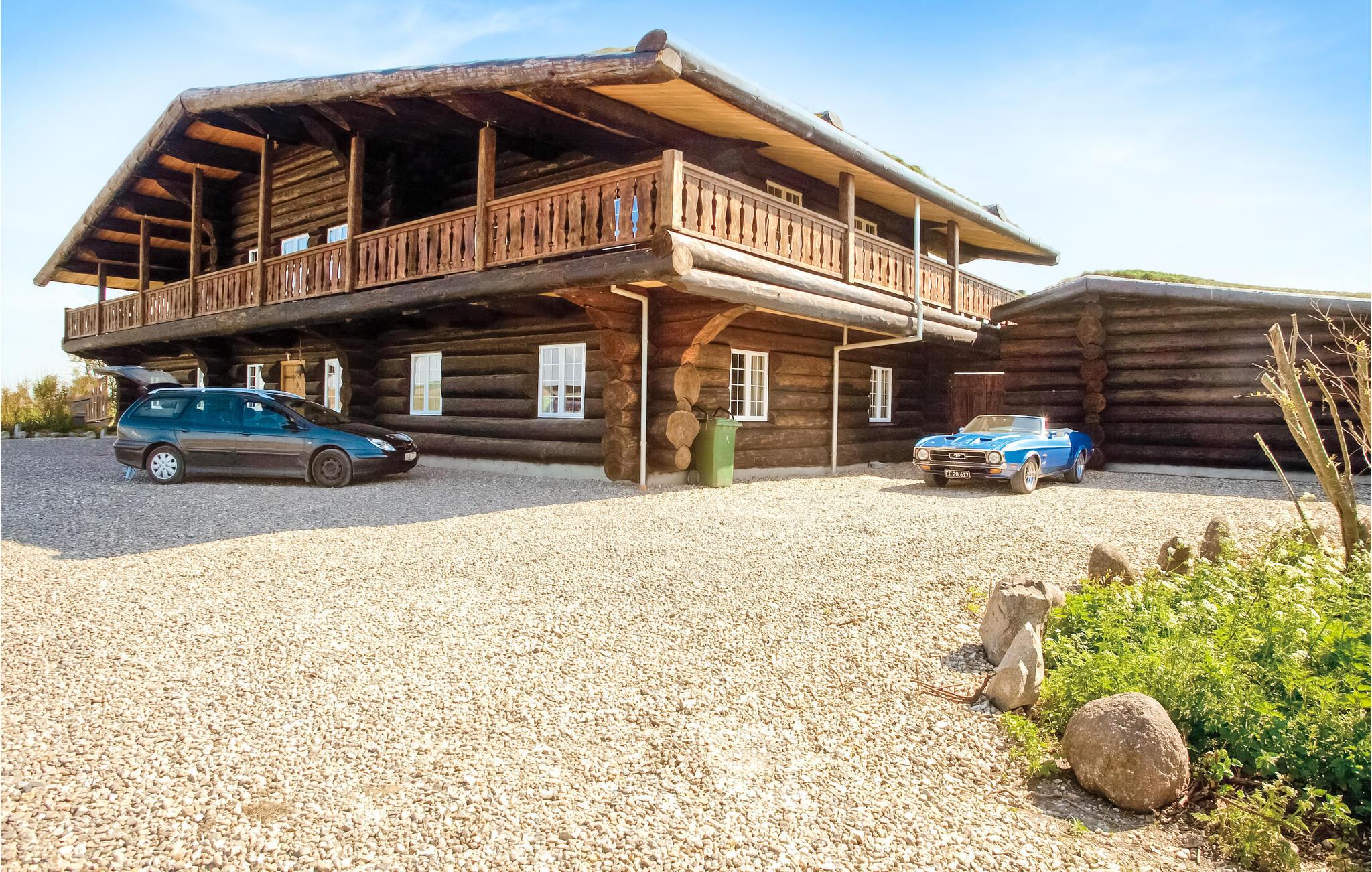 Unikt bjælkehus i Jylland med pool, sauna, spabad og havudsigt, perfekt til en luksuriøs ferieoplevelse.