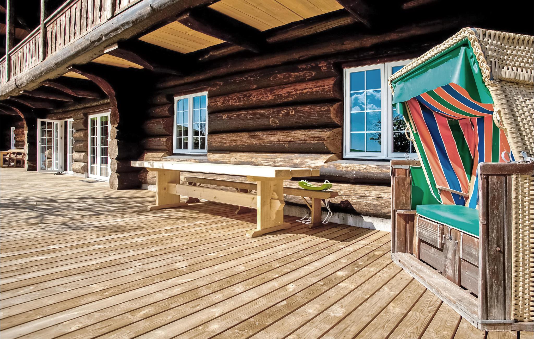 Midt i den barske jyske natur ligger denne helt unikke og særdeles smukke arkitektoniske perle af et bjælkehus. Der er lagt vægt på både detaljer og kvalitet overalt. Det fantastiske feriehus indeholder i stueplan: en stor hall med pejs og poolbord, to soveafdelinger med hver tre soveværelser og to badeværelser samt udgang til den skønne store terrasse. På 1. sal ligger køkkenet i tilknytning til spisestuen og opholdsstuen; her er der masser af plads til madlavning og hyggeligt samvær ved den store pejs. I forlængelse heraf ligger de sidste tre soveværelser samt en hems. Der er udgang til terrassen, som går rundt om huset og som har udsigt til hav og landskab. I sidebygningen ligger den 45 m2 store swimmingpool, hvor der samtidig er adgang til en stor familiesauna samt et 8-personers udendørs spabad. På terrassen er der plads til kreative kokke i udekøkkenet. Her får I et feriehus af så høj kvalitet, at et ferieophold vil være en oplevelse ud over det sædvanlige. Opvarmning max.500 pr. døgn.