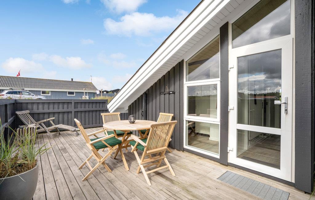 Tæt på Vesterhavet, midt i det skønne klitlandskab, finder I dette idylliske, pænt renoverede feriehus bygget i træ. Feriehuset er hyggeligt og smagfuldt indrettet med sans for detaljen og indbyder til hygge og afslapning. Det indeholder et godt køkken med stort køle-fryseskab, tre soveværelser samt en dejlig stue med kvalitetsmøbler, stort tv og brændeovn m.m. Udendørs er der anlagt terrasser mod syd, øst og vest, så der er altid en mulighed for at finde læ og nyde solen. På to af terrasserne er der havebord med stole og på den sidste terrasse findes liggestole. Huset ligger for enden af en lukket vej med stisystem til en købmand. Selve området indbyder til udendørs aktiviteter som drageflyvning, hygge på stranden, gå-/løbe- eller cykelture m.m. I kort afstand fra huset ligger et trinbræt, hvor VLTJ (den lokale bane) kan transportere jer til Thyborøn og Lemvig. Hjemme igen, godt træt efter en dag i den friske havluft, kan dagen afsluttes med at tænde op i brændeovnen og lade roen sænke sig til lyden af den varme knitrende ild, mens tankerne får frit løb!