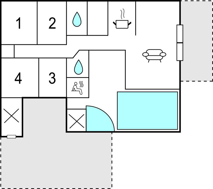 Badeværelse 3m2 (nr. 1) - WC. Varmt og koldt vand. Bruser