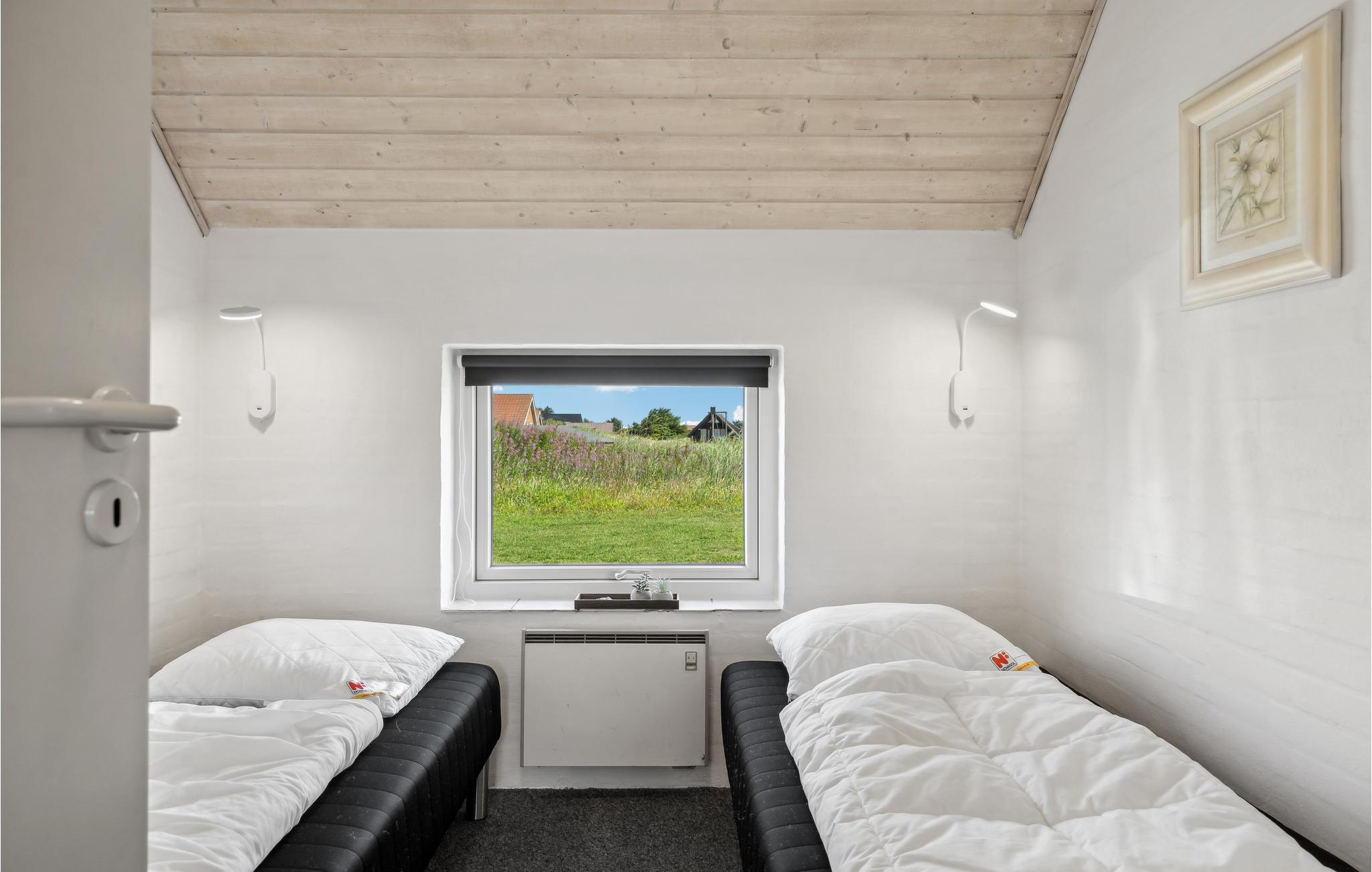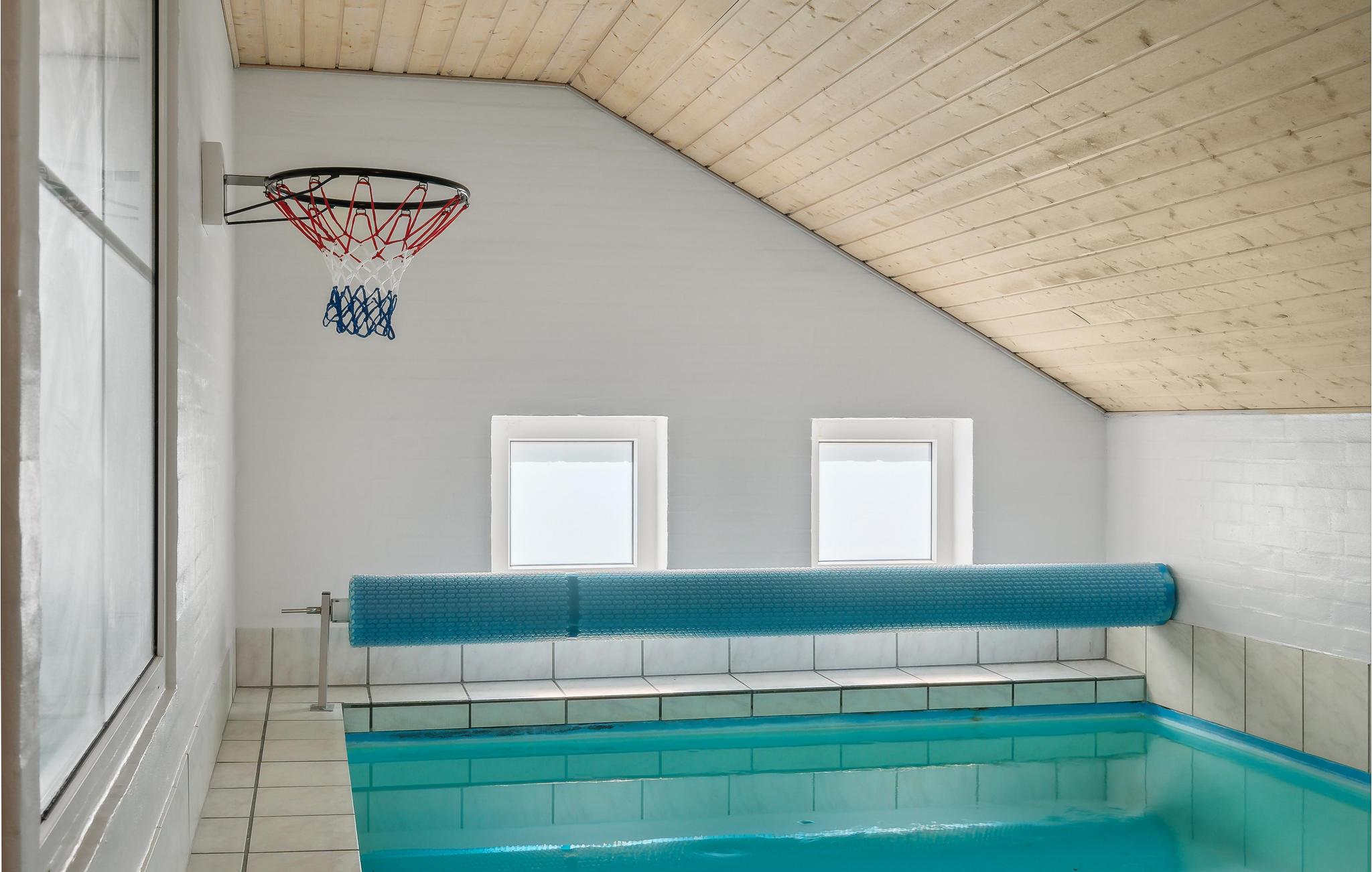 Vejlby Klit ligger ved den brede vesterhavsstrand omgivet af store naturområder bag klitrækken. Ganske få hundrede meter fra stranden ligger dette nydelige sommerhus, som udover det dejlige poolområde med spa, sauna og det ene af husets to badeværelser, har en god inddeling med køkken/alrum og stue. Slap af i sofaen foran fladskærms-tv'et eller med en god bog, mens ilden knitrer i brændeovnen. Soveværelserne ligger i den modsatte ende af huset, alle med adgang via en fordelergang, hvor der også findes et badeværelse samt entréen. Huset har terrasse mod øst med morgensol samt en lukket terrasse mod syd, hvor der vil være mulighed for solbadning og grillning. Det særegne, smukke men også barske vestkystlandskab betager på enhver årstid. Om sommeren åbner de brede sandstrande sig for herlige badeaktiviteter, om efteråret og vinteren viser havet tænder, og alligevel er vandreture langs havet en pragtfuld oplevelse. I Thyborøn ligger 'Sneglehuset', et hus dekoreret med millioner af skaller, skabt af en enkelt mand gennem et langt liv. Besøg også Jyllands Akvariet med bl.a. fisk og krabber fra Limfjorden og Nordsøen.