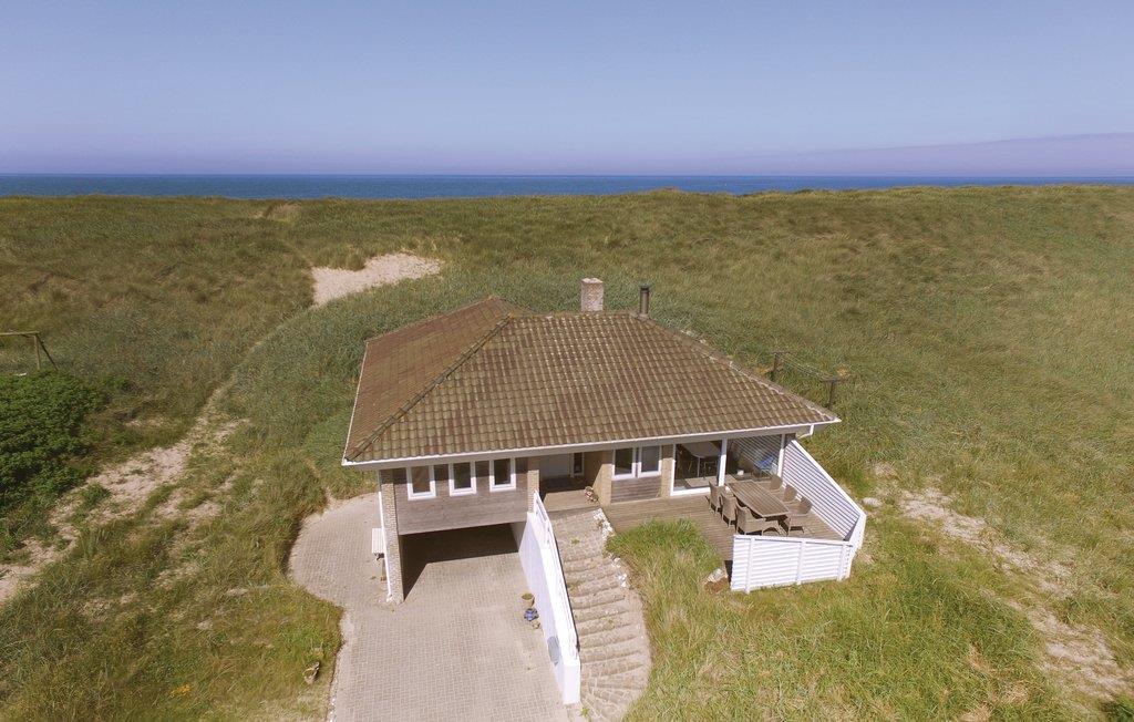 Dette skønne sommerhus ligger i 1. klitrække, og har en fantastisk placering direkte ud til Vesterhavet. Her er højt til loftet og de store vinduer sørger for smukt lysindfald, og I kan føle jer helt tæt på naturen, selv når I er inde. Der er lagt vægt på naturlige materialer, solidt håndværk og smukke linjer. Efter morgenbadning i Vesterhavet, kan i spise morgenmad med solopgangen på husets terrasse mod øst med udsigt ud over dalen og helt til Engbjerg Kirke på højderyggen 5 km derfra. Når I vender hjem efter en aktiv dag ved Vesterhavet, kan I hygge jer foran pejsen, eller slappe af i spabadet og komme helt ned i gear. De lune sommeraftener indbyder til festlige grillmiddage på terrassen mod vest, med solnedgangens farvespil som baggrund. Huset er indlejret i klitterne, og er omgivet af sand og marehalm. Går I op til toppen af klitterne, vil I få en fantastisk udsigt og det ideelle sted at opleve solnedgangen over Vesterhavet.
