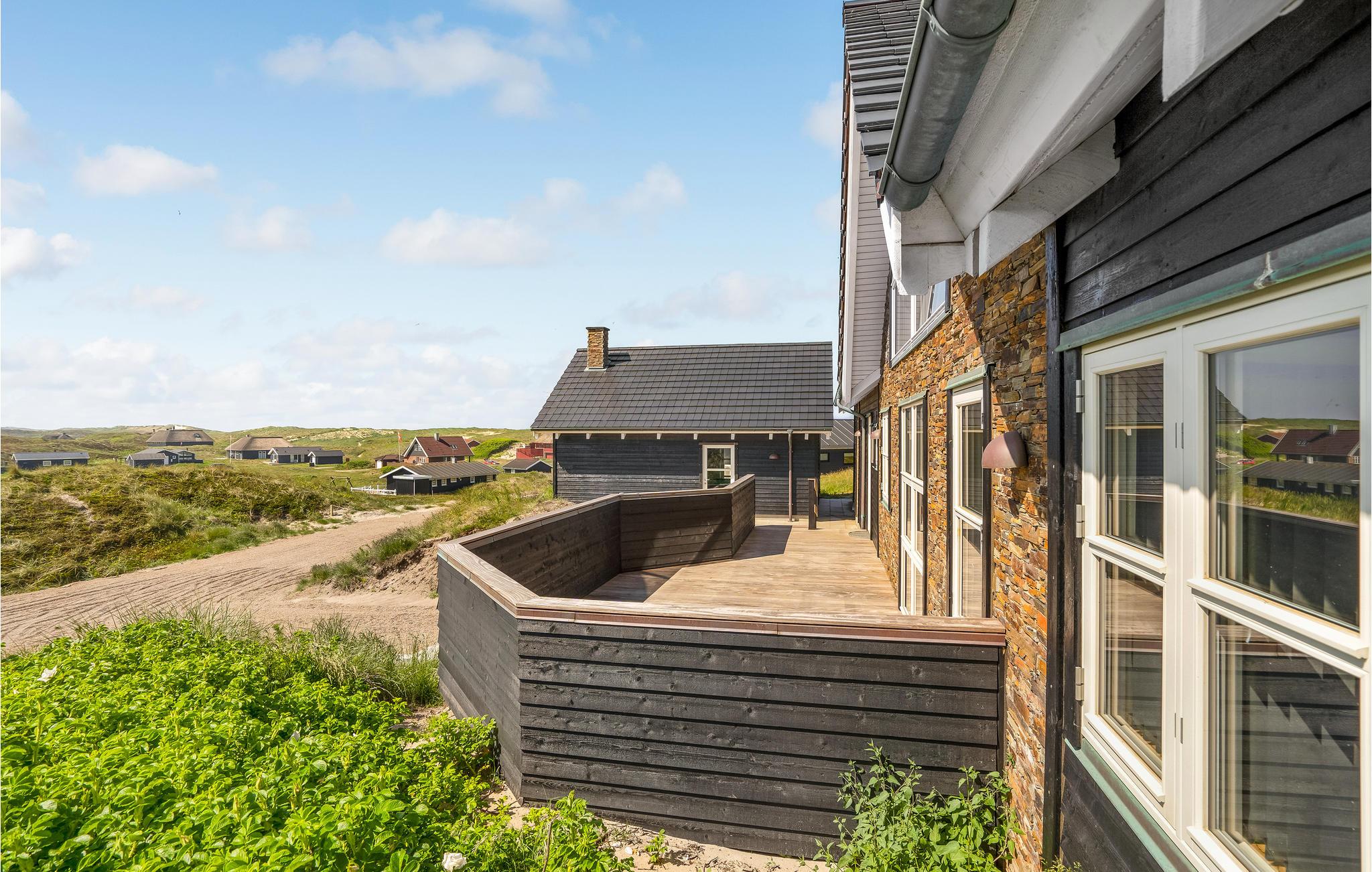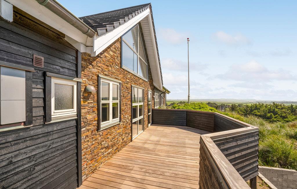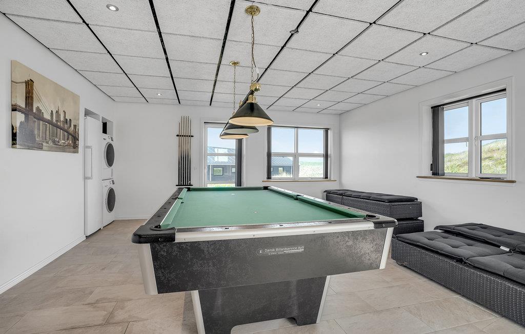 Dette feriehus har skøn udsigt over klitterne, hvor I kan tilbringe en uforglemmelig ferie sammen flere familier eller en større vennegruppe. Der er plads til alle ved det store spisebord, der er billard, bordfodbold og airhockey, og selvfølgelig lover poolen og boblebadet timevis af underholdning og afslapning for både store og små.