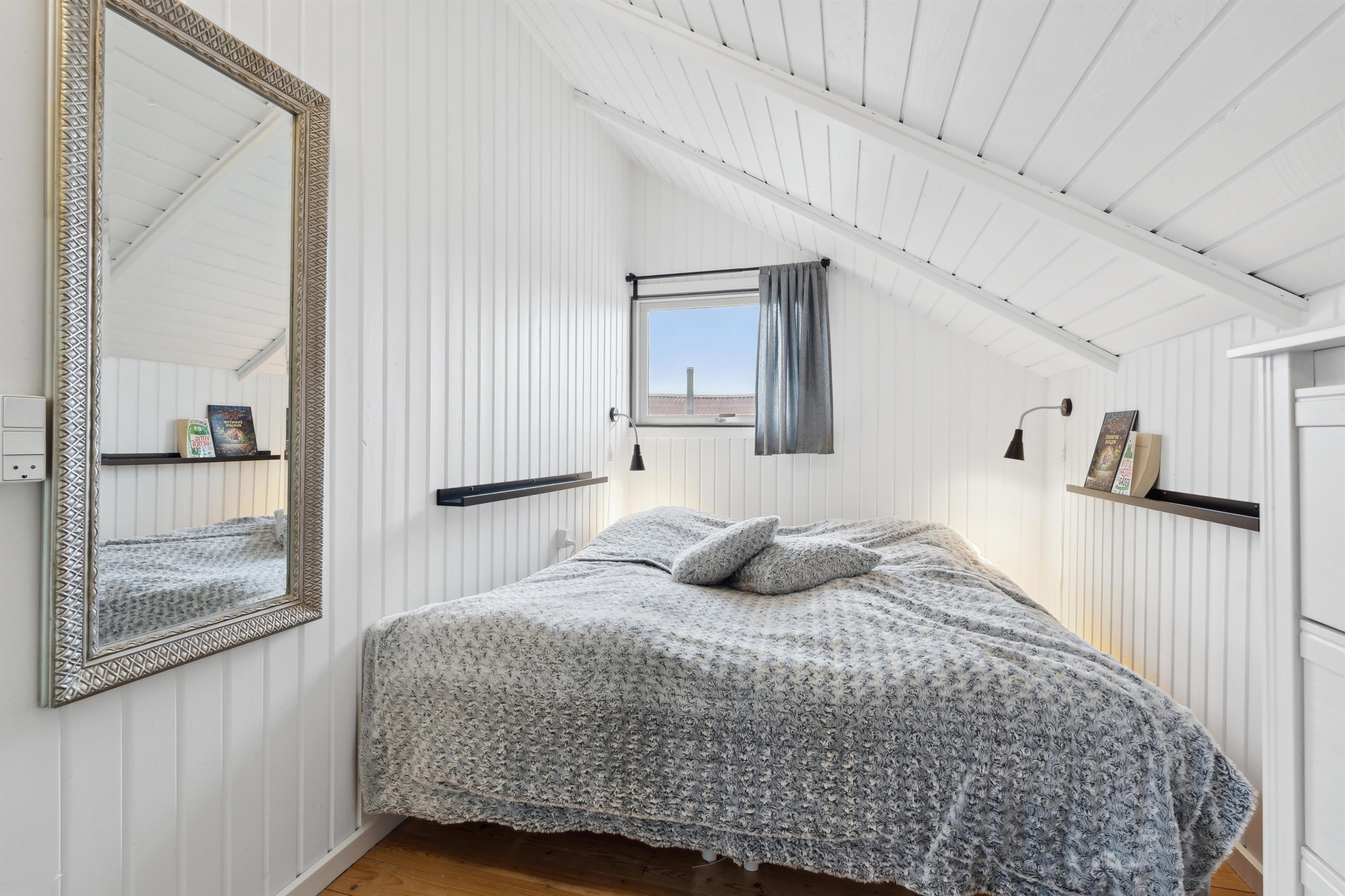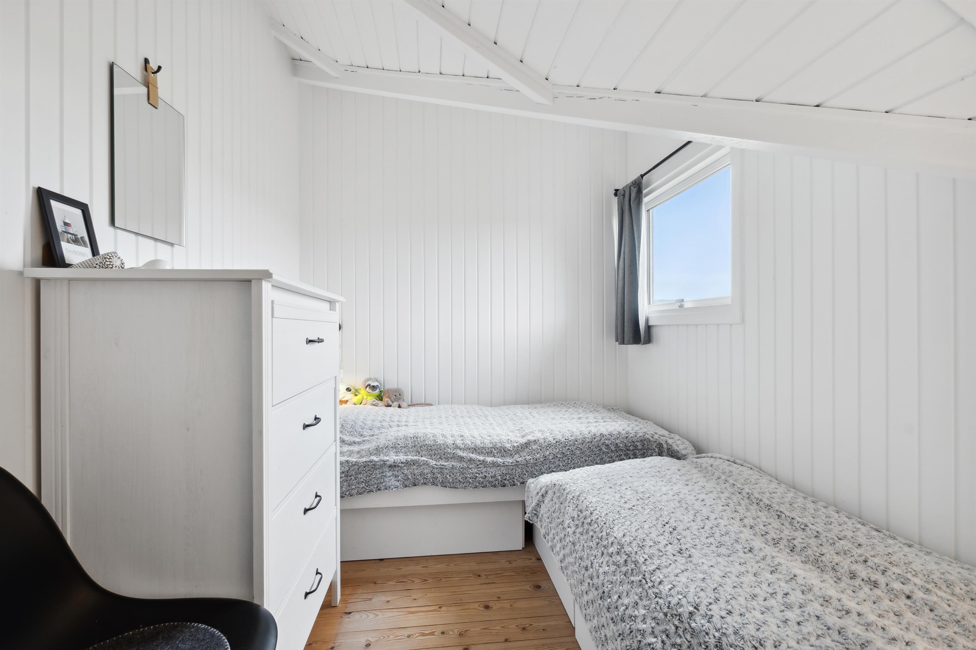 Feriehuset rummer tre hyggelige soveværelser – et værelse med dobbeltseng, et værelse med enkeltseng og ét med 2 enkeltsenge – og er dermed velegnet til både familier, par og vennepar. Badeværelset er lyst og praktisk indrettet med bruser, toilet og håndvask samt mini vaskemaskine og gulvvarme. Helt perfekt til både korte og længere ophold. Det er tilladt at medbringe op til 1 husdyr, så hele familien kan være med. Har man el-bil eller en Plug-In hybrid, så er der opsat ladeboks ved huset.