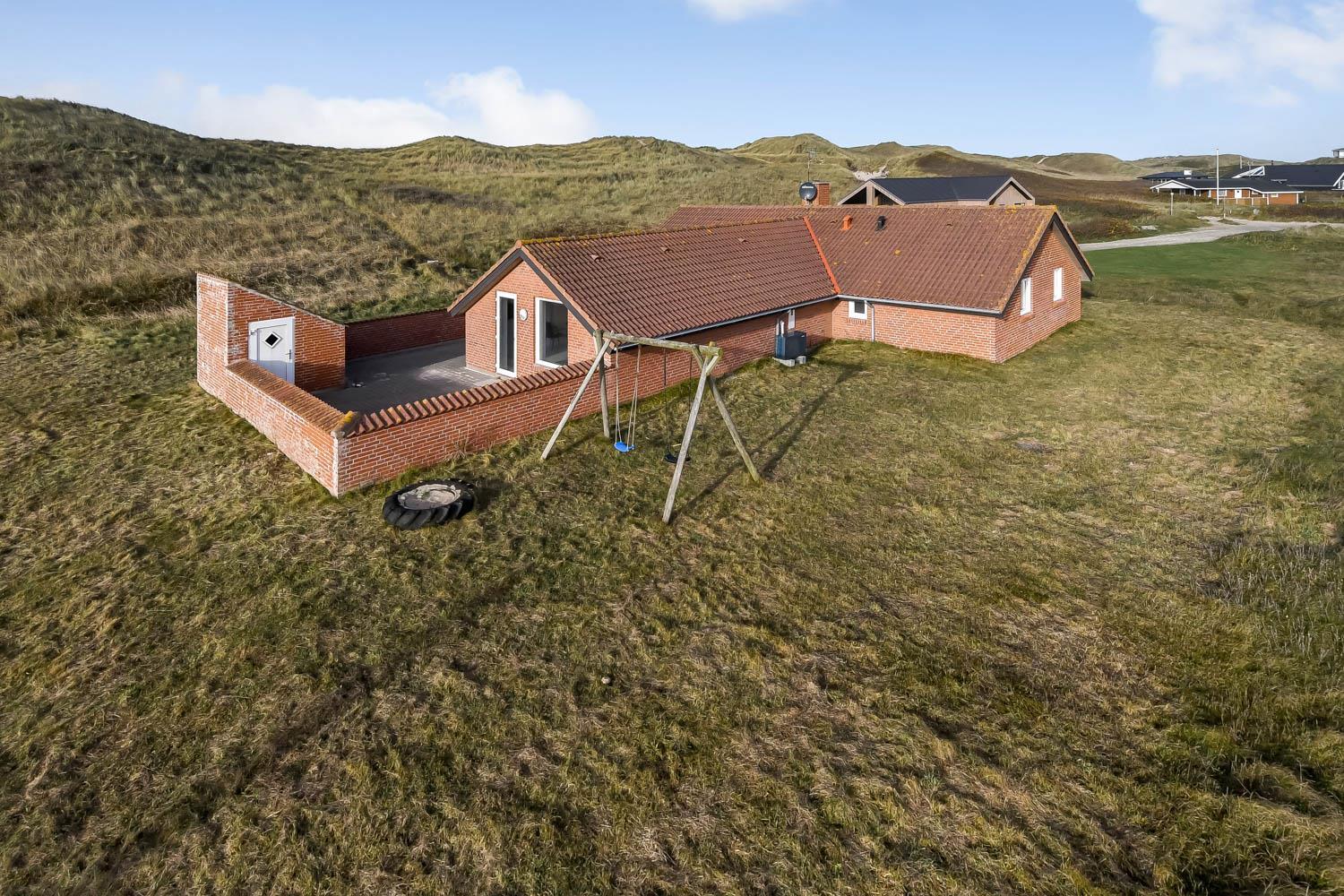 Fra huset er der udgang til en dejlig stor indhegnet terrasse som selvfølgelig er udstyret med havemøbler. Her kan man nyde solen eller slappe af foran grillen og først på aftenen kan man nyde at se solen gå ned over Vesterhavet. Fra huset og grunden har man dirkte adgang til klitterne og den flotte hvide sandstrand som jo bare ligger få meter fra huset. Til børnene er der sandkasse og gynger til rådighed. Vil man ud og opleve noget i området er der ikke langt til Kystcentret i Thyborøn og turen kan kombineres med et besøgt i Jyllands akvariet samt Sneglehuset, som er Danmarks eneste hus beklædt med muslingeskaller. Indenfor rimelig køreafstand finder i også Jesperhus Blomsterpark, Hjerl Hede, Mønsted Kalkgruber samt Legoland.