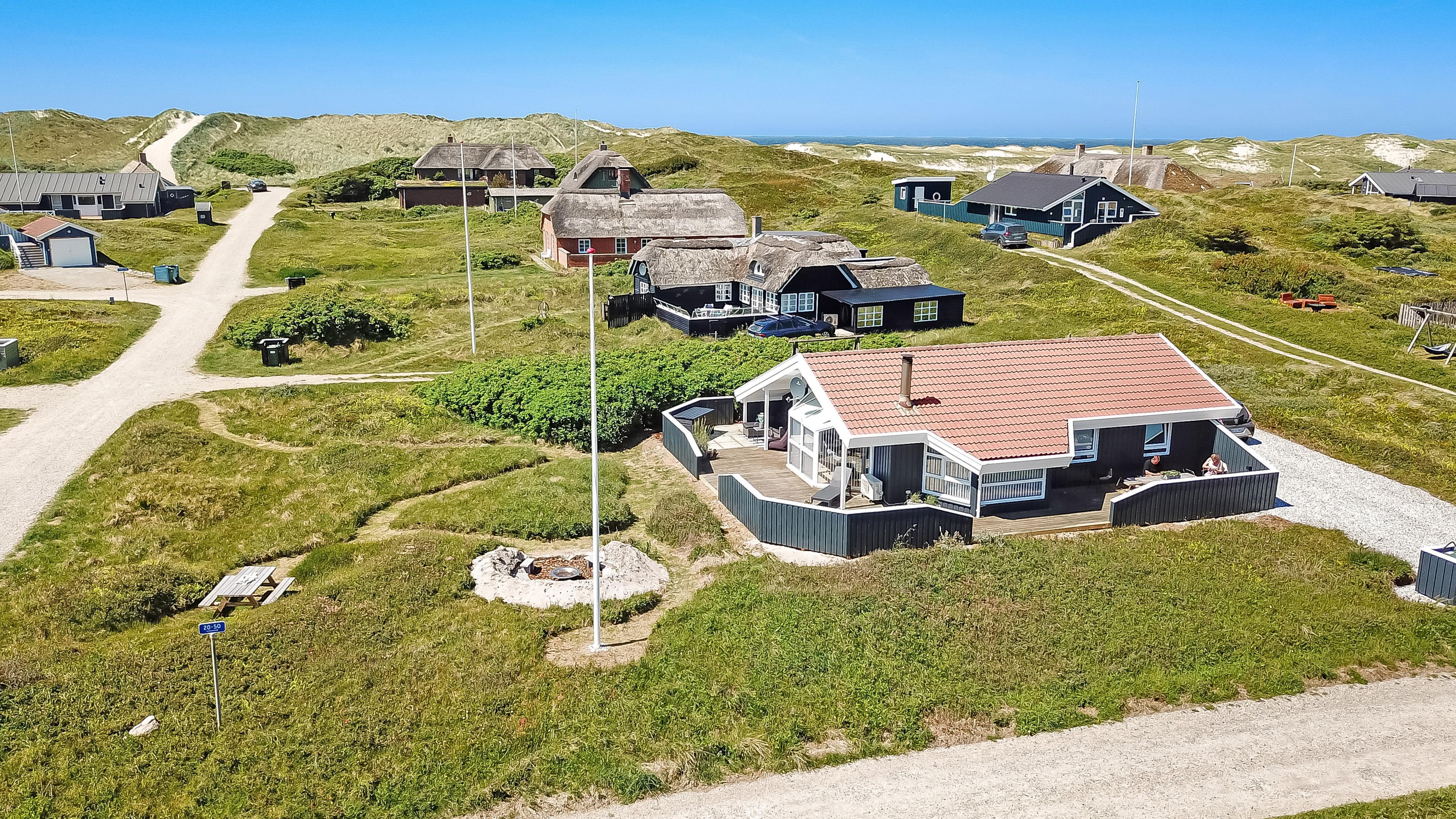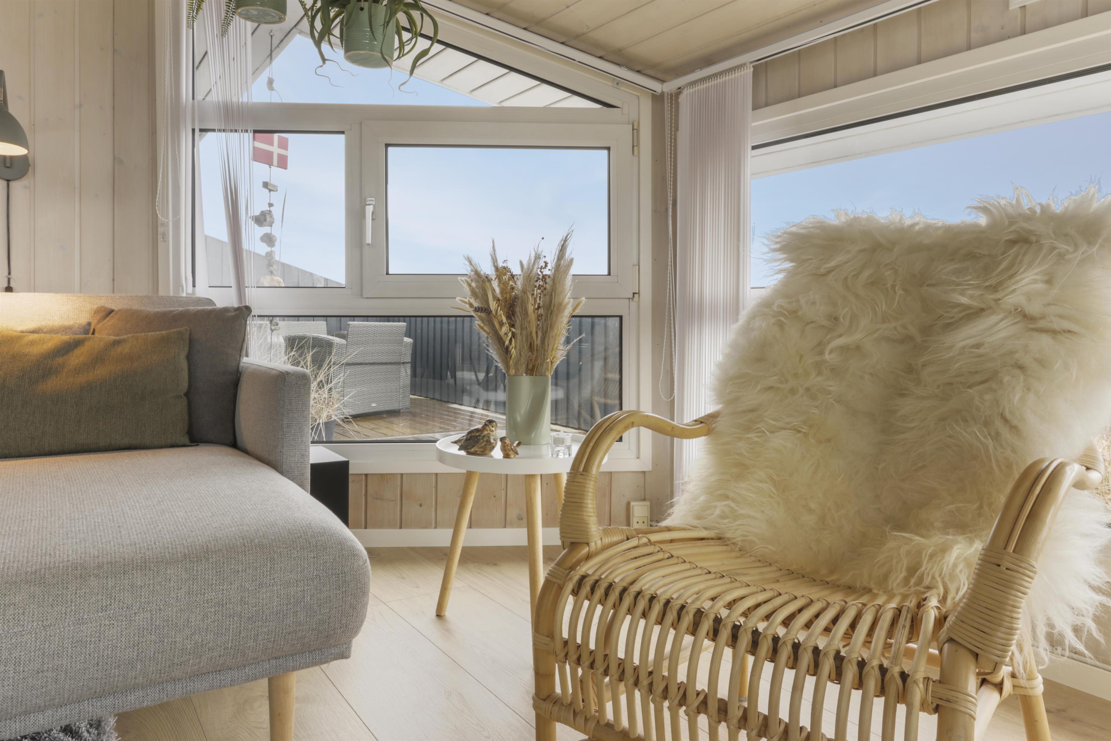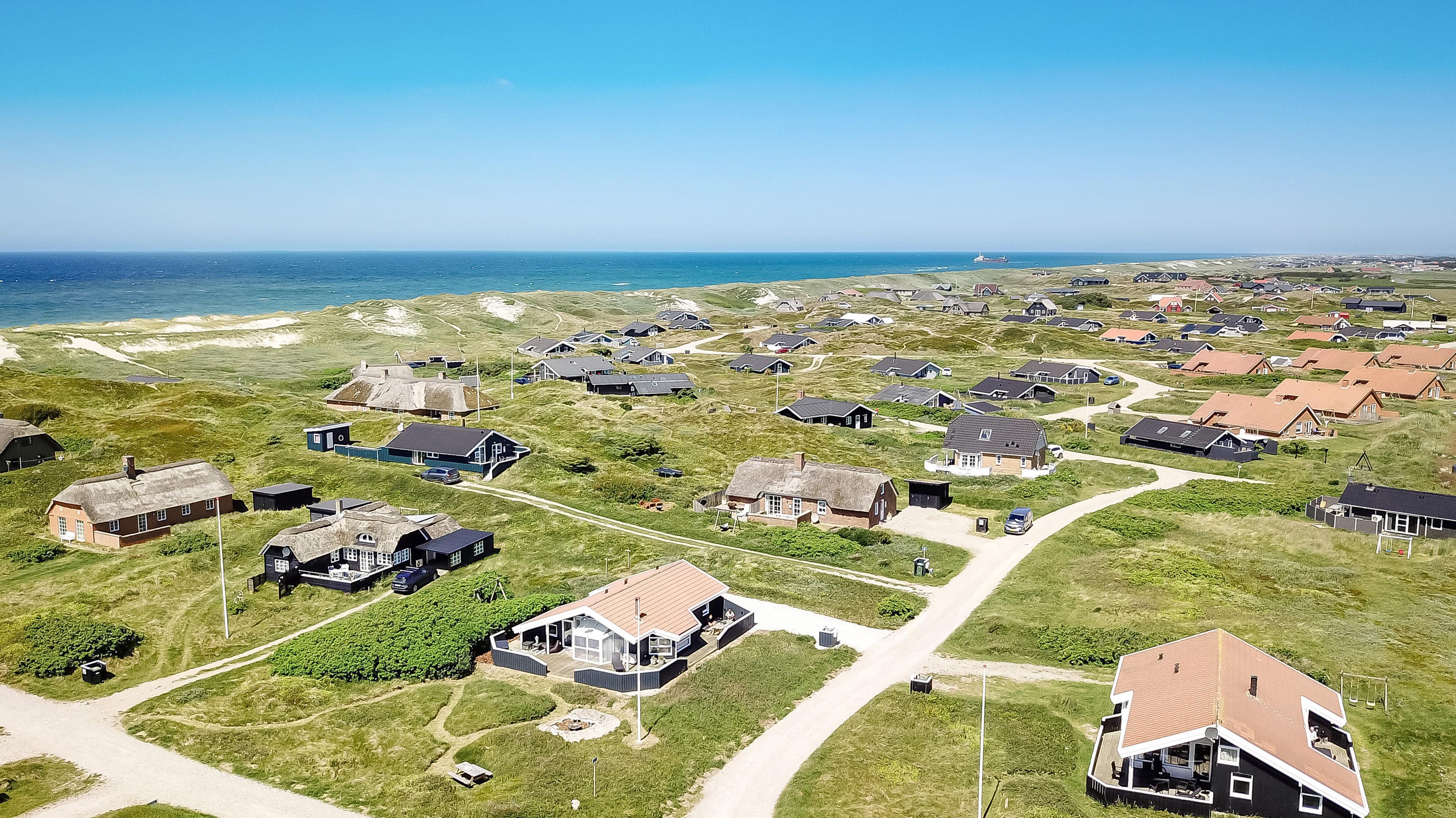 Huset er omgivet af en 76 kvm. stor terasse - og her kan man altid finde læ til at nyde solen. Her er både grill, havemøbler og 2 solsenge, som frit kan benyttes. Stranden og Vesterhavet ligger en meget kort gåtur væk og her er der utallige muligheder og meget plads. Vi anbefaler solbadning, badning, drageflyvning eller hvad med at prøve fiskestangen efter fladfisk? En af de mest populære aktiviteter er blot at vandre og mange gæster tager gåturen helt til Bovbjerg Fyr 7 km sydpå ad kysten til Bovbjerg Klint. En god ide kunne være en kombination hvor nogle tager bilen og andre går, så kan alle være med og naturen er storslået på disse kanter.