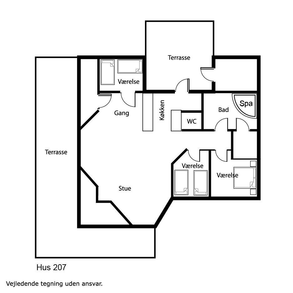 Der er 3 soveværelser og deraf er 2 værelser med dobbeltseng og 1 værelse med 2 enkeltsenge.