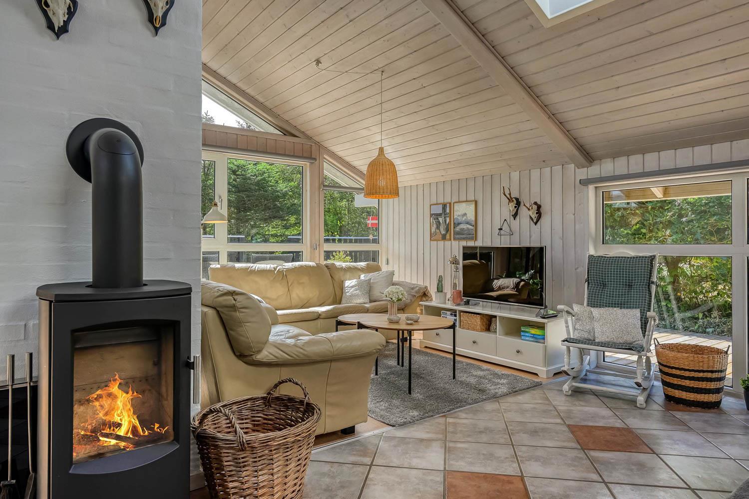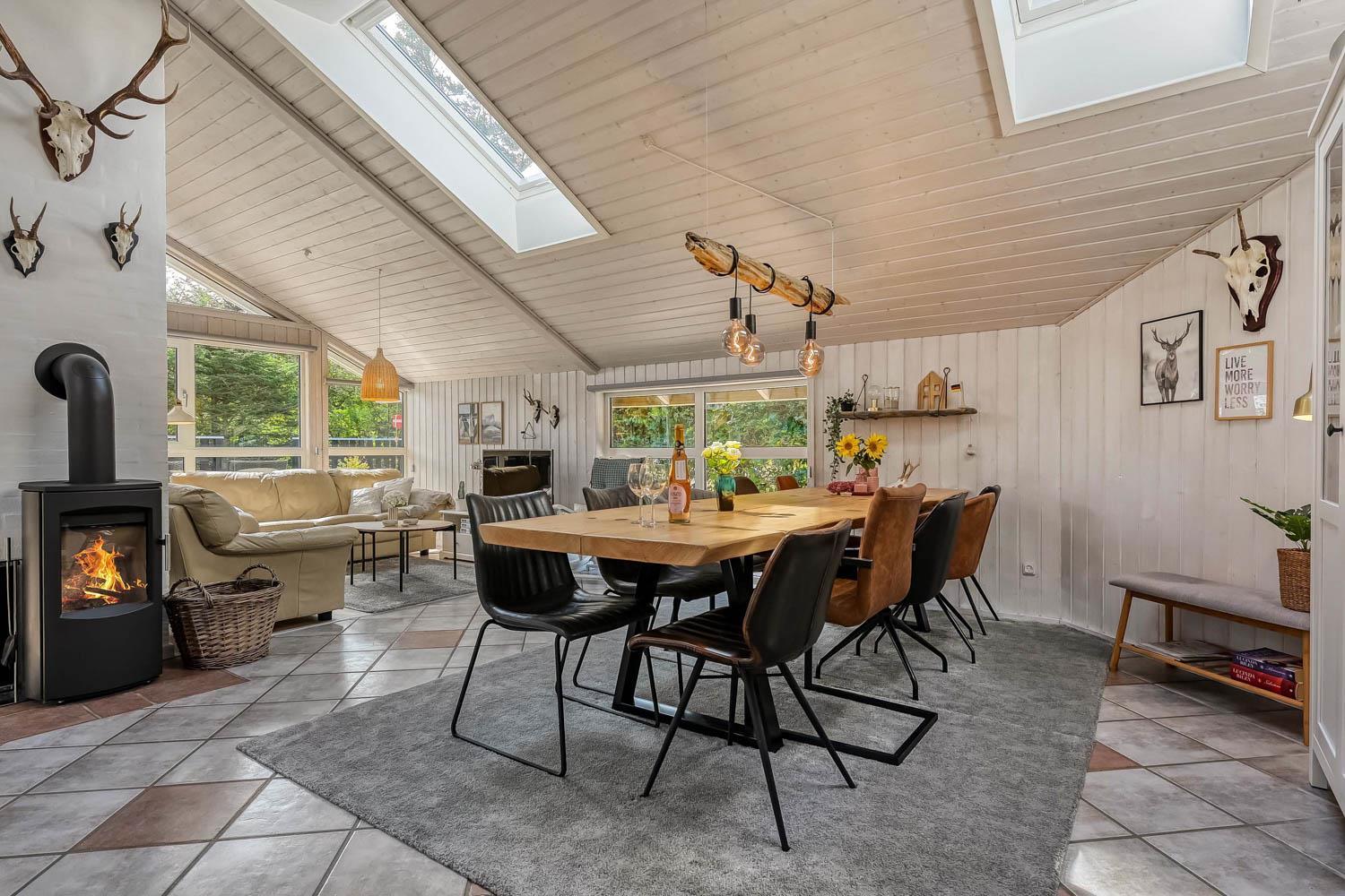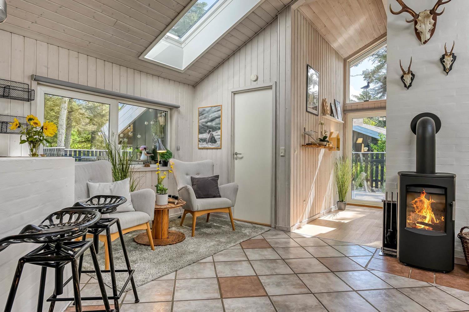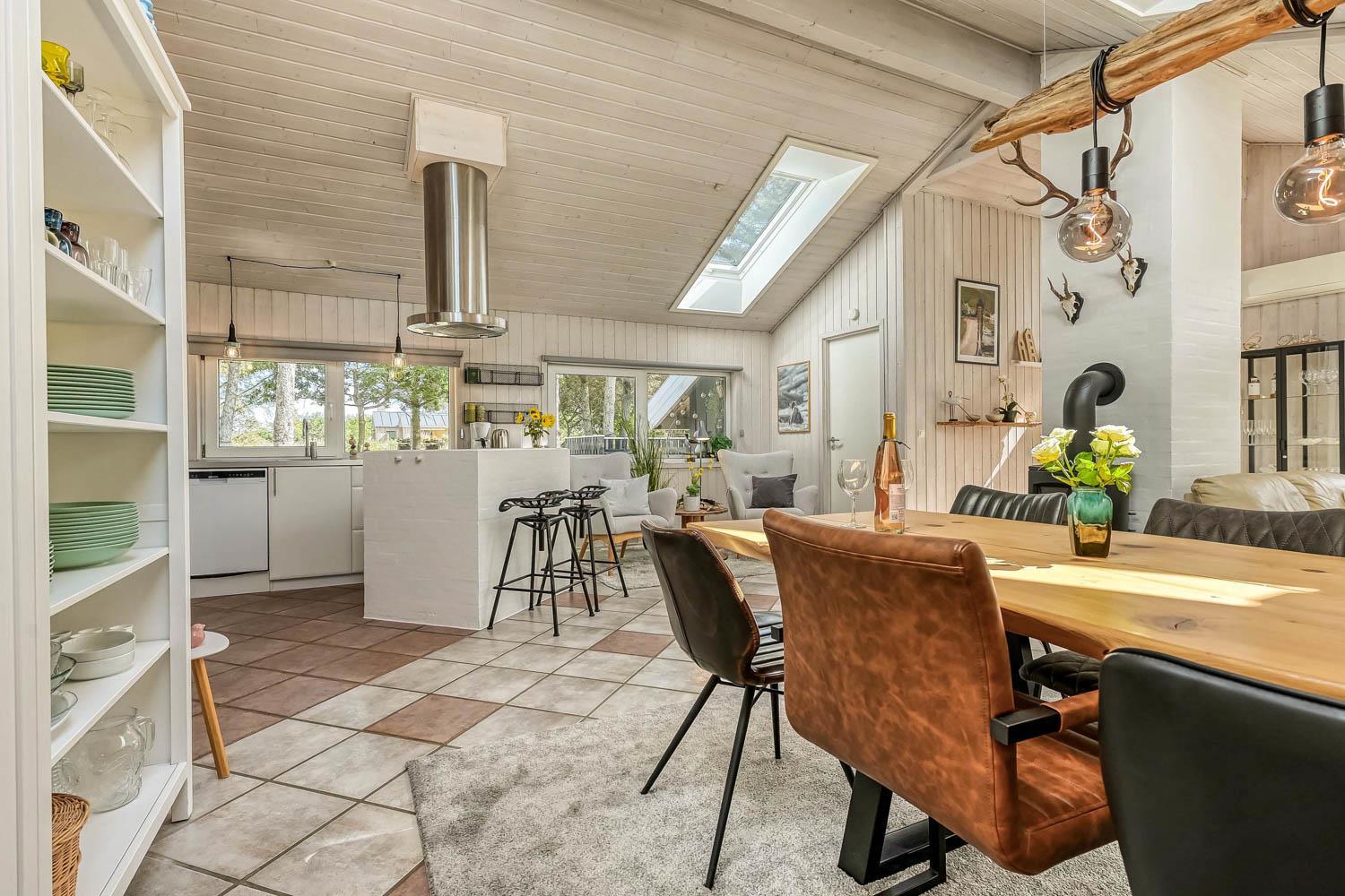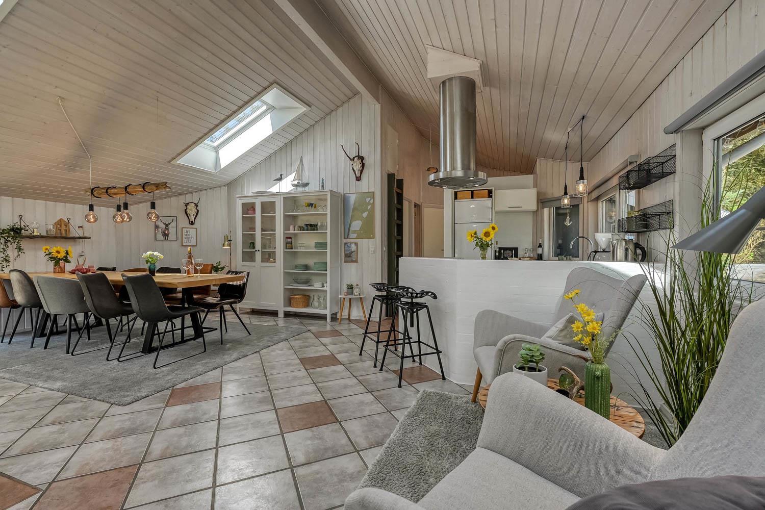 Træd ind i dette skønne og rummelige feriehus på 100 m2, hvor komfort og hygge mødes. Der er tre godt indrettede soveværelser (1DS, 1DS, 2S). Herudover er der også en hyggelig hems med plads til yderligere tre personer. En rigtig lille hule, som børnene vil elske. Der er rigeligt med plads til hele familien eller gruppen af venner – der er plads til 8 personer. Den åbne opholdsstue, flot indrettet i lyse og venlige farver, med det lækreste lys fra ovenlysvinduerne inviterer til afslapning i det hyggelige sofahjørne foran den knitrende brændeovn. I kan nyde jeres yndlingsfilm på TV med danske og tyske kanaler. Den opsatte varmepumpe sørger for fantastisk indeklima året rundt og bidrager til en energisparende opvarmning af huset. Køkkenhjørnet er udstyret med alt, hvad I behøver for at tilberede lækre måltider. Samtalekøkkenet har alt i service, køkkengrej, opvaskemaskine, keramiske kogeplader, indbygningsovn, køle-/fryseskab og emhætte. Spisearrangementet er praktisk placeret lige ved køkkenet og giver jer mulighed for at dele uforglemmelige øjeblikke sammen.