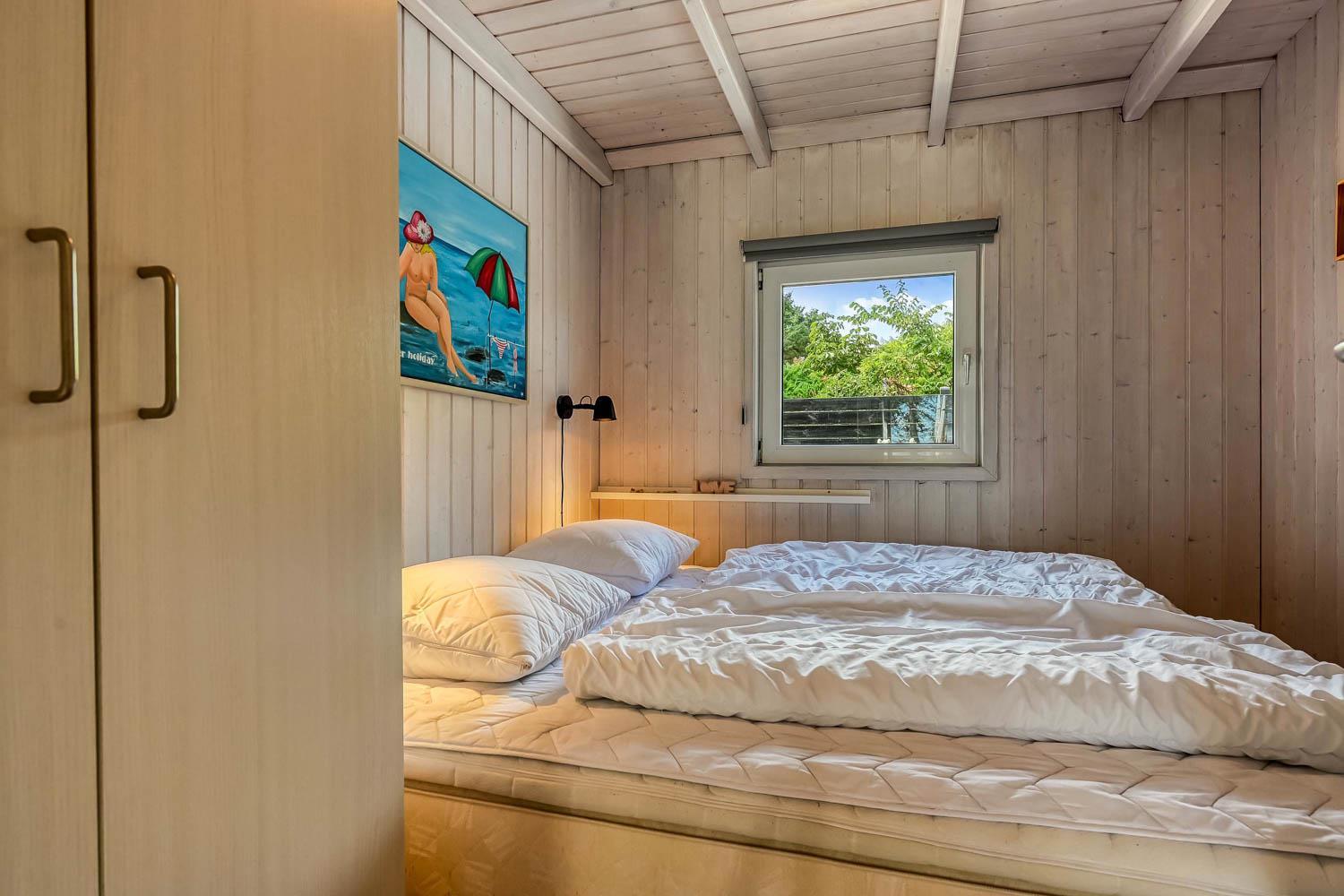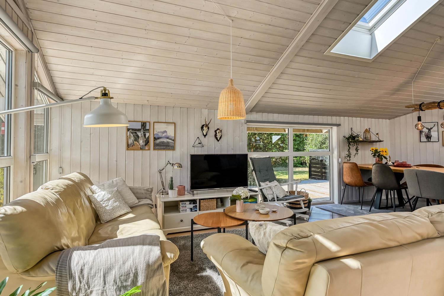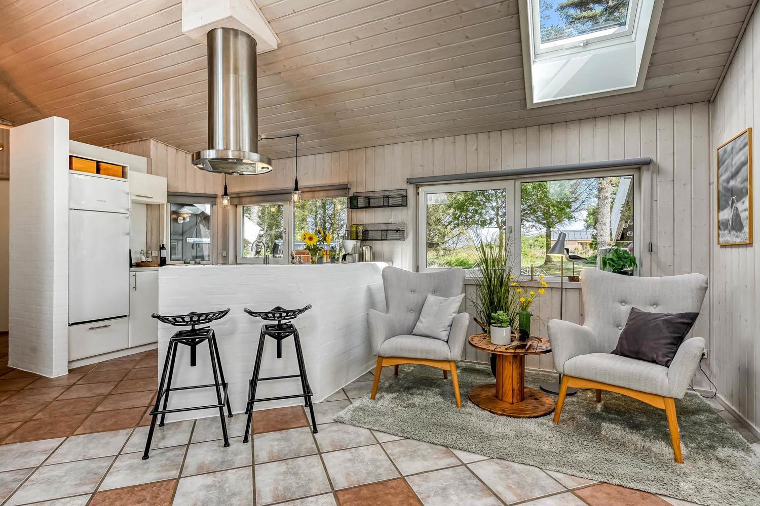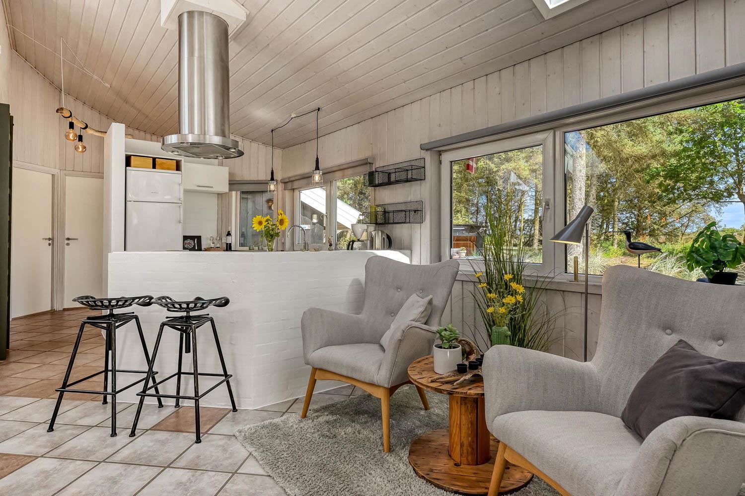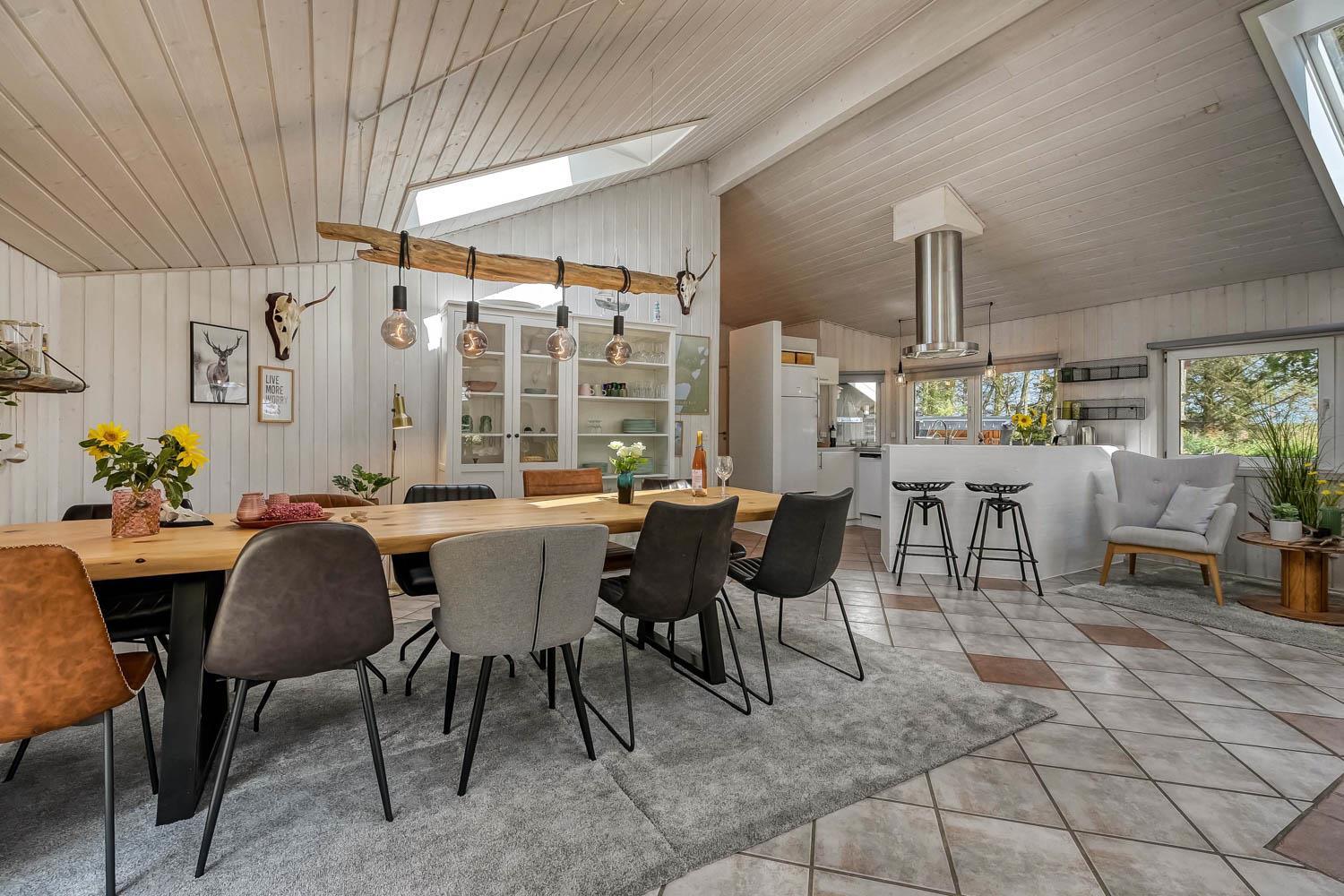 Træd ind i dette skønne og rummelige feriehus på 100 m2, hvor komfort og hygge mødes. Der er tre godt indrettede soveværelser (1DS, 1DS, 2S). Herudover er der også en hyggelig hems med plads til yderligere tre personer. En rigtig lille hule, som børnene vil elske. Der er rigeligt med plads til hele familien eller gruppen af venner – der er plads til 8 personer. Den åbne opholdsstue, flot indrettet i lyse og venlige farver, med det lækreste lys fra ovenlysvinduerne inviterer til afslapning i det hyggelige sofahjørne foran den knitrende brændeovn. I kan nyde jeres yndlingsfilm på TV med danske og tyske kanaler. Den opsatte varmepumpe sørger for fantastisk indeklima året rundt og bidrager til en energisparende opvarmning af huset. Køkkenhjørnet er udstyret med alt, hvad I behøver for at tilberede lækre måltider. Samtalekøkkenet har alt i service, køkkengrej, opvaskemaskine, keramiske kogeplader, indbygningsovn, køle-/fryseskab og emhætte. Spisearrangementet er praktisk placeret lige ved køkkenet og giver jer mulighed for at dele uforglemmelige øjeblikke sammen.