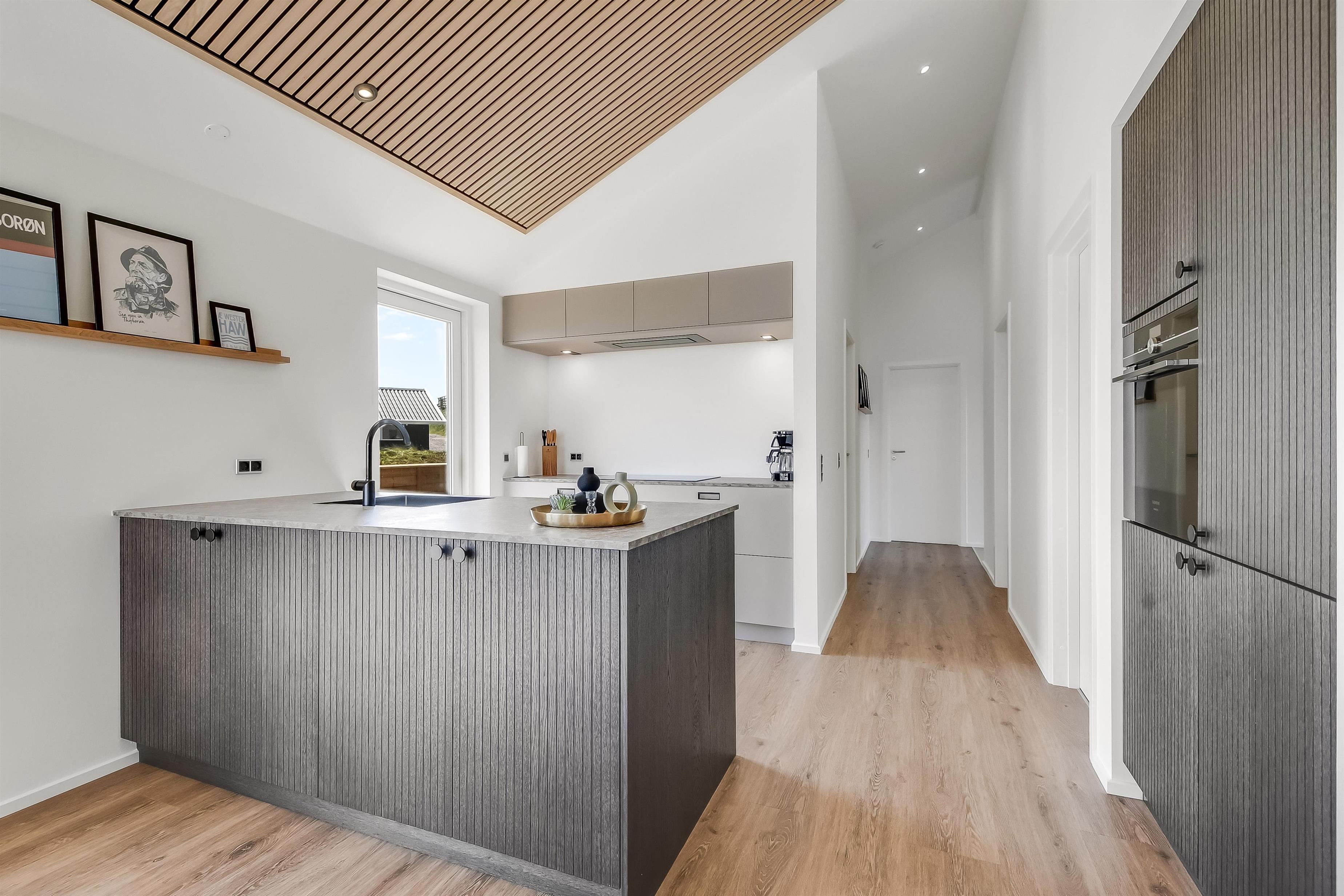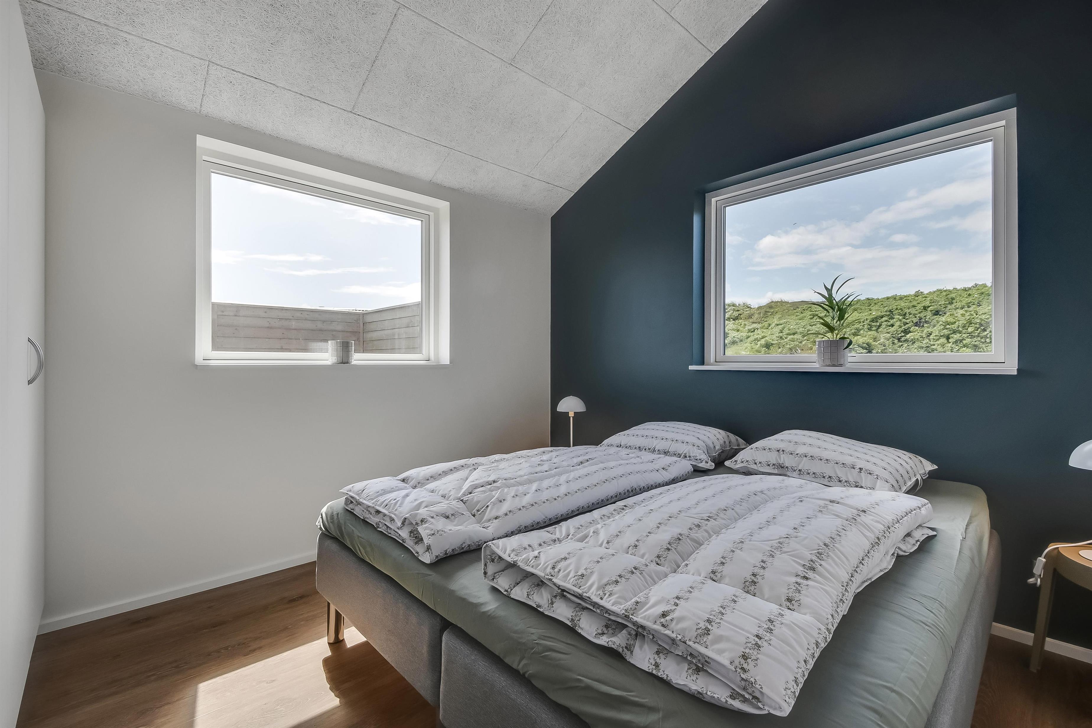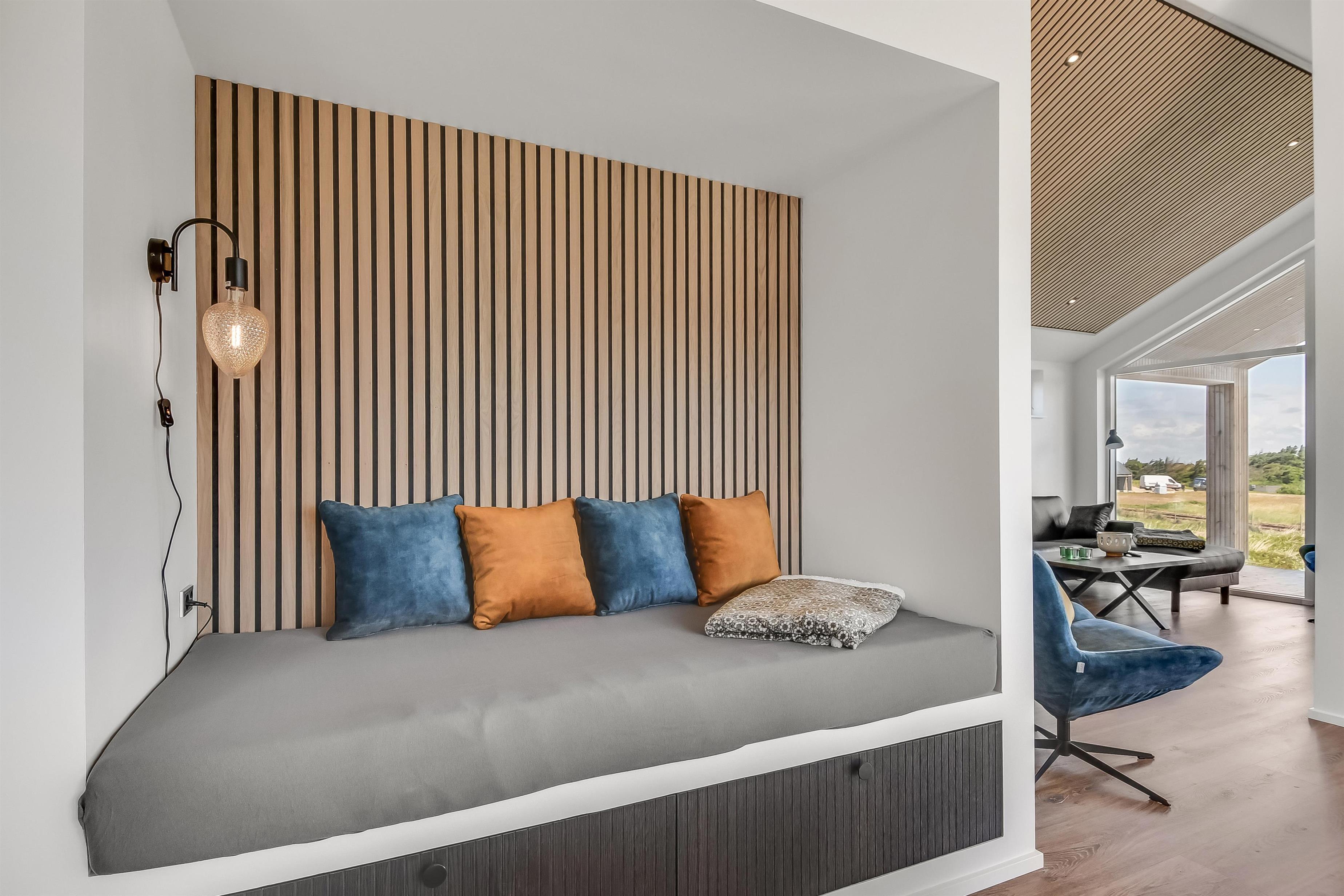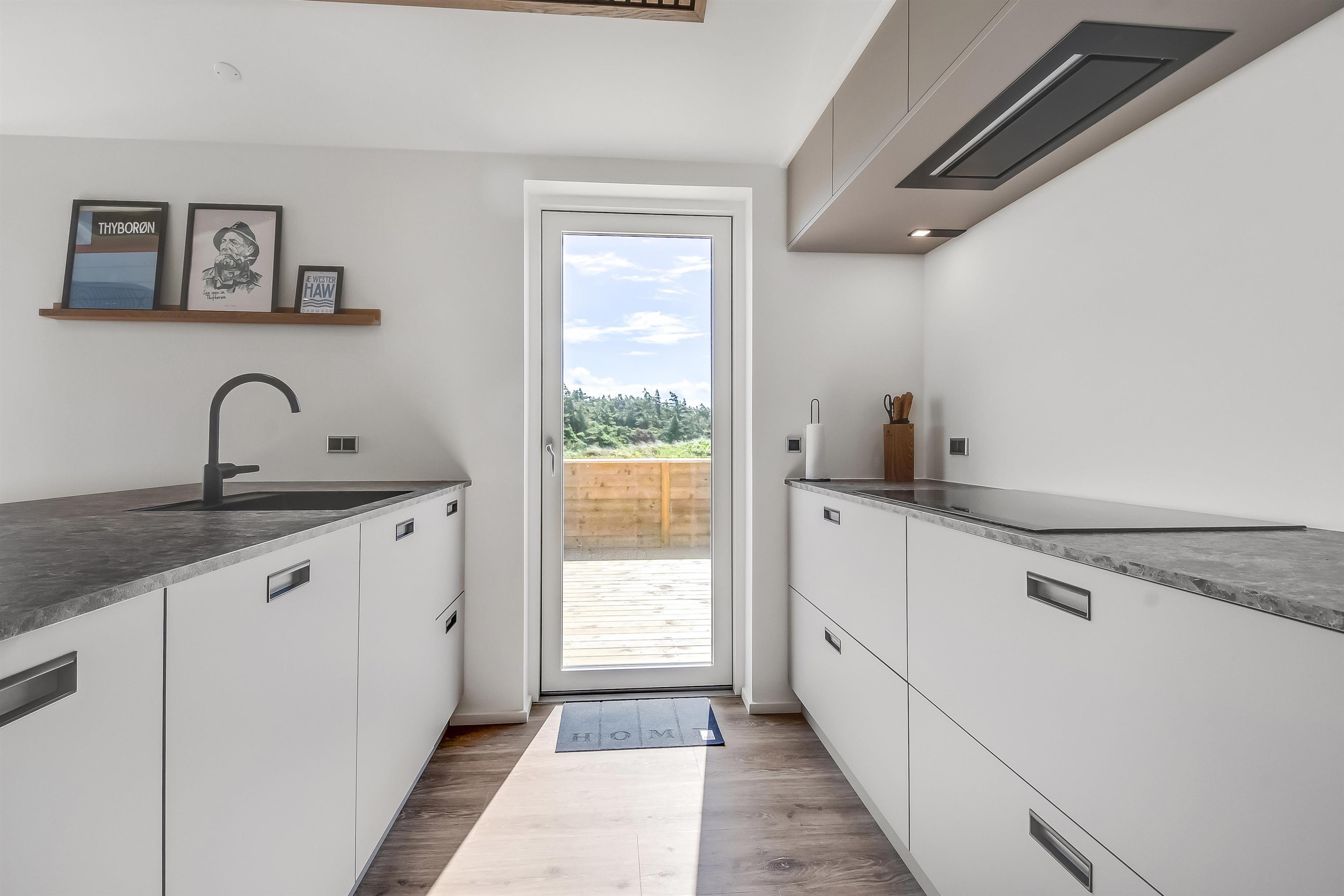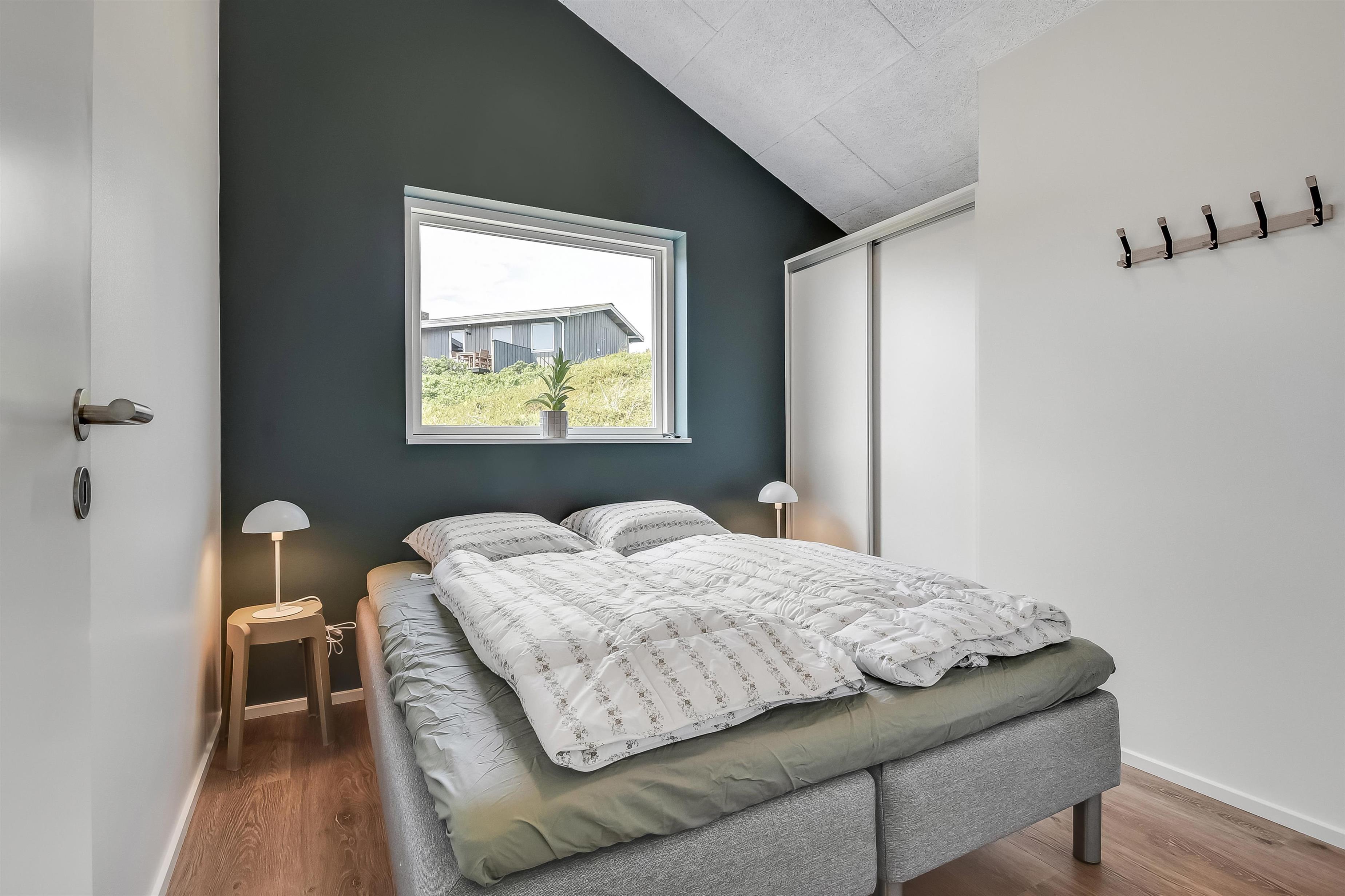 På en 1.134 m2 dejlig, kuperet naturgrund med en fantastisk udsigt til klitterne, og kun 200 m fra Vesterhavet, ligger dette pragtfulde feriehus på 113 m2. En flot entrè indeholdende skabe, ekstra af liggeplads byder velkommen. Køkken / alrummet er med loft til kip og trægulv med gulvvarme. Fra opholdsstuen er der udsigt til klitterne ved Vesterhavet og den er indrettet med smart-TV, med mulig for streaming af TV / radio / Apps, nye lædermøbler og spisebord. Gulvevarmeanlæg med sensor i hvert rum sørger for god varme i huset og gør huset særdeles energivenligt og bevirker også, at der er særdeles billigt at opvarme, selv i koldere perioder. I stuen er dejlig også en hyggelig alkove til stor glæde for børn og barnlige sjæle. Dejligt køkkenhjørne med alt i service og køkkengrej, opvaskemaskine, keramisk kogeplade, indbygningsovn, emhætte, køleskab med fryseboks og mikroovn. Stort, lækkert badeværelse med bruseniche, håndvask, toilet og klinkegulv med gulvvarme. Ekstra badeværelse med bruser, toilet, håndvask og klinkegulv med gulvvarme. Huset har 4 flotte soveværelser med trægulve, gulvvarme og skabe (1DS, 1DS, 1DS, 1DS). Vaskemaskine og tørretumbler er en selvfølge. Huset lejes ikke ud til ungdomsgrupper. Har man el-bil eller en Plug-in hybrid, så er der lade boks til Type 2 lade stik, der kan lade op til 11 kWh. Ikke ryger hus. Max. 1 hund tilladt.