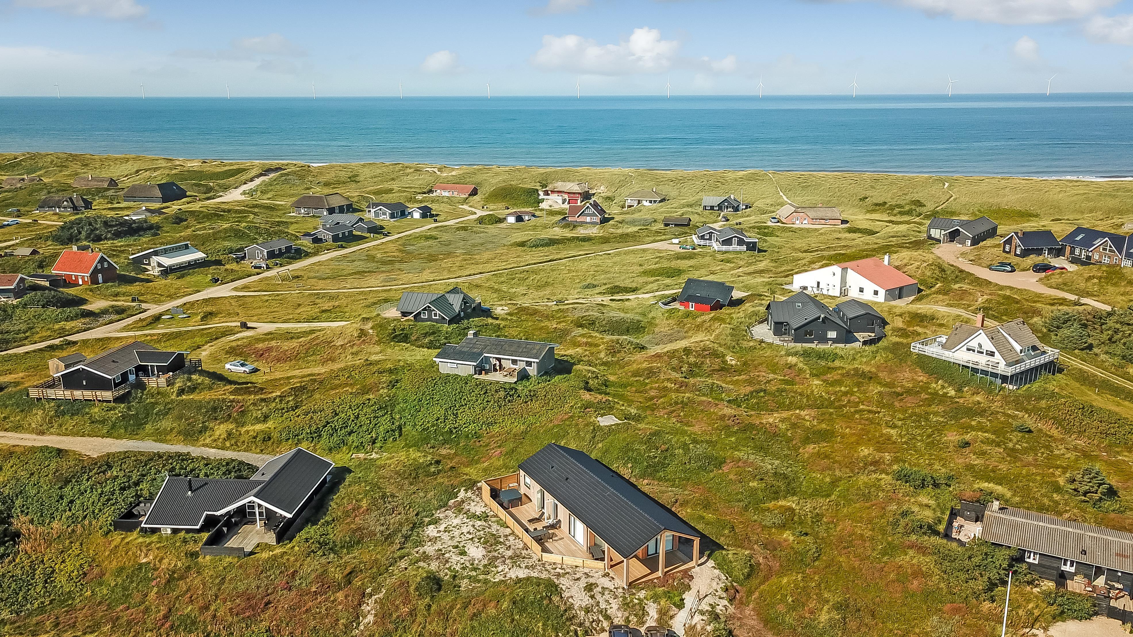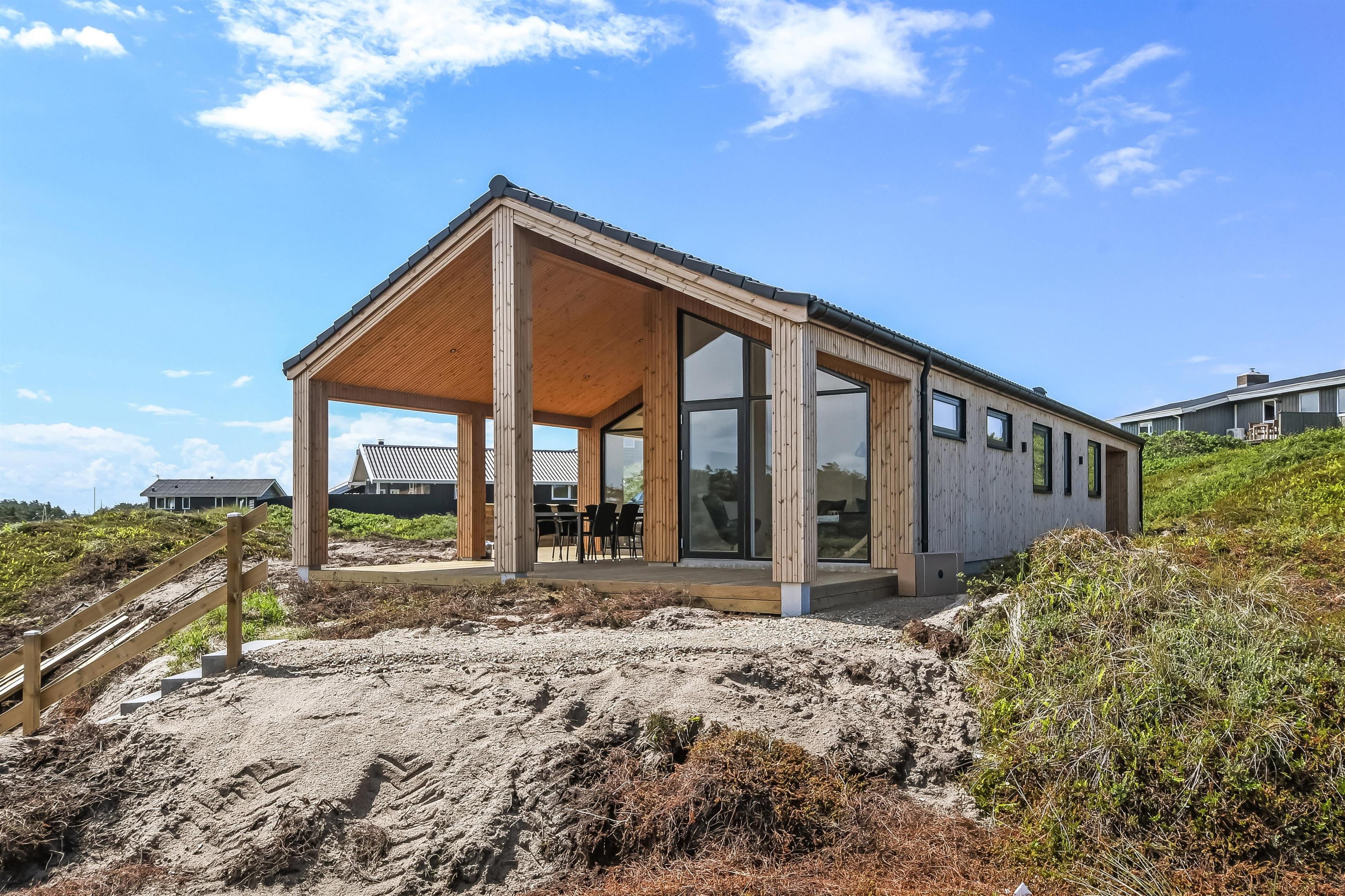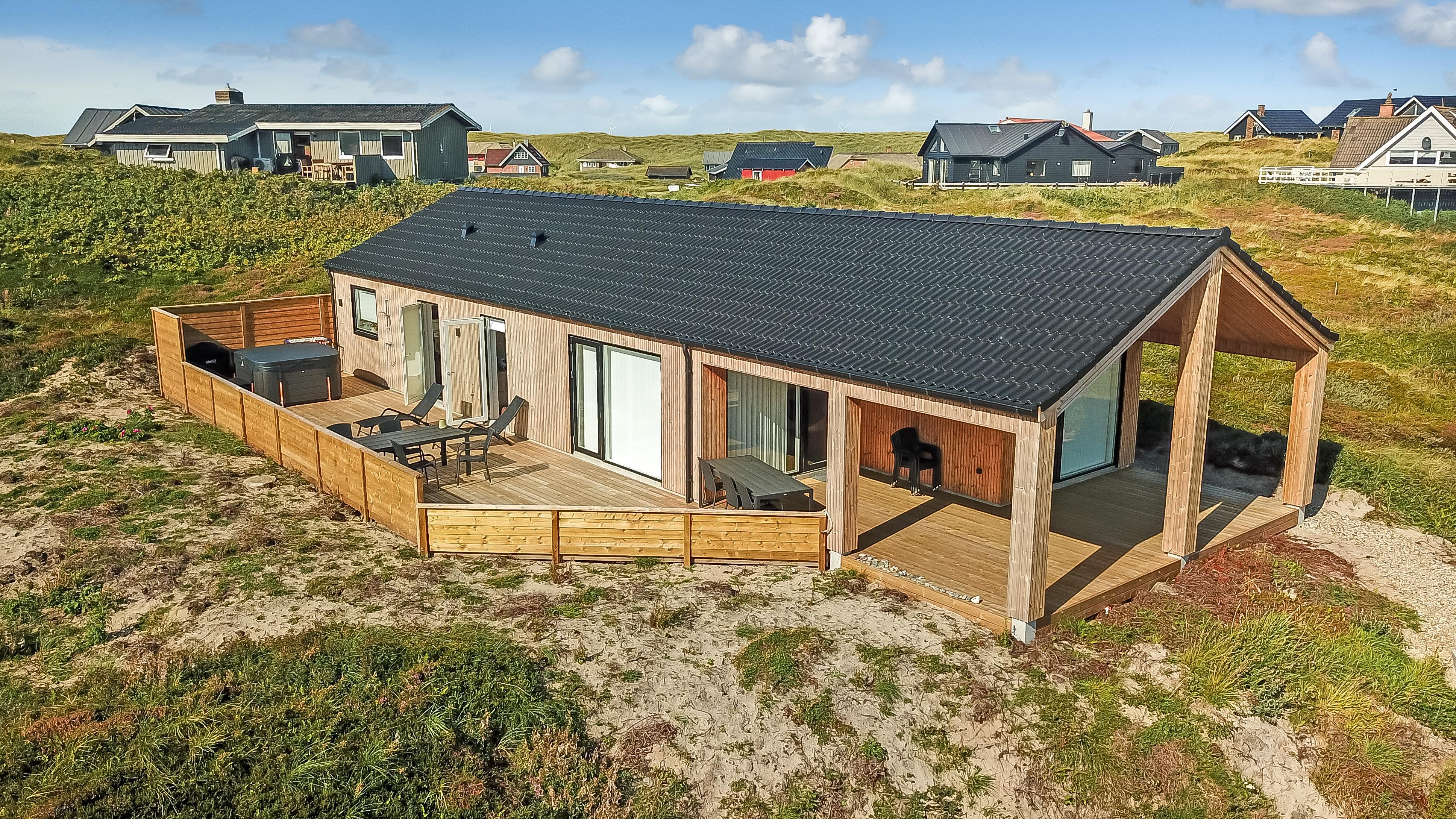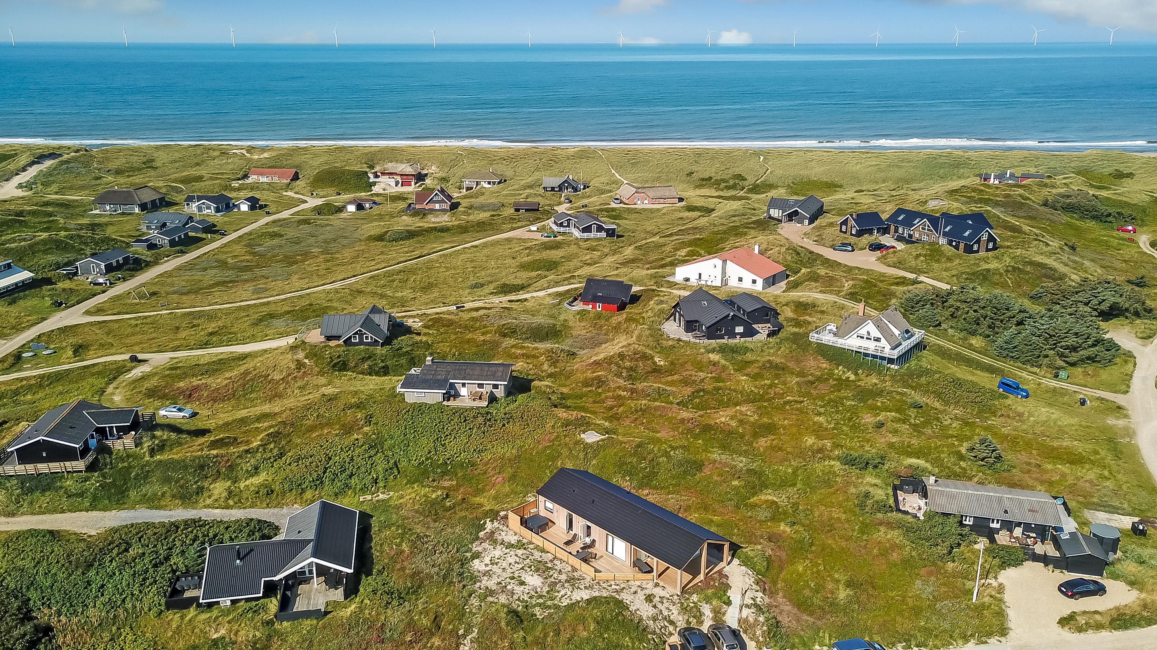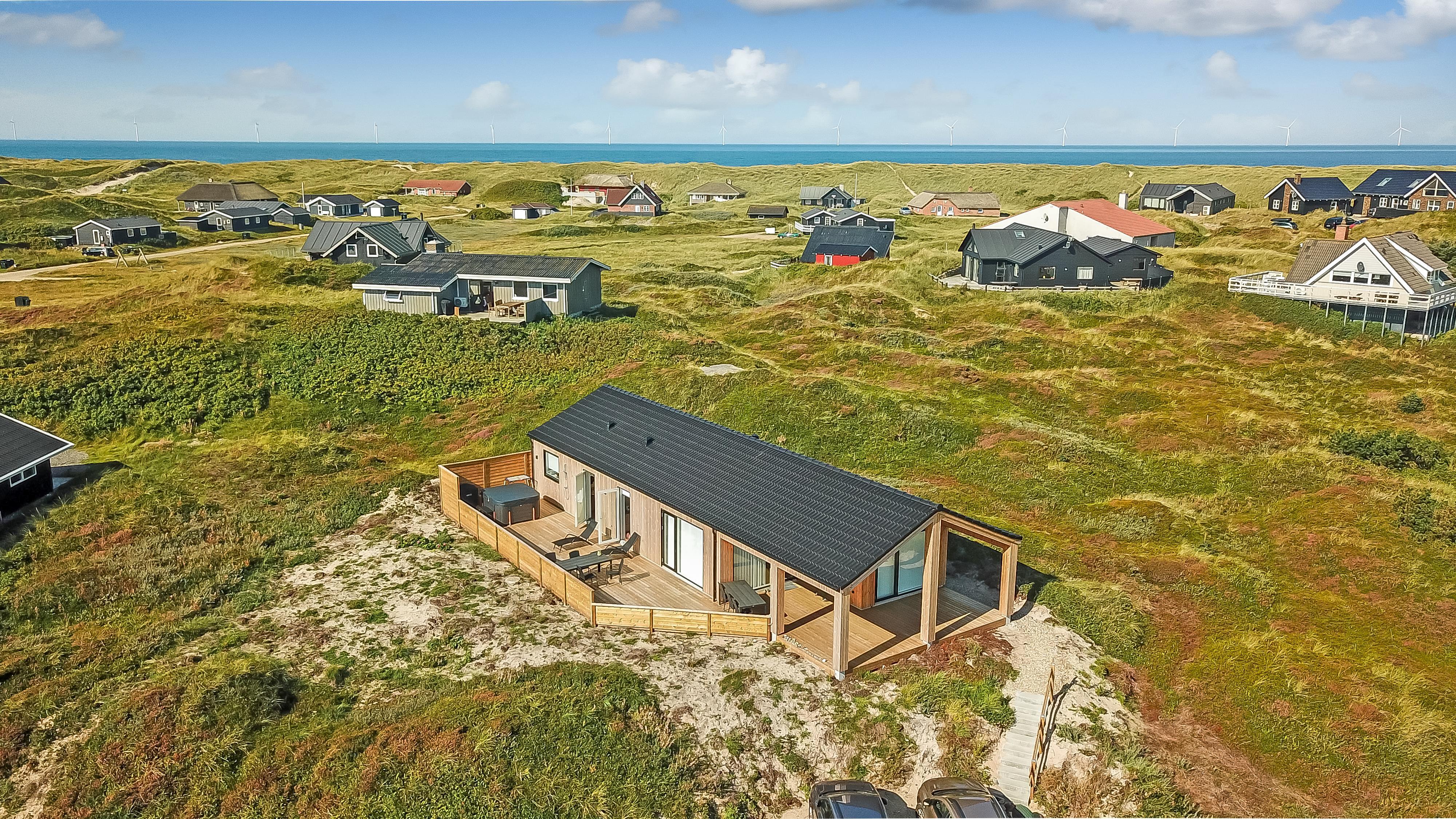 Huset er beliggende på en ca. 1.134 m2 stor kuperet, naturgrund kun 200 m fra Vesterhavet. Der er udgang til et fantastisk terrasseanlæg med stakit. Havemøbler, solvogne og gasgrill som kan flyttes rundt efter behag. Der er masser af læ kroge og fantastiske og masser af muligheder for at nyde den fantastiske udsigt. En tur i den udendørs spa gør oplevelsen unik og specielt på de mørke aftener med den klare stjernehimmel. En unik oplevelse som er ren terapi for sjæl og krop. Fra grunden kan man via grusstier nemt gå til direkte over klitten til Vesterhavet. Således er der ikke langt til strandfornøjelser som badning, drageflyvning, lystfiskeri eller vandreture i den friske luft hvor man til tider kan blive blæst helt igennem. Vesterhavets vandkant ligger blot 200 meter fra huset. Et utrolig dejligt hus, hvor der er tænkt på det meste og med masser af muligheder. 5 - 10 min fra huset ligger Vesterhavet, der altid inviterer til en frisk gå- eller løbetur. Områdets købmand har sæsonåbent og ligger ca. 1.500 m fra huset og som i sæsonen byder på frisk morgenbrød. Her kan de daglige indkøb også klares. Også området madsted ligger ca. 1.500 fra huset. Inden for 25-30 minutter kan flere aktiviteter og shopping muligheder nås. Så hvad enten I er til aktiv ferie eller total afslapning, danner dette flotte, nybygget feriehus en dejlig ramme både hvad angår hus, beliggenhed og omgivelser.