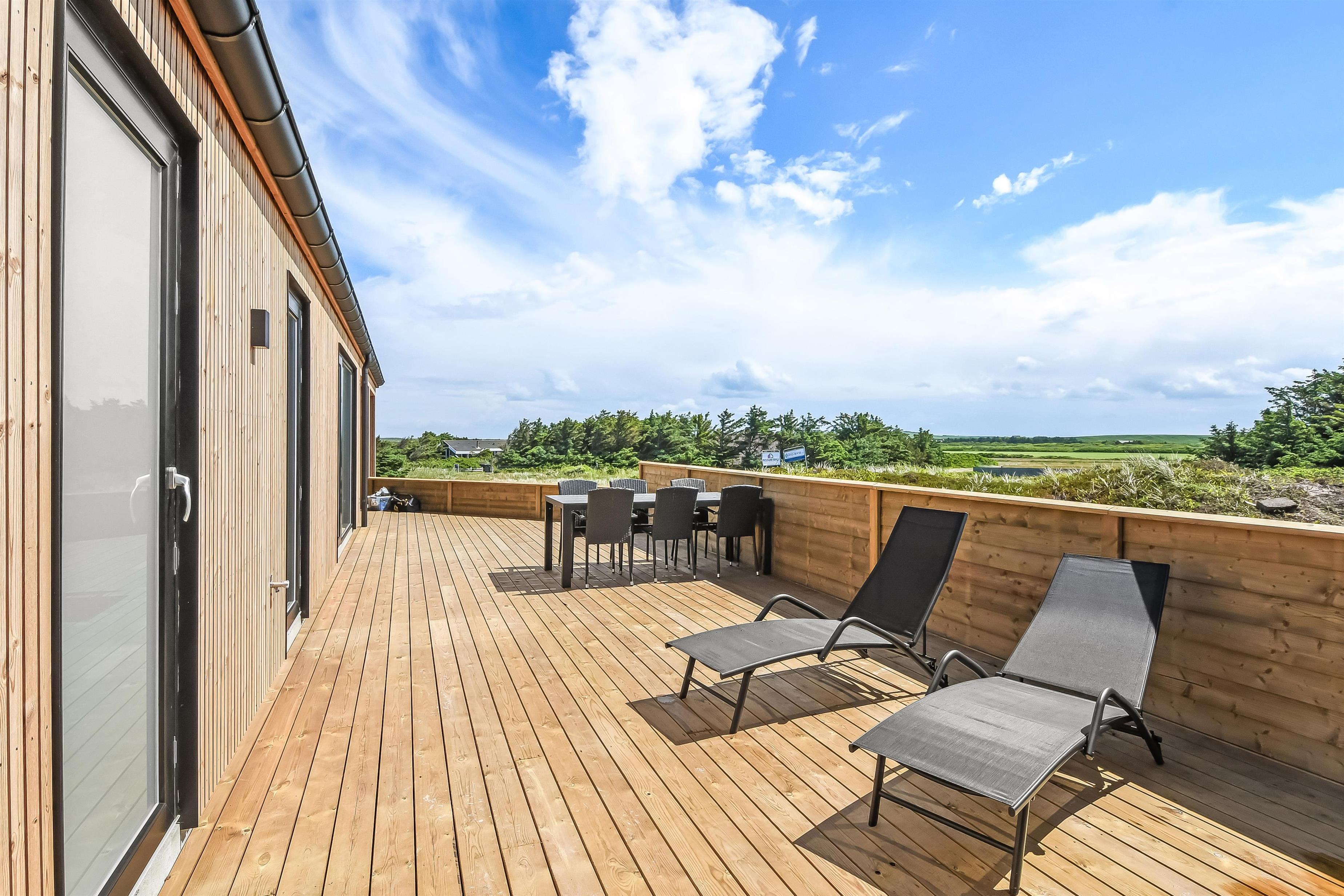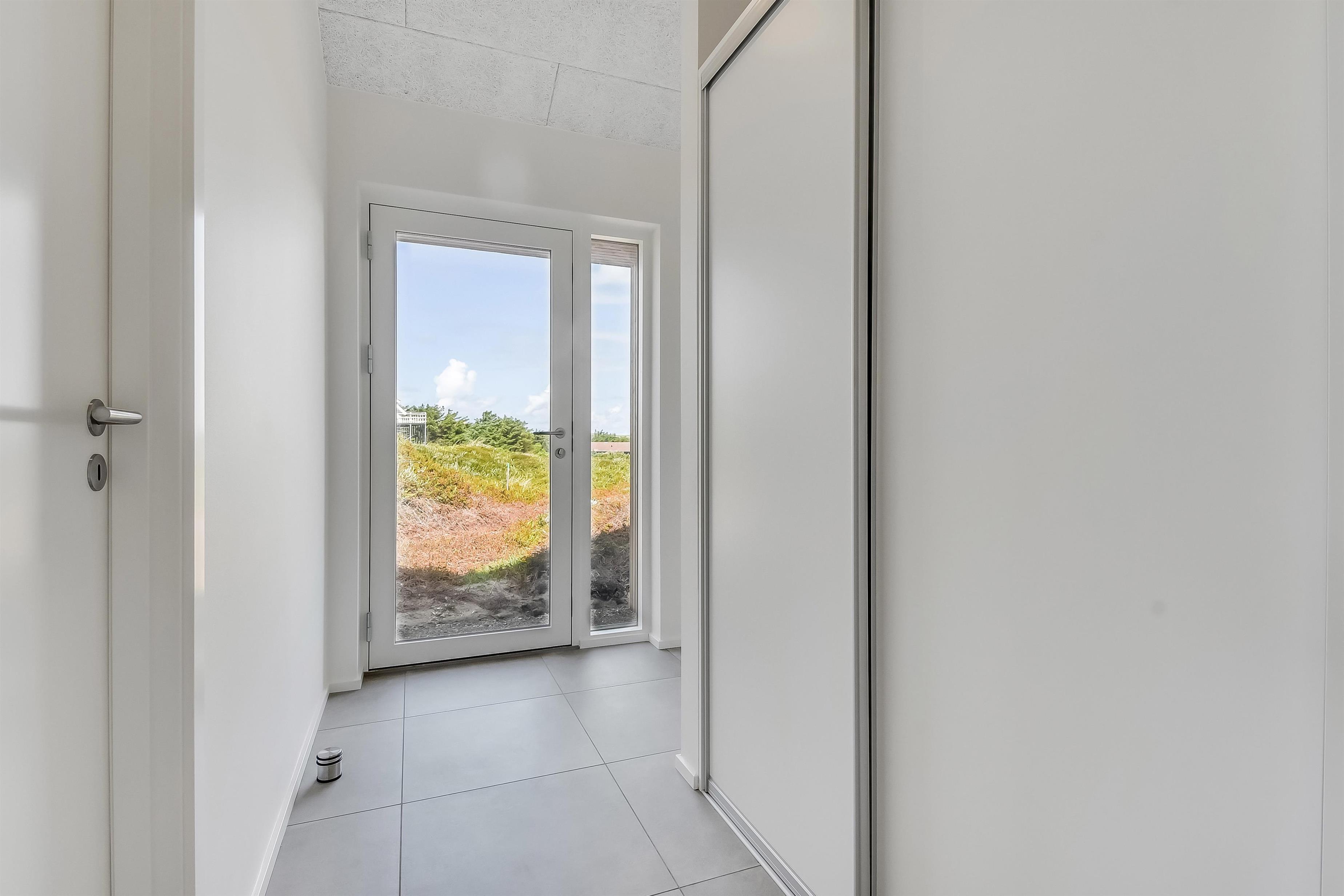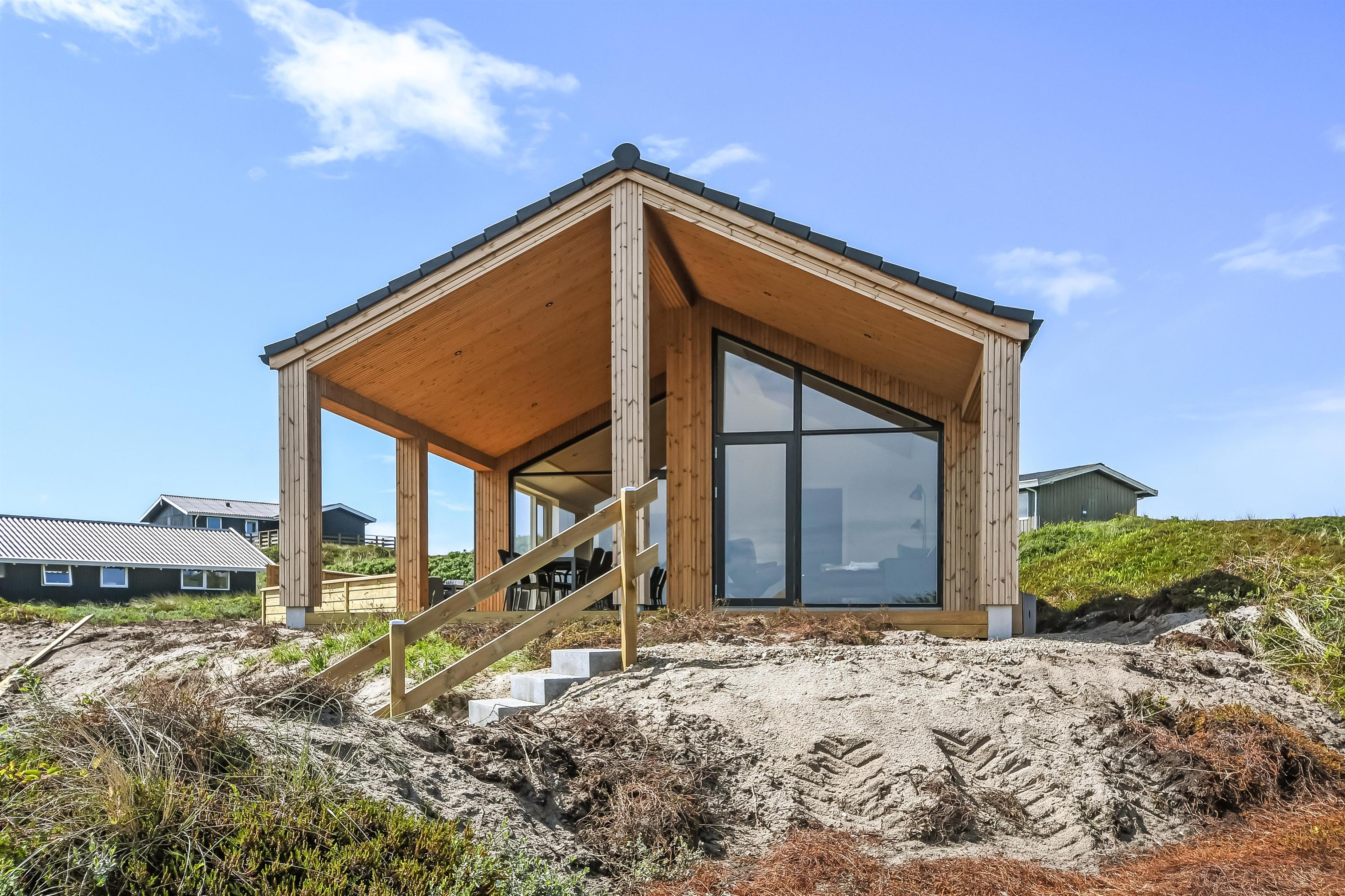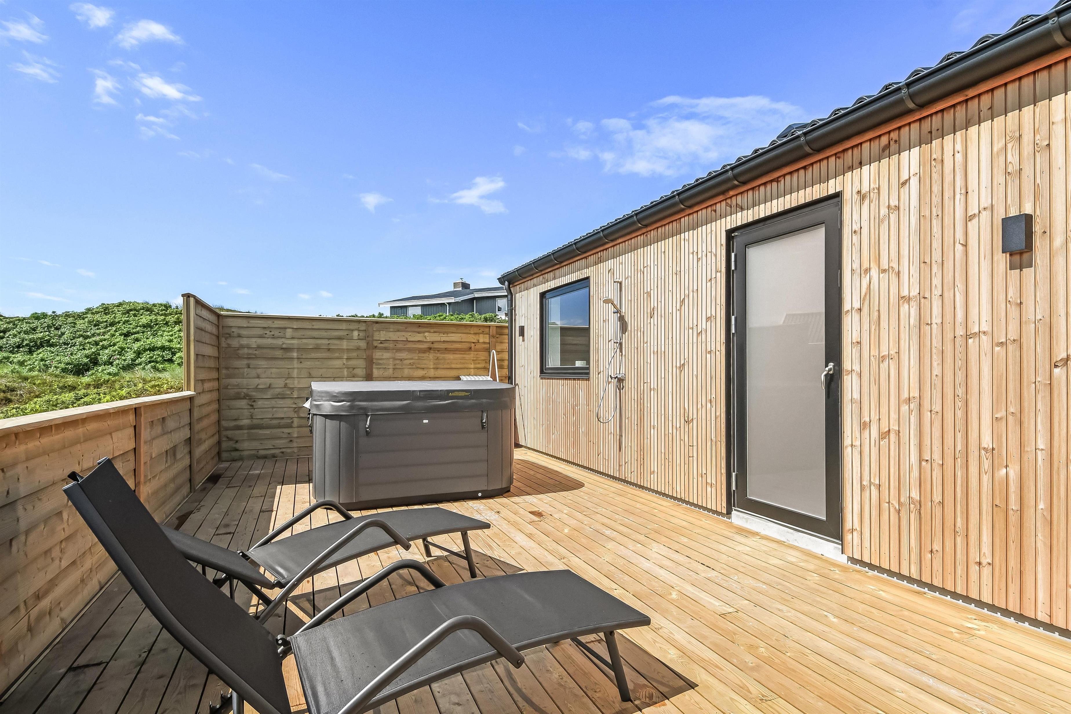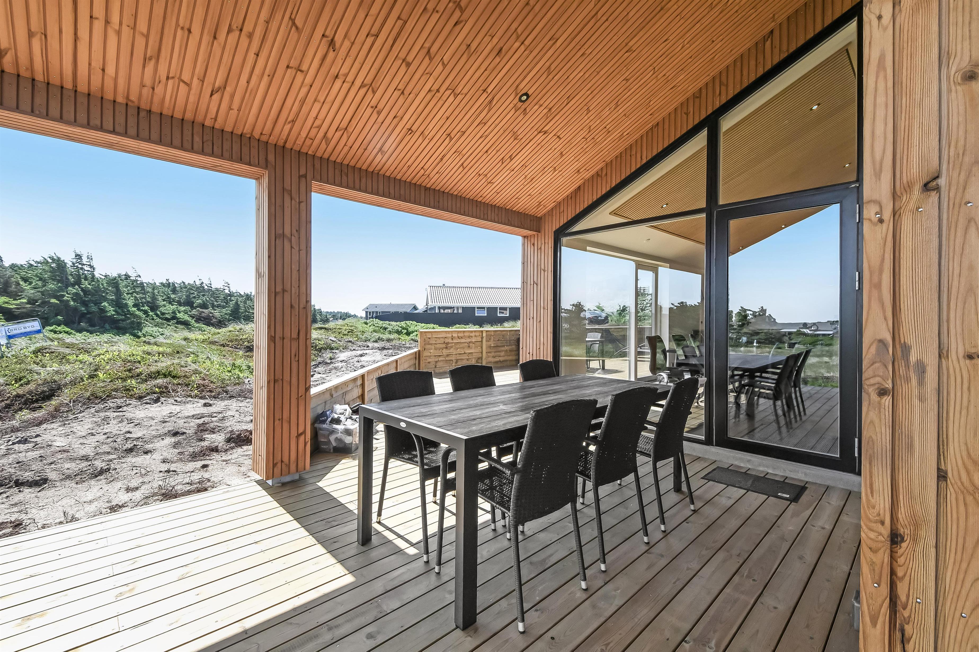 Huset er beliggende på en ca. 1.134 m2 stor kuperet, naturgrund kun 200 m fra Vesterhavet. Der er udgang til et fantastisk terrasseanlæg med stakit. Havemøbler, solvogne og gasgrill som kan flyttes rundt efter behag. Der er masser af læ kroge og fantastiske og masser af muligheder for at nyde den fantastiske udsigt. En tur i den udendørs spa gør oplevelsen unik og specielt på de mørke aftener med den klare stjernehimmel. En unik oplevelse som er ren terapi for sjæl og krop. Fra grunden kan man via grusstier nemt gå til direkte over klitten til Vesterhavet. Således er der ikke langt til strandfornøjelser som badning, drageflyvning, lystfiskeri eller vandreture i den friske luft hvor man til tider kan blive blæst helt igennem. Vesterhavets vandkant ligger blot 200 meter fra huset. Et utrolig dejligt hus, hvor der er tænkt på det meste og med masser af muligheder. 5 - 10 min fra huset ligger Vesterhavet, der altid inviterer til en frisk gå- eller løbetur. Områdets købmand har sæsonåbent og ligger ca. 1.500 m fra huset og som i sæsonen byder på frisk morgenbrød. Her kan de daglige indkøb også klares. Også området madsted ligger ca. 1.500 fra huset. Inden for 25-30 minutter kan flere aktiviteter og shopping muligheder nås. Så hvad enten I er til aktiv ferie eller total afslapning, danner dette flotte, nybygget feriehus en dejlig ramme både hvad angår hus, beliggenhed og omgivelser.