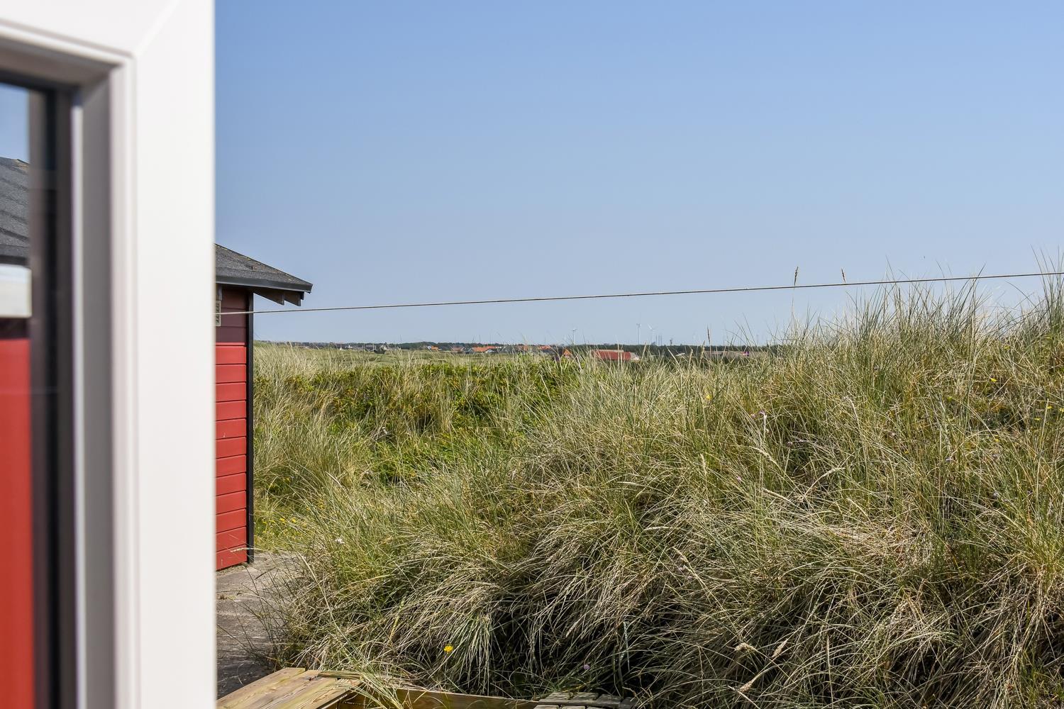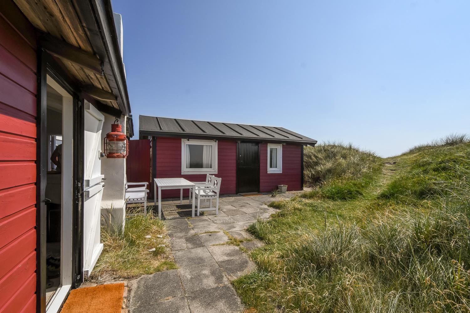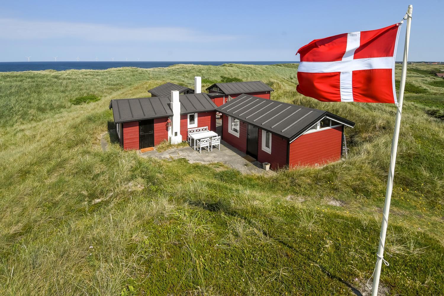 Dette hus ligger på en ca. 4.170 m2 klitgrund i første række til Vesterhavet. Fra grunden er der stier direkte over klitterne, direkte til Vesterhavet. Disse omgivelser er helt unikke og findes ikke lignende andre steder i området. De 2 huse giver masser af muligheder for gode solkroge på de 3 terrasser. Når I kommer op til huset tager den første terrasse imod. Terrassen ligger omgivet af klitter som danner en gryde. Her er der næsten altid læ og sol. På terrassen er der et borde bænkesæt og der er solvogne som kan flyttes rundt efter behov. Fra terrassen er der opgang til et udsigtspunkt med 1 romantisk bænk. her er der pragtfuld udsigt over Vesterhavet og de høje klitter. Nyd også husets 2 andre terrasser. Fra fordeler gangen er der udgang til en fantastisk vestvendt terrasse med havemøbler og en dejlig gasgrill. Bedre sted at nyde et måltid findes simpelthen ikke. Sidst men ikke mindst er der fra opholdsstuen udgang til huset bagudvendte terrasse som næsten er bygget ind i klitterne med udendørs bruser.. Når i kommer frem til huset parkeres bilen nedenfor huset og via trapperne gennem den naturlige allé går I op til huset (Det er forbud mod at gå via klitterne). Her får I dagens motion - men det er med garanti indsatsen værd. Selve huset er hyggeligt og pænt med det er beliggenheden, som er unik og derfor er der ikke gået på kompromis med stilen i huset, som ikke er tip top moderne med velvalgt til huset beliggenhed. En sand nydelse for de få heldige der får lov til at leje dette private og personlige badehus.