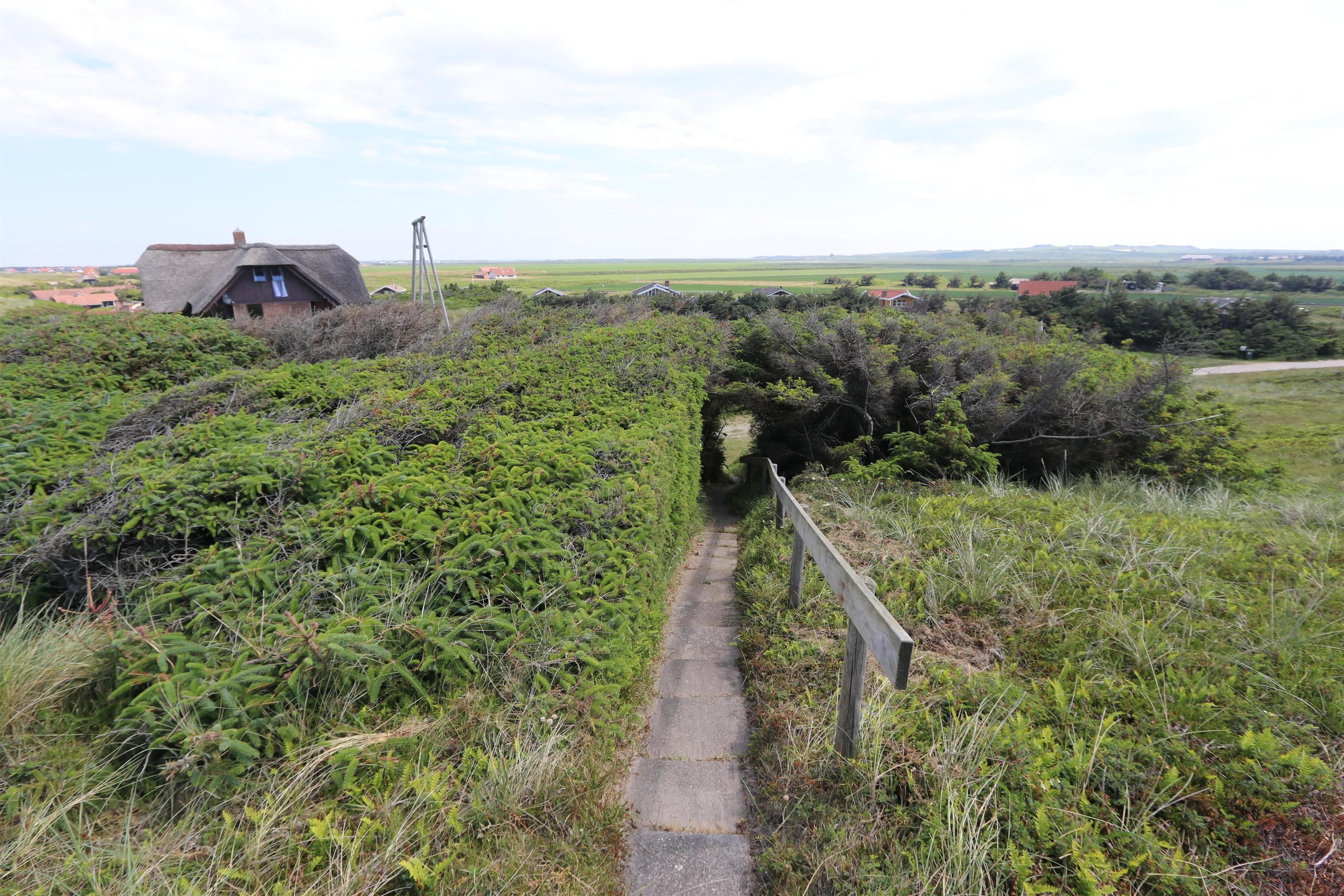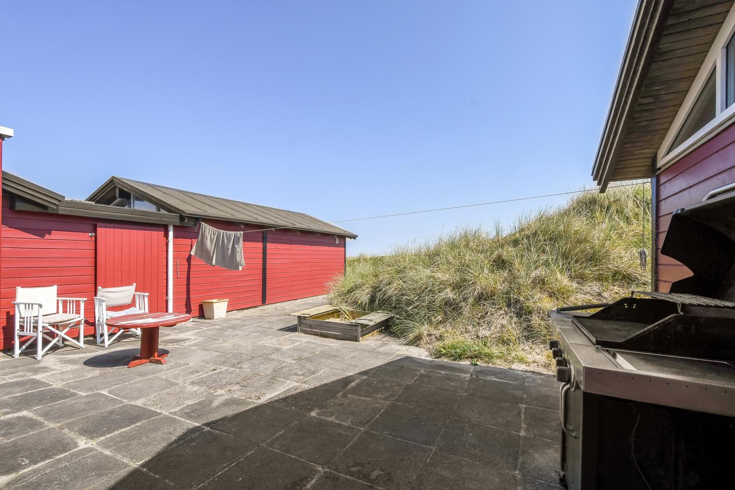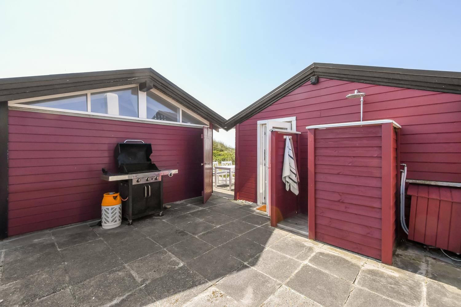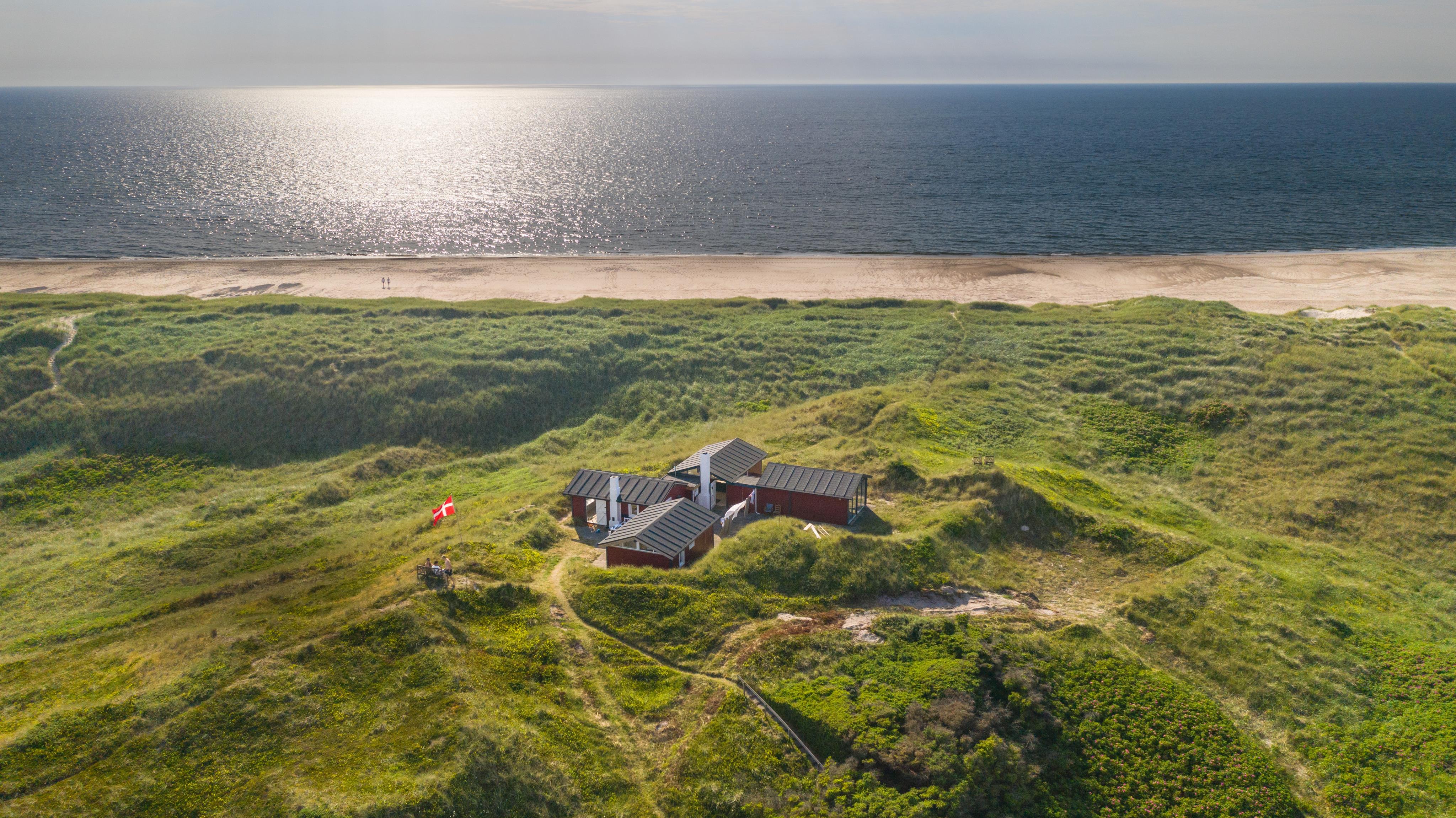 Dette hus ligger på en ca. 4.170 m2 klitgrund i første række til Vesterhavet. Fra grunden er der stier direkte over klitterne, direkte til Vesterhavet. Disse omgivelser er helt unikke og findes ikke lignende andre steder i området. De 2 huse giver masser af muligheder for gode solkroge på de 3 terrasser. Når I kommer op til huset tager den første terrasse imod. Terrassen ligger omgivet af klitter som danner en gryde. Her er der næsten altid læ og sol. På terrassen er der et borde bænkesæt og der er solvogne som kan flyttes rundt efter behov. Fra terrassen er der opgang til et udsigtspunkt med 1 romantisk bænk. her er der pragtfuld udsigt over Vesterhavet og de høje klitter. Nyd også husets 2 andre terrasser. Fra fordeler gangen er der udgang til en fantastisk vestvendt terrasse med havemøbler og en dejlig gasgrill. Bedre sted at nyde et måltid findes simpelthen ikke. Sidst men ikke mindst er der fra opholdsstuen udgang til huset bagudvendte terrasse som næsten er bygget ind i klitterne med udendørs bruser.. Når i kommer frem til huset parkeres bilen nedenfor huset og via trapperne gennem den naturlige allé går I op til huset (Det er forbud mod at gå via klitterne). Her får I dagens motion - men det er med garanti indsatsen værd. Selve huset er hyggeligt og pænt med det er beliggenheden, som er unik og derfor er der ikke gået på kompromis med stilen i huset, som ikke er tip top moderne med velvalgt til huset beliggenhed. En sand nydelse for de få heldige der får lov til at leje dette private og personlige badehus.