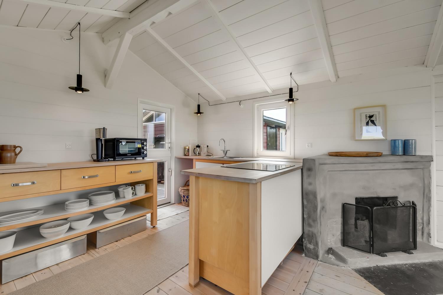 2 bygninger udgør dette unikke badehus som i alt er ca. 106 m2 stort. I hovedhuset tager en kombineret spisestue og åbent køkken imod. I køkkenet er der alt i service og køkkengrej, keramisk kogeplade med 4 zoner, bordovn og køleskab med fryseboks. Fra køkkenet går I gennem en lille fordeler gang ind i huset opholdsstue. Gennem de store panoramavinduer åbenbaret sig straks den unikke udsigt. Et fantastisk syn som ikke findes mange steder i området. Her kan I sidde i den dejlige sofa og nyde udsigt eller tænde op i den helt nyindstalleret brændeovn. Huset har også et stort smart-TV som hvor der er mulighed for streaming af TV / radio / Apps, så har du en mobiltelefon eller et andet device med kan du streame hvad du nu har abonnement til. TVét har ingen antenneadgang, men er forbundet via Internettet og kan derfor kun modtage programmer, som kan tages via Internettet, men kan derfor placeres i både opholdsstue og soveværelse efter behag. Fra stuen er der adgang til et stort, fantastisk master-bedroom (1DS). Herfra er der en lige så betagende udsigt samt en dejlig stor dobbeltseng. Det er en helt speciel oplevelse at vågne op til den fantastiske udsigt. Lille badeværelse med toilet, bruser og håndvask. Ikke ryger hus. Husdyr ikke tilladt