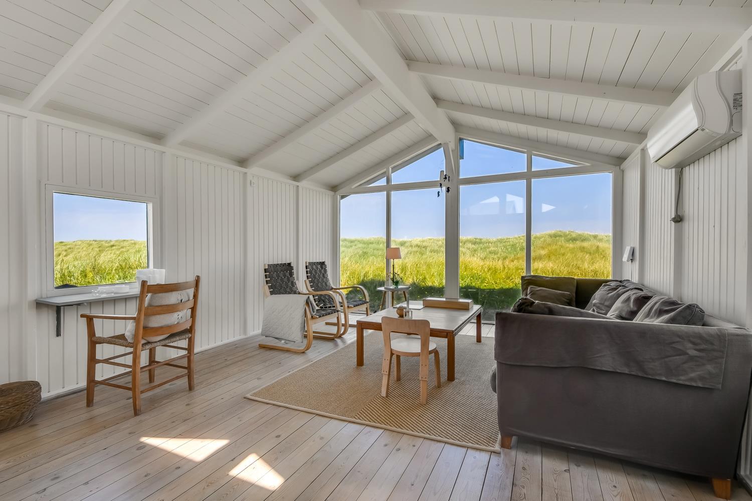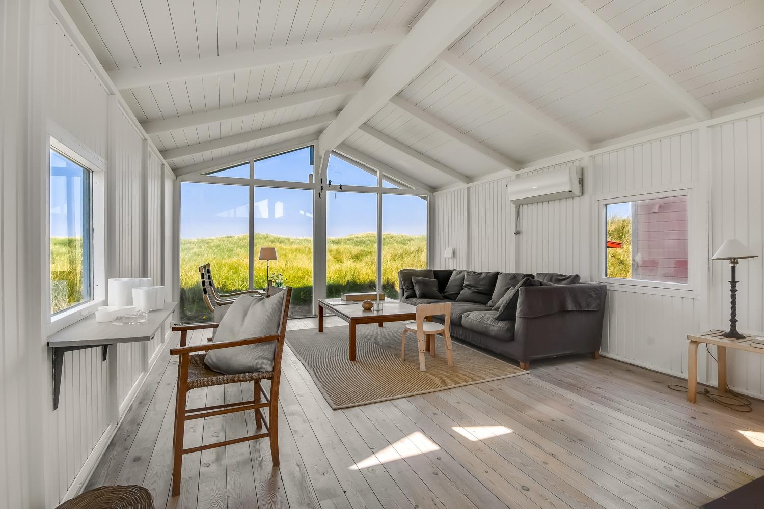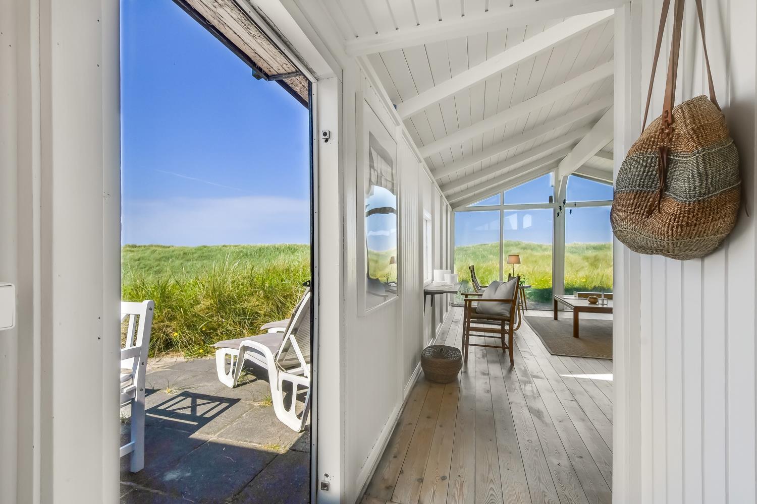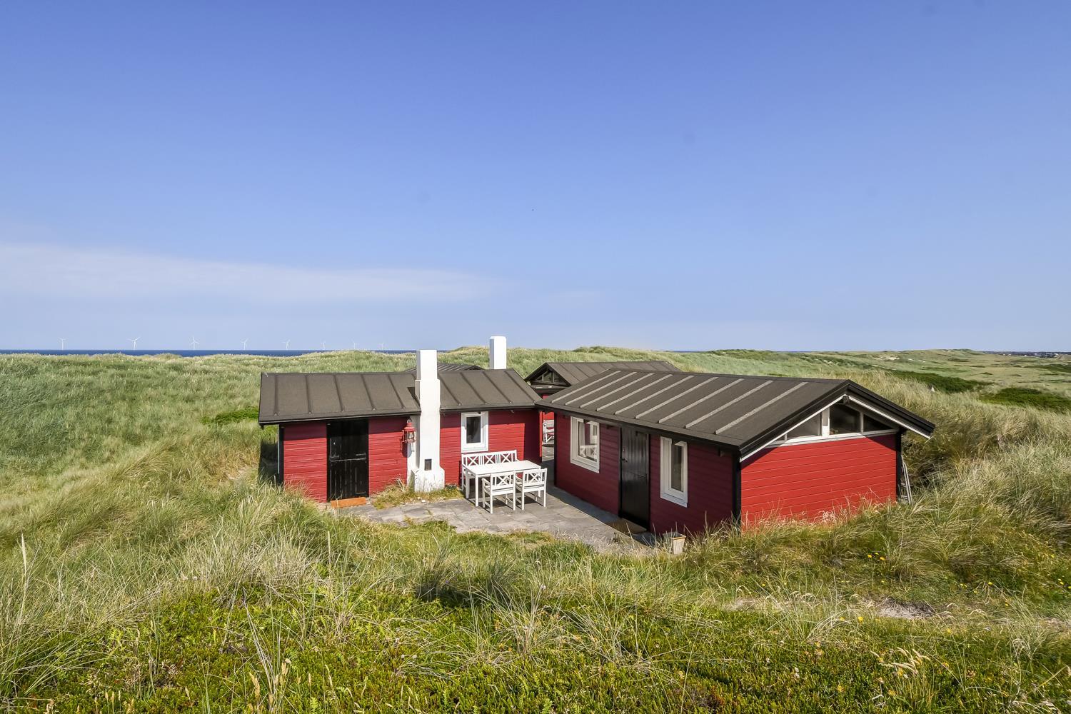 I 1. række til klitterne ligger dette hyggelige træhus og det har et af området bedste beliggenheder. Huset kan bedst beskrives som et rigtigt badehus i samme stil som et badehotel. Huset har en unik beliggenhed og har panorama udsigt fra både opholdsstuen og soveværelse til klitterne lige ved Vesterhavet. Fra huset er der direkte gangsti til Vesterhavet, som kun ligger cirka 100 meter fra huset.