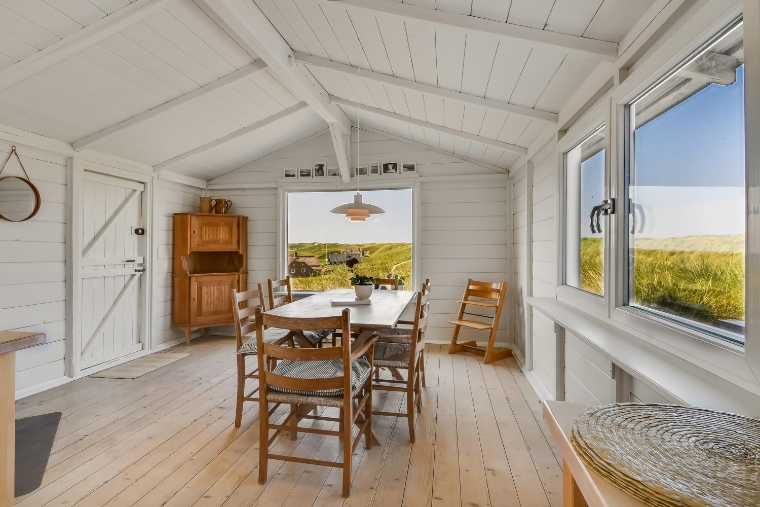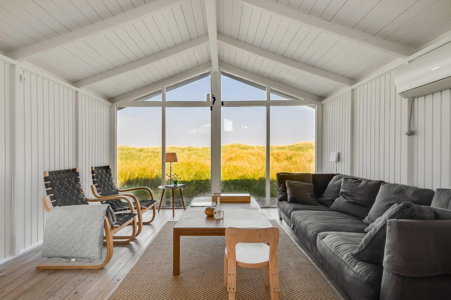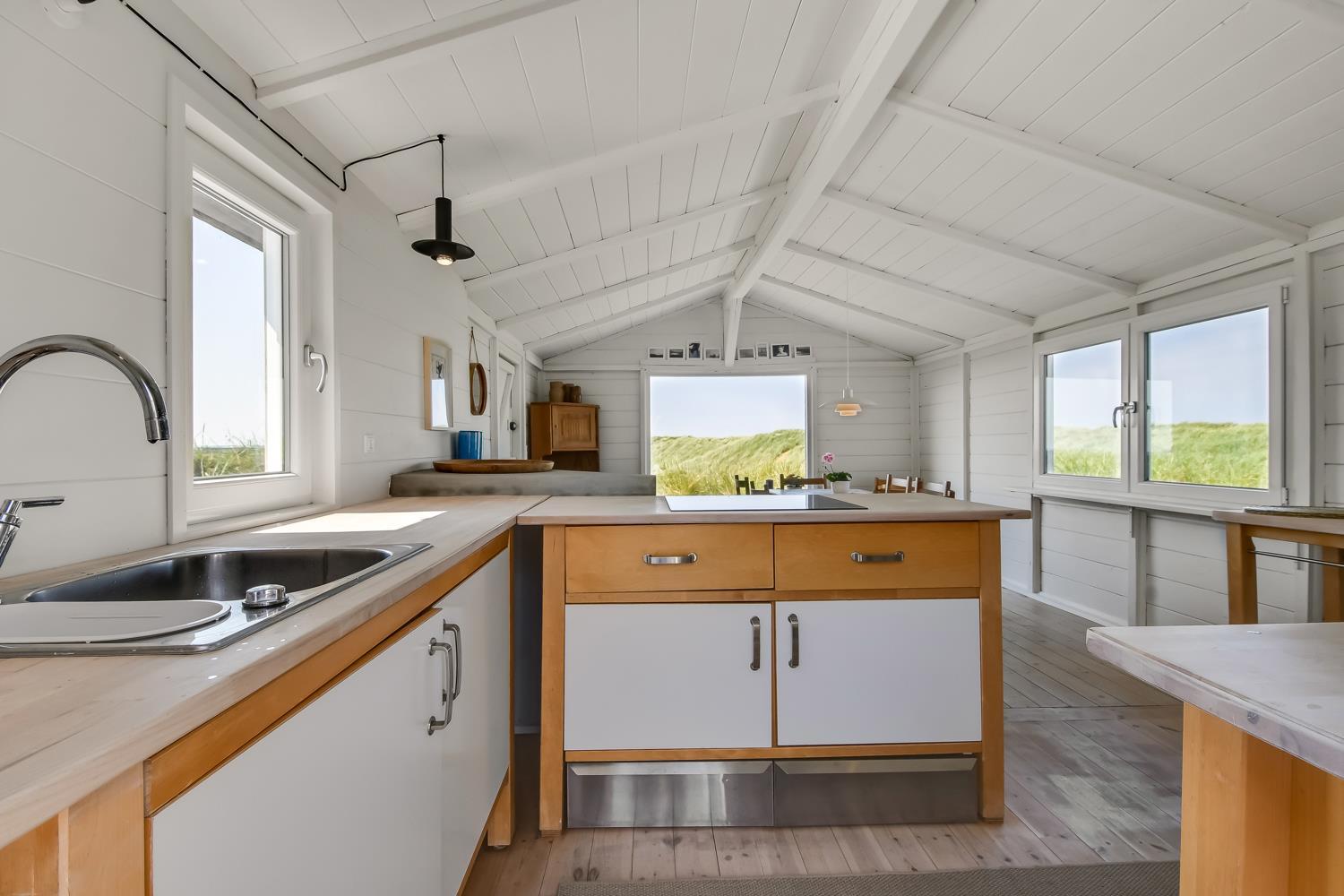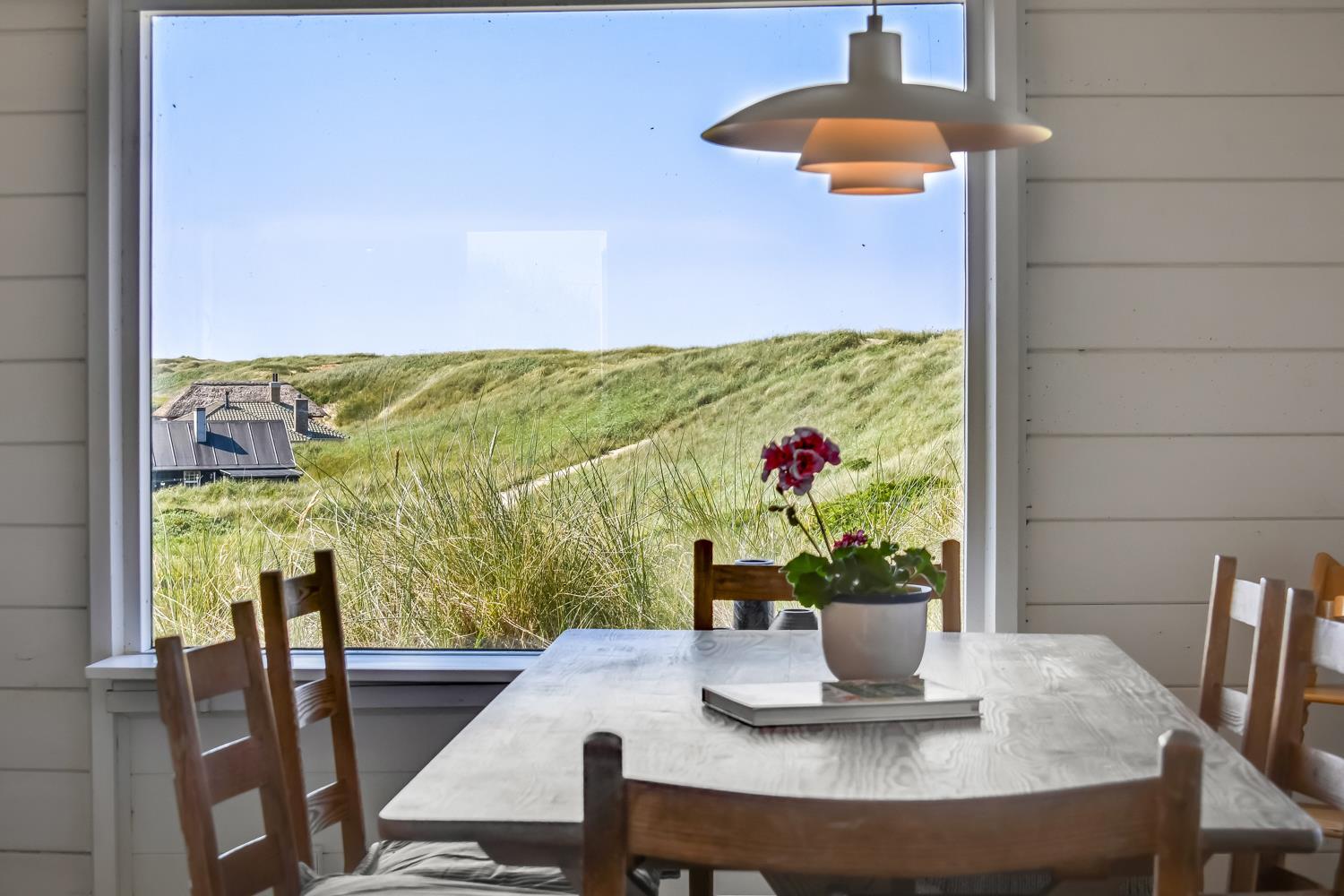 I 1. række til klitterne ligger dette hyggelige træhus og det har et af området bedste beliggenheder. Huset kan bedst beskrives som et rigtigt badehus i samme stil som et badehotel. Huset har en unik beliggenhed og har panorama udsigt fra både opholdsstuen og soveværelse til klitterne lige ved Vesterhavet. Fra huset er der direkte gangsti til Vesterhavet, som kun ligger cirka 100 meter fra huset.