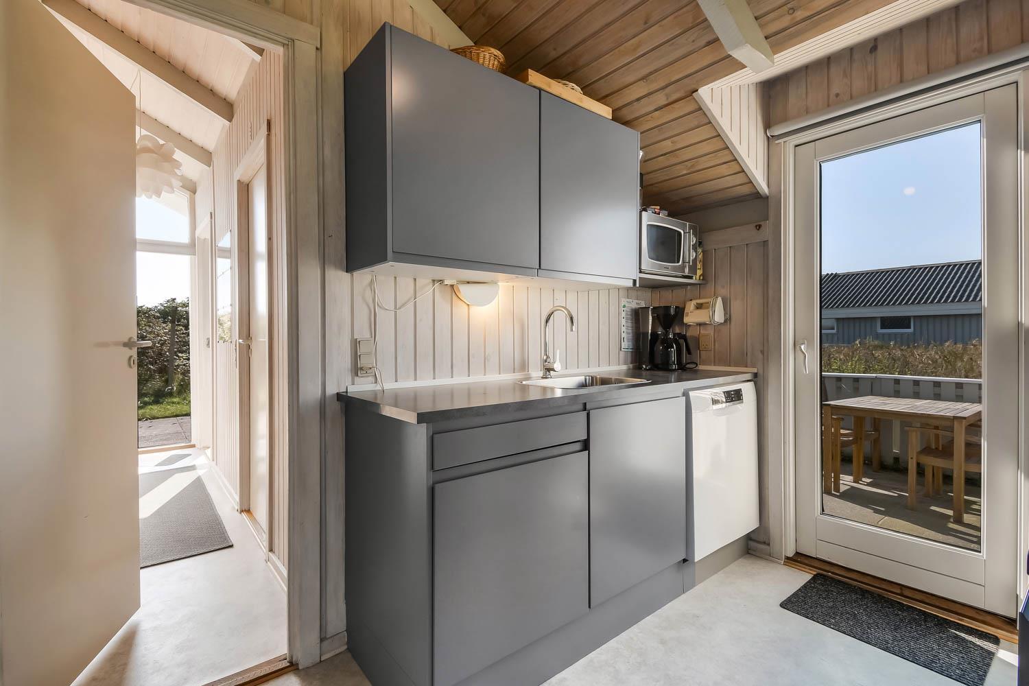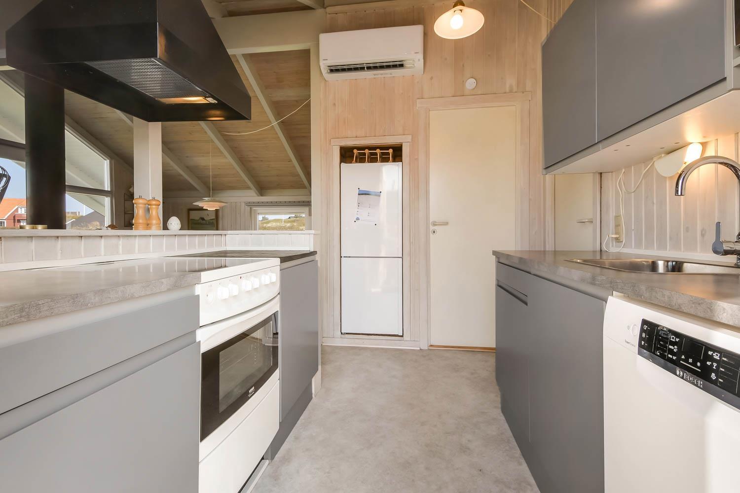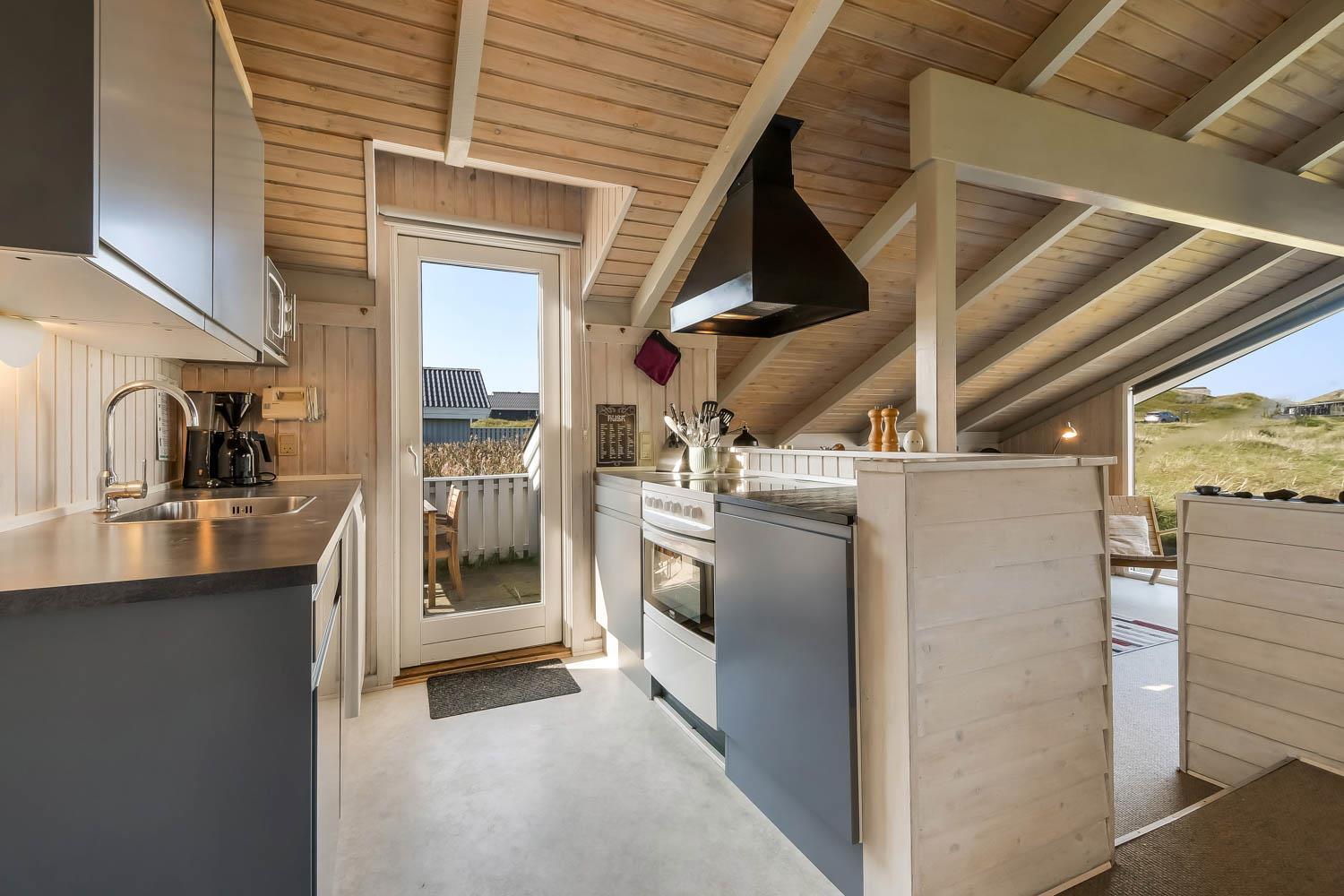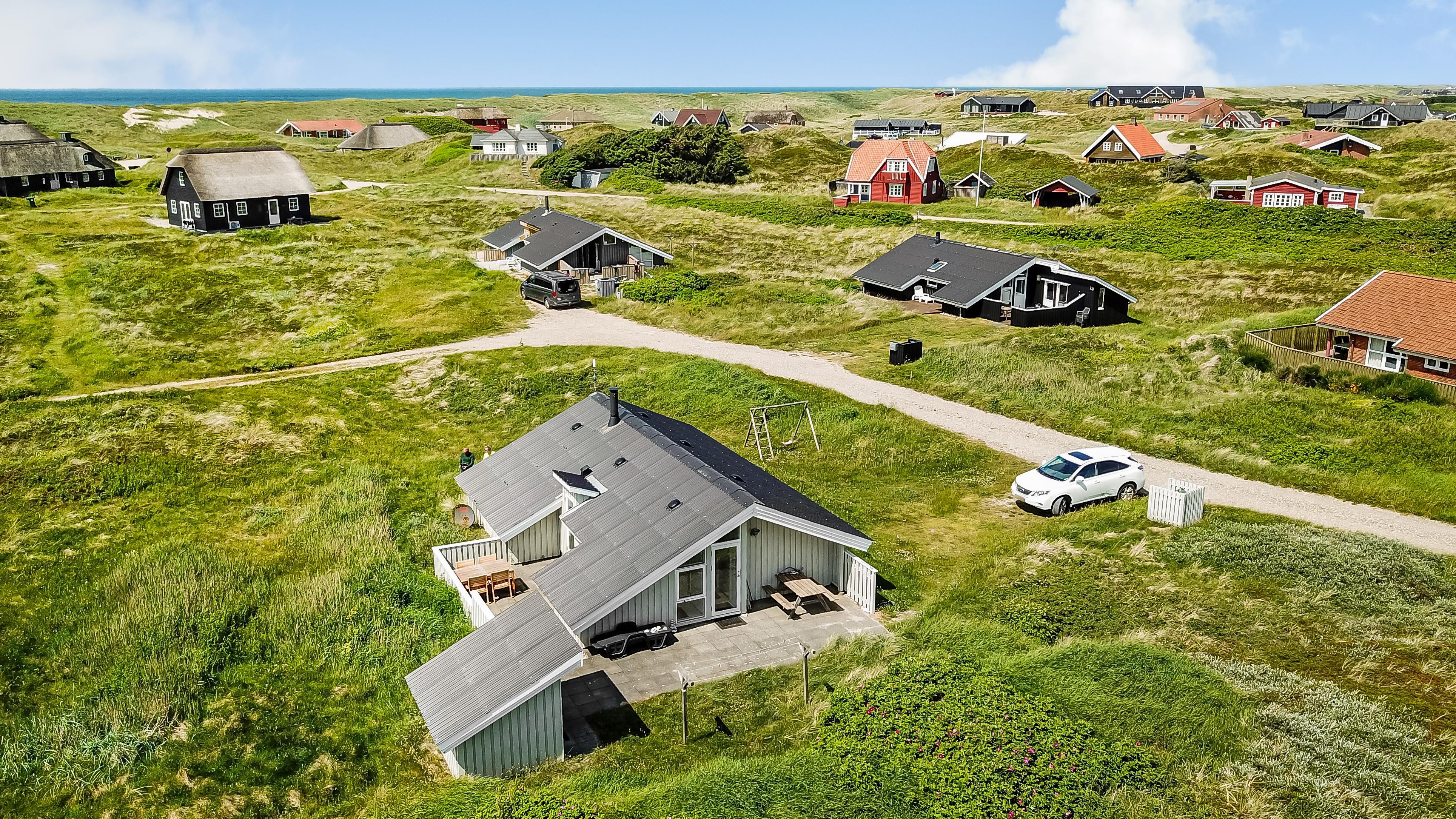 Huset ligger på en ca. 1.600 m2 stor klitgrund. Fra opholdsstuen og fra køkkenet er udgang til 3 dejlige terrasser, hvoraf den største er delvis overdækket. Der er havemøbler, grill og solvogne til rådighed. Fra terrasserne kan man høre havets brusen. Nyd en gåtur ved Vesterhavet. Find sten og rav eller sæt jer i klitterne og nyd solnedgangen over havet.