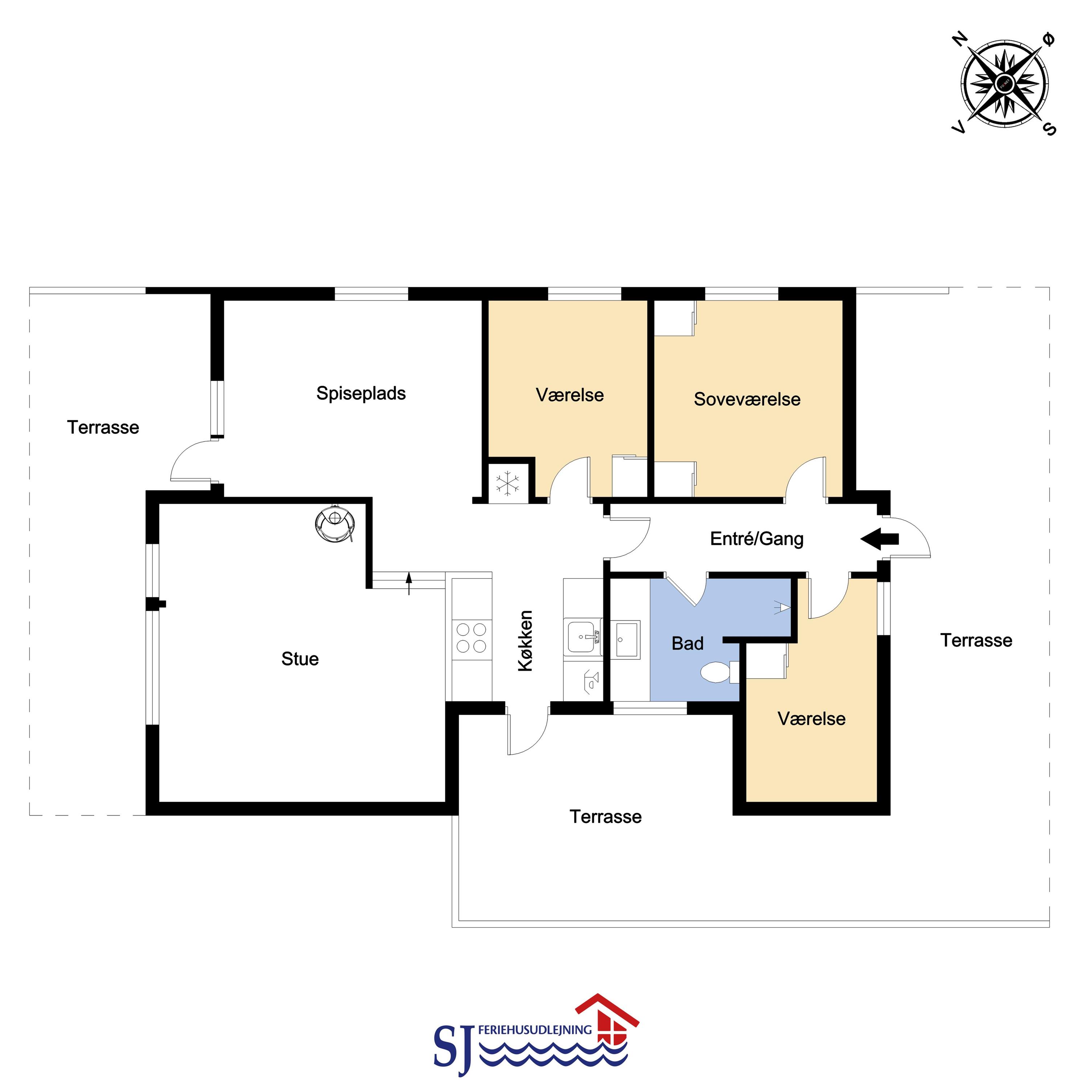 Godt indrettet 73 m2 stort træhus fra 1987. 3 soveværelser (1DS, 1DS, 2ES). En praktisk entré byder jer velkommen. For enden af entréen træder man ind i huset flotte, nye køkkenhjørne som komfur, emhætte, mikroovn, opvaskemaskine og køleskab med fryseboks. Køkkenet er kombineret med opholds-/spisestuen. Opholdsstuen som er forsænket i forhold til køkken og spiseafdeling er med lædermøbler, TV med danske og tyske programmer. En dejlig brændeovn og en varmepumpe sørger både for ekstra hygge og varmer dejlig på de lidt kolde dage. Der er gulvtæpper i opholdsstue, spisestue og i soverummene samt praktisk linoleum i køkkenet og badeværelse. Renoveret badeværelse med toilet, håndvask, bruser og vaskemaskine. Max. 1. Husdyr. Ikke rygerhus