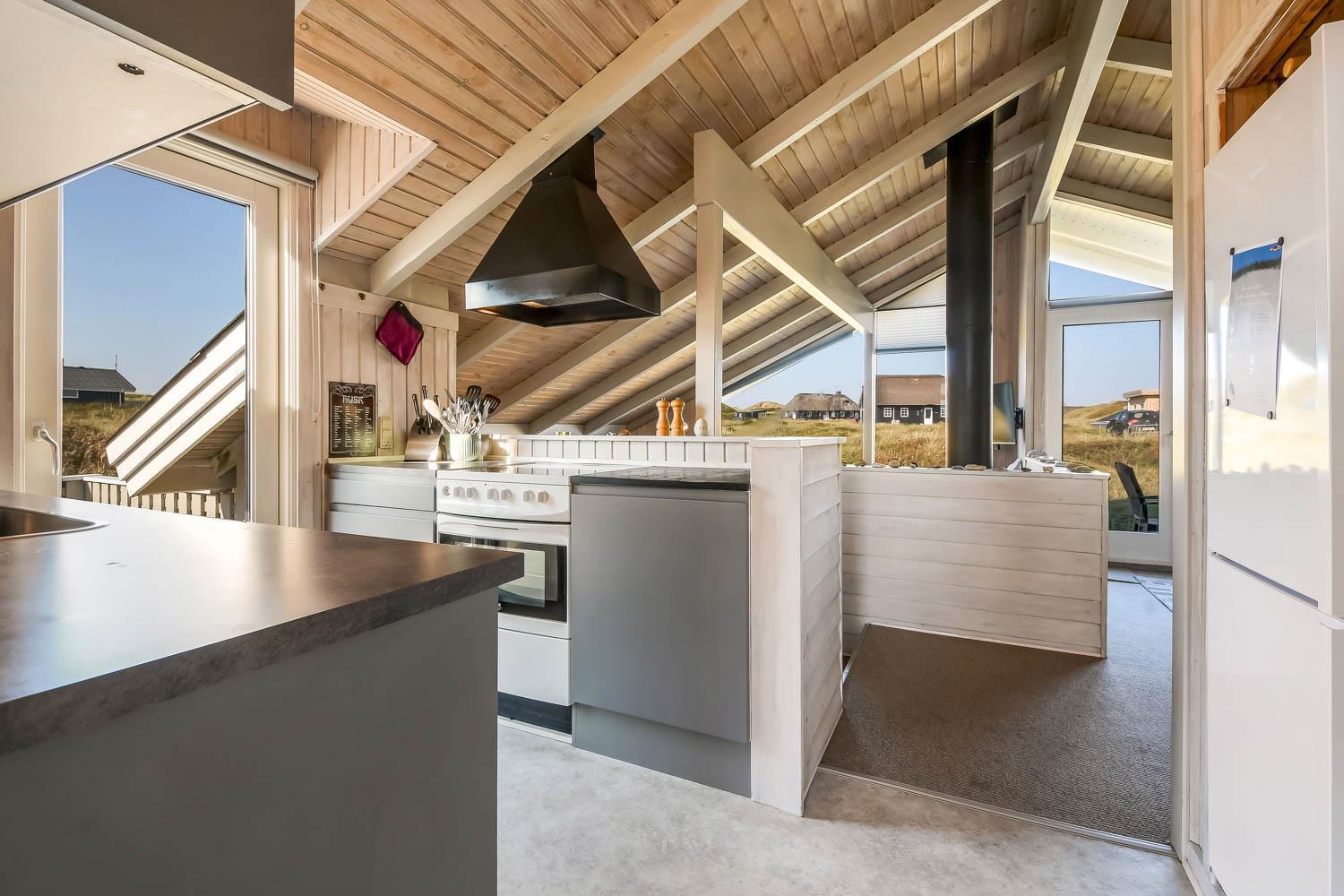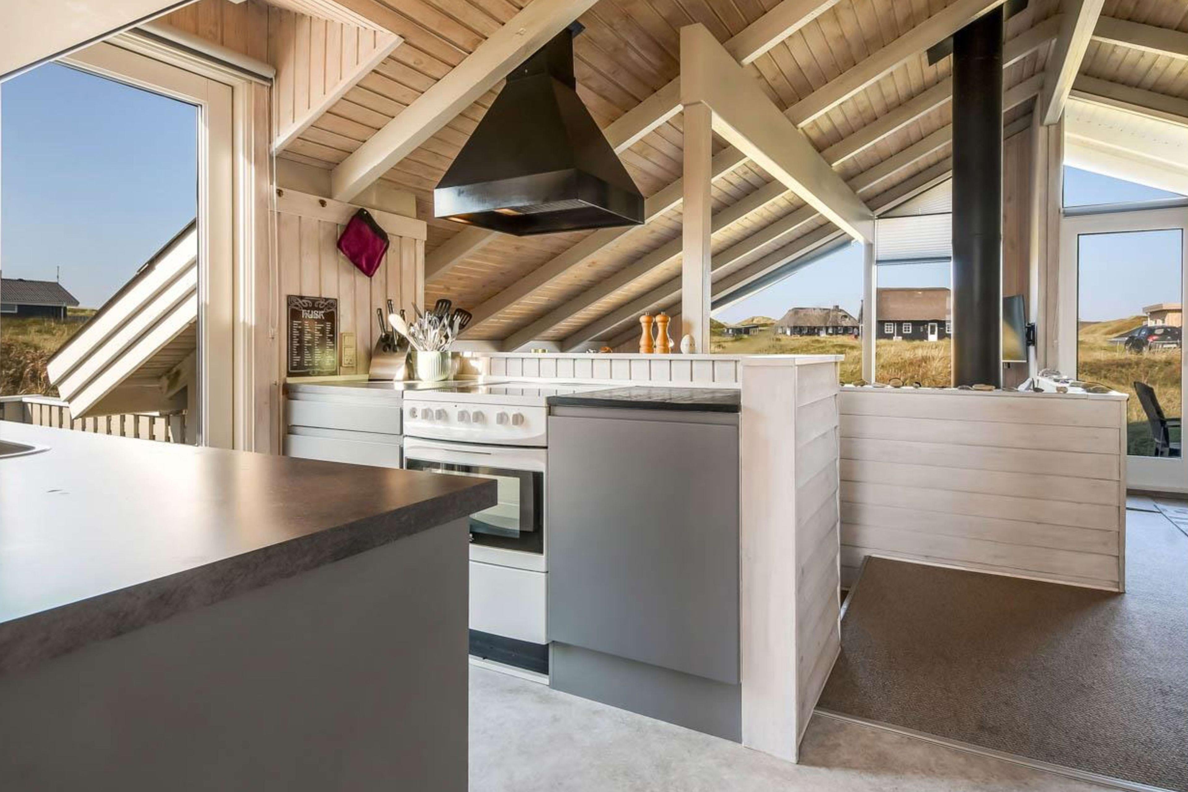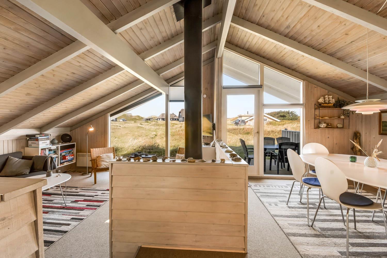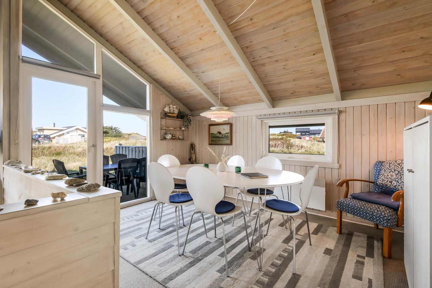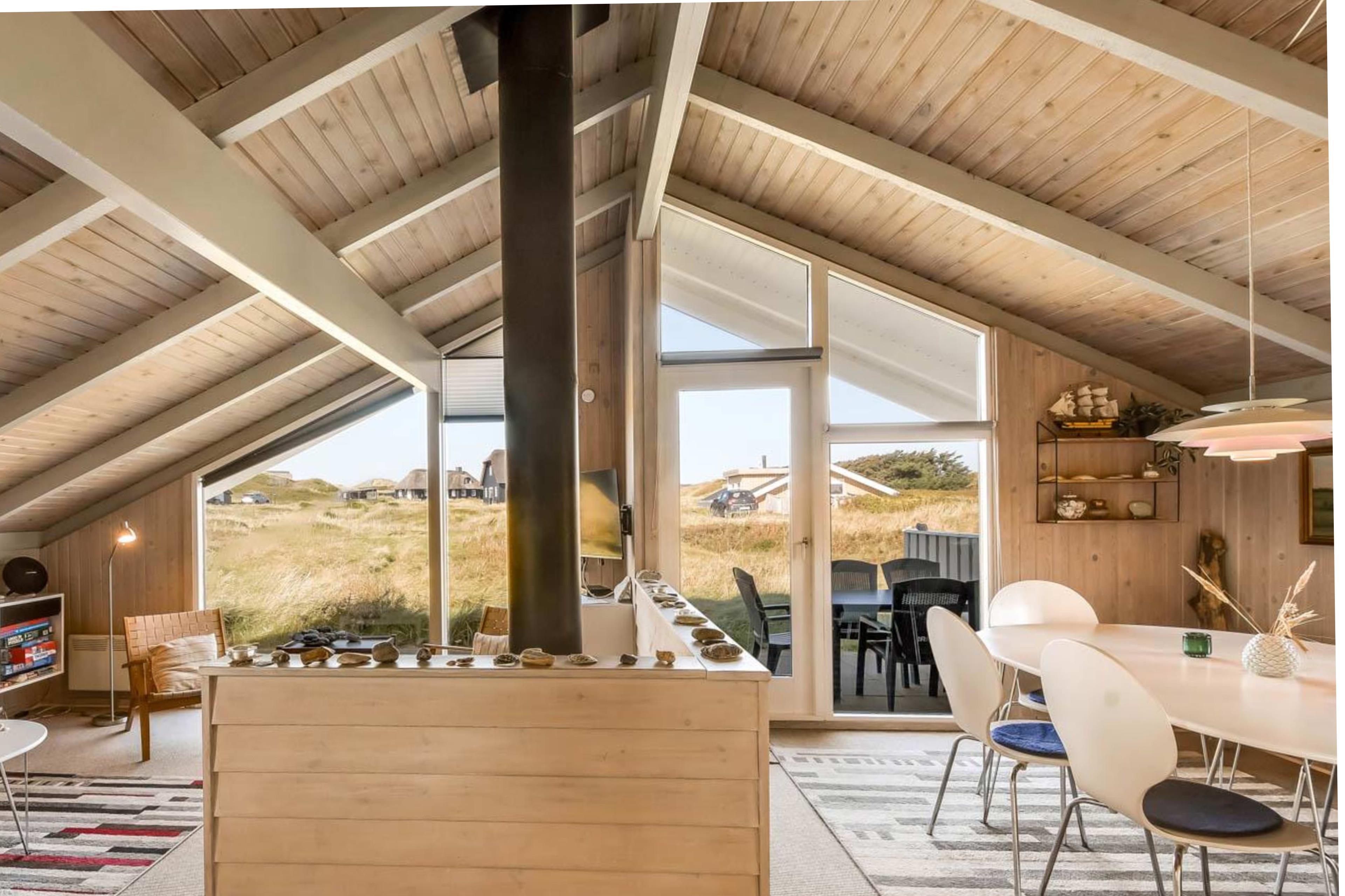 Træ feriehus med klitudsigt. Beliggende kun 190 m fra Vesterhavet. Gå gennem det flotte klitområde ned til den dejlige sandstrand. Gratis internetadgang.