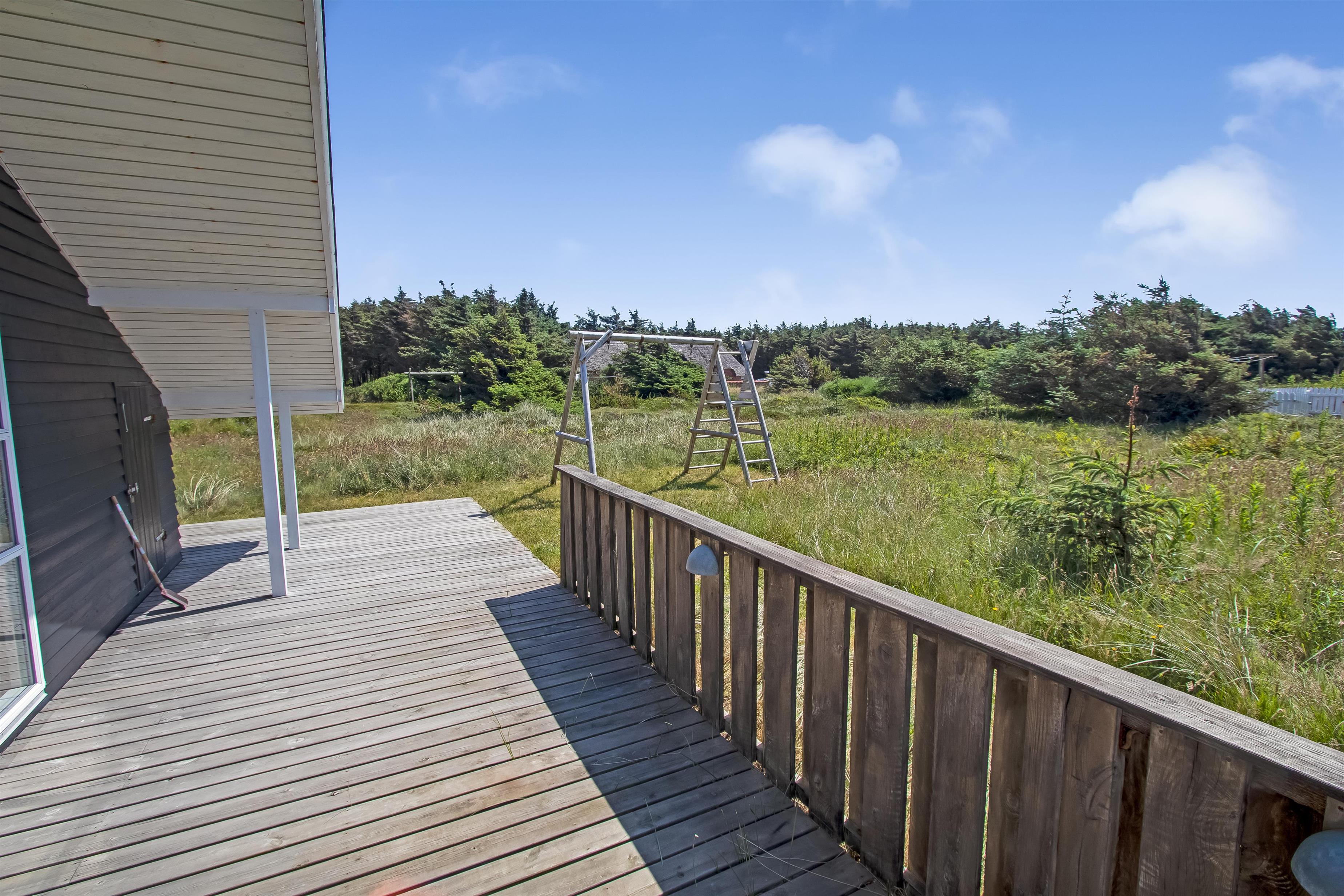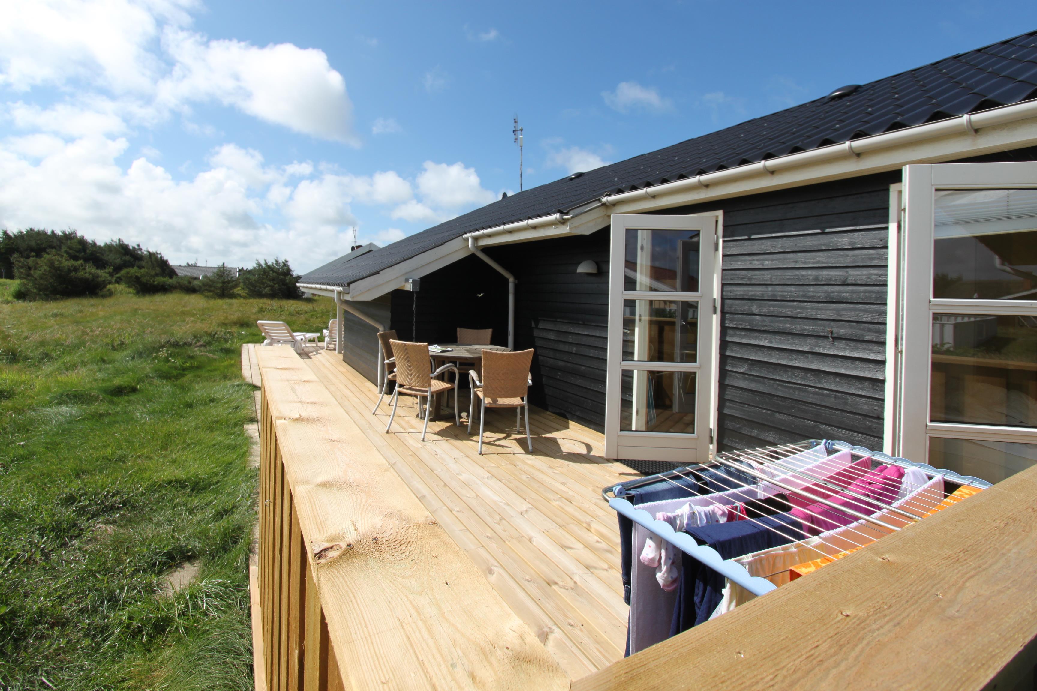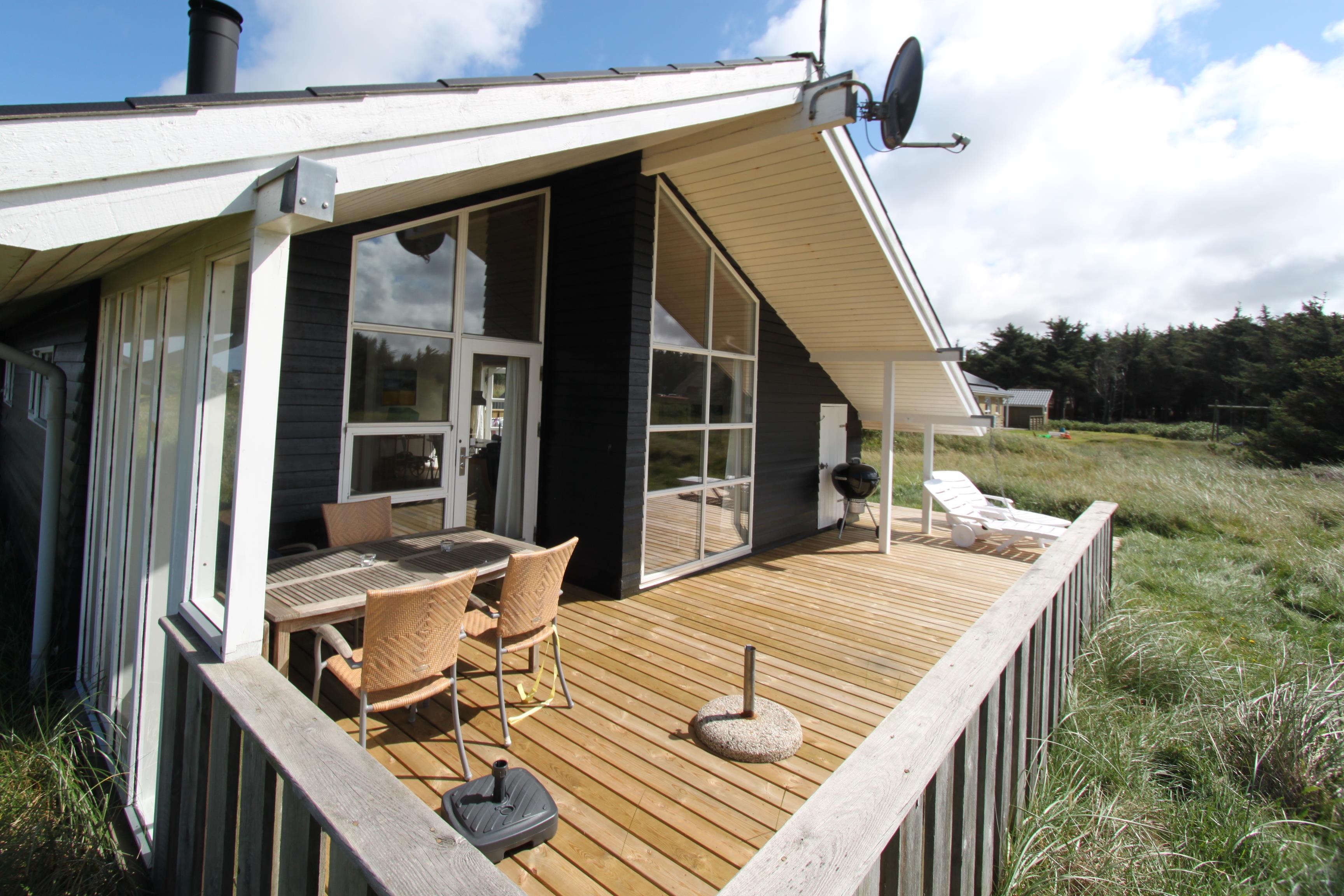 Huset er beliggende på en 1300 m2 naturgrund blot 150 m fra Vesterhavet. Dejlig delvis overdækket terrasse med havemøbler, solvogne, parasol og grill, her er der altid mulighed for at finde et læsted eller en plads i solen. Ca 20 min kørsel fra huset findes der flere gode butikker, restauranter og attraktioner, besøg enten havnebyen Thyborøn eller handelsbyen Lemvig som begge har deres egen charme. Gå eller løb en tur langs vesterhavet og nyd den friske luft eller en badetur i sommerperioden. Stranden indbyder til mange forskellige aktiviteter man kan bygge et sandslot, flyve med drager, bade, fiske ja mulighederne er uendelige. Dette feriehus er et rigtig godt valg hvad angår beliggenhed, hus og pris.
