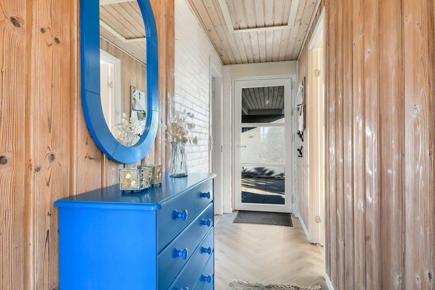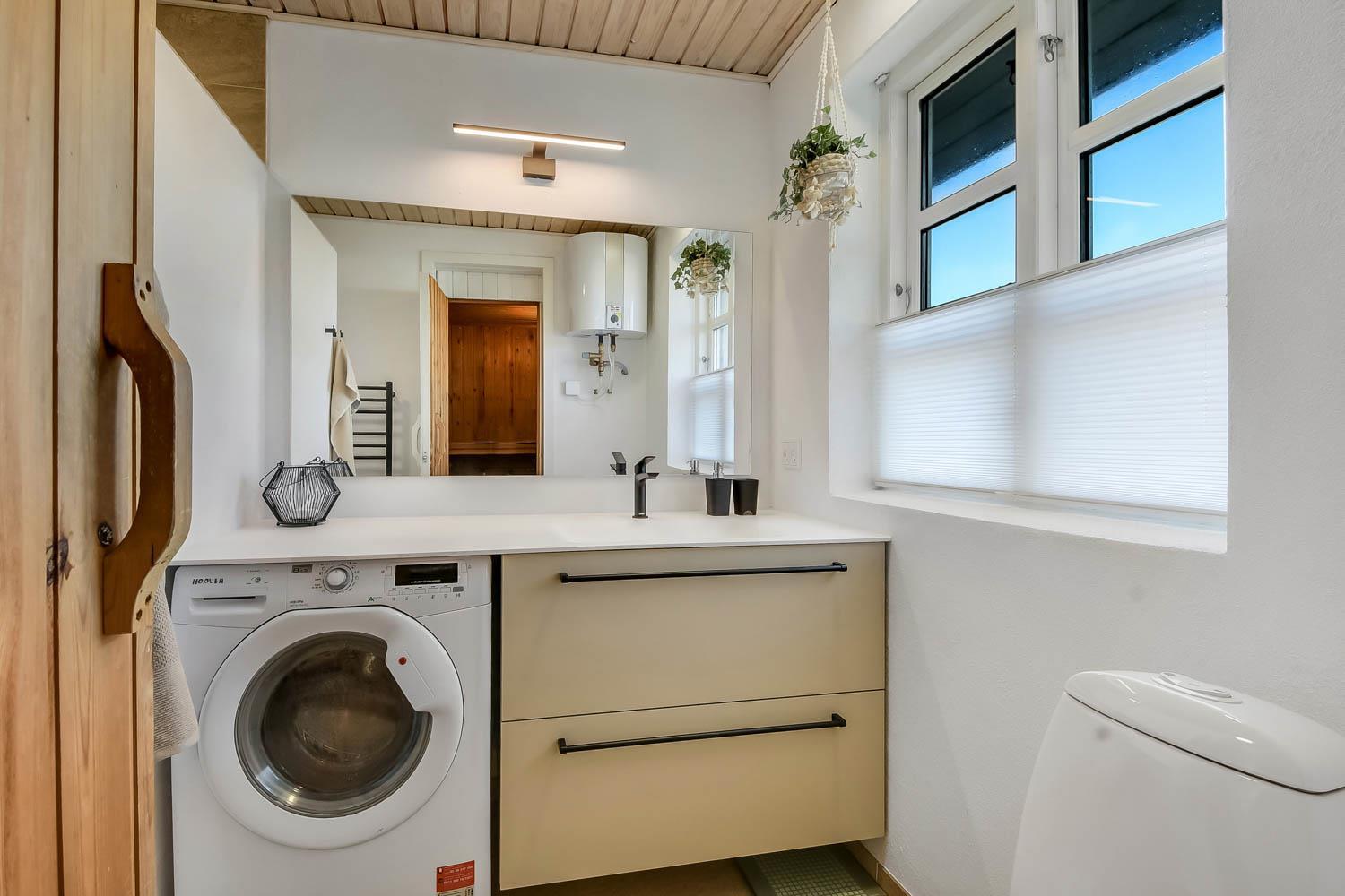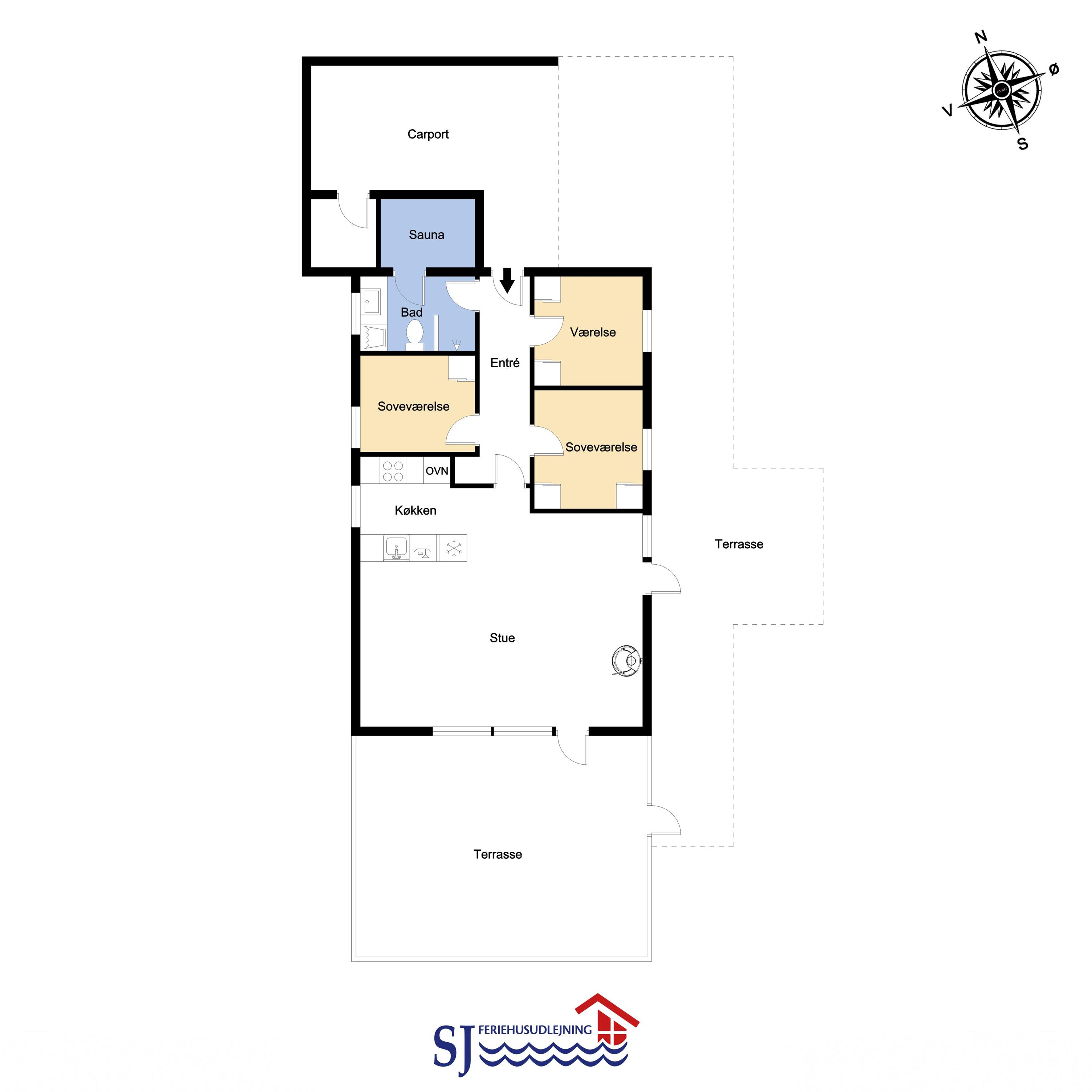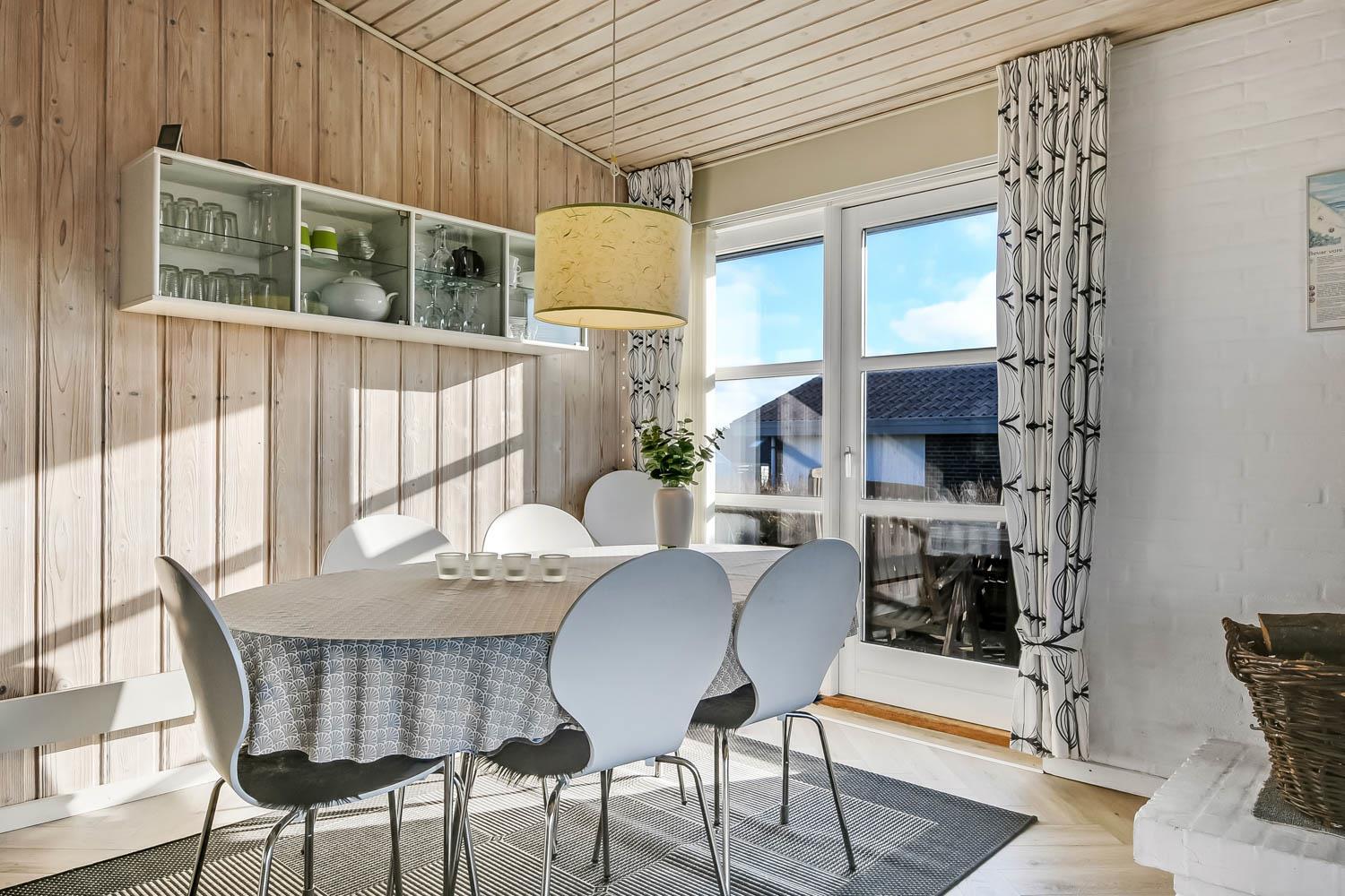 Pænt indrettet feriehus med kombineret opholdsstue og køkken. Stuen er indrettet med lædermøbler, Smart-TV med danske og tyske programmer og en skøn brændeovn, som sammen med varmepumpen sørger for en behagelig varme og begge er medvirkende til en lavere forbrugsafregning. Tæt på køkkenet er spisebordet placere. Åben køkken med glaskeramisk komfur, køle-/fryseskab, emhætte, opvaskemaskine og mikroovn. Stue og køkken er med nyt sildebenspaketgulv. 3 soverum: 1DS + 1DS + 2S og alle soverum er med nyt sildebenspaketgulv. Nyrenoveret badeværelse med toilet, håndvask, bruser samt adgang til sauna og med gulvvarme. Til de mindste gæster er der 1 barneseng og 1 barnestol. Ikke rygerhus. 1 husdyr er tilladt.