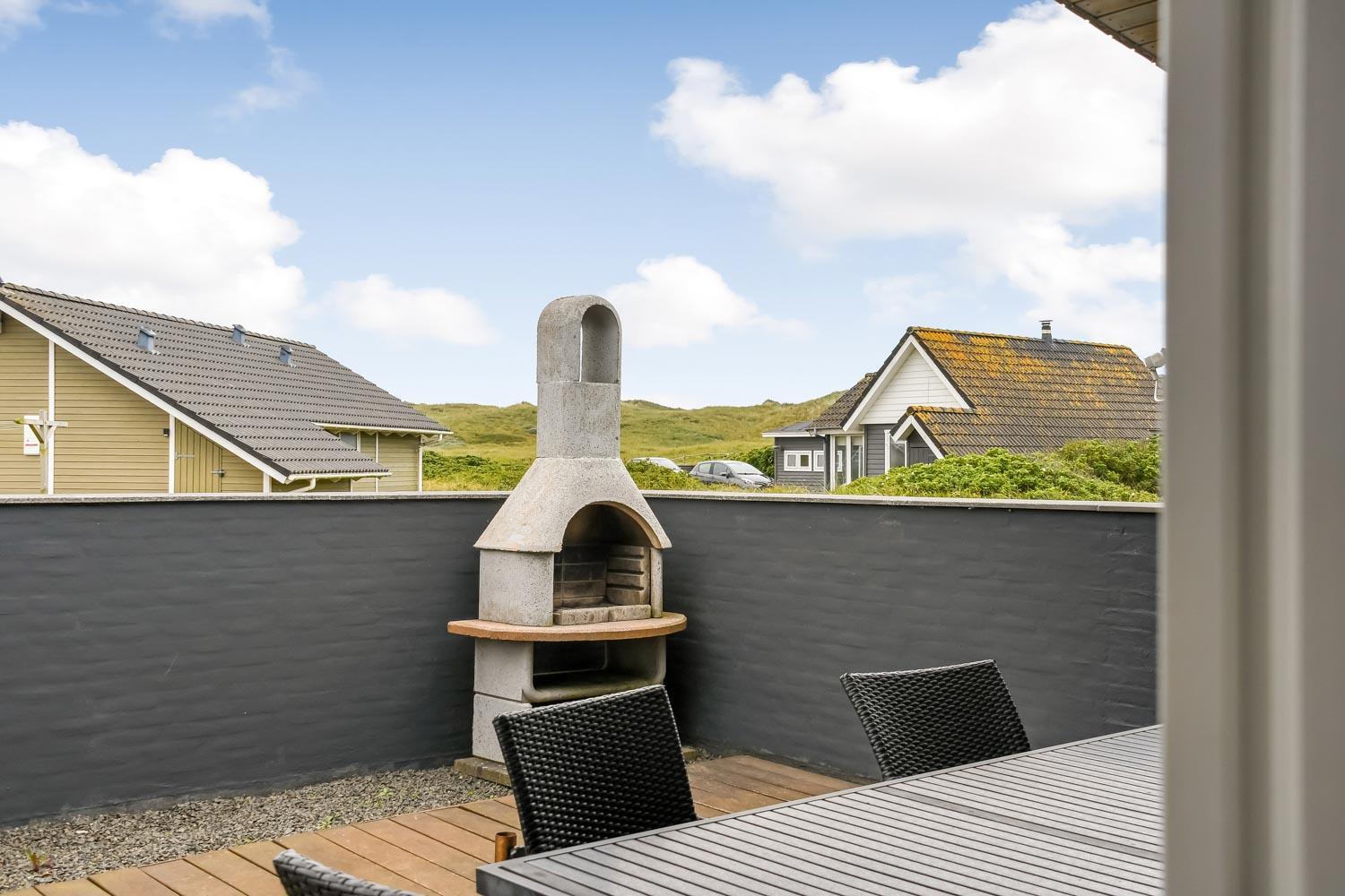 Huset er beliggende på en 703 m2 naturgrund. Fra stuen er der udgang til en dejlig indhegnet terrasse med havemøbler, solvogne og grill. Fra terrassen er der udsigt til Ferring Sø. Huset er beliggende ca 300 m fra Vesterhavet og ca. 300 m til Ferring Sø. Området er perfekt til gåture hvad enten man vil mærke naturens rå kræfter på en efterårsdag eller nyde en spadseretur en varm sommerdag. Man kan gå en tur rundt om Ferring Sø på en markeret vandrerute på 10 km eller tage de fleste gæsters favoritter hvor man går på stranden helt til Bovbjerg Fyr og tilbage igen langs Ferring Sø. Tager man bilen er der 18 km til den populære havneby Thyborøn med flere attraktioner som Jyllandsakvariet, Seawar-museum og den tilhørende mindepark eller nyd blot havnestemningen. Der er 13 km til den flot beliggende by Lemvig med masser af historie, butikker og ligeledes et fint havnemiljø.