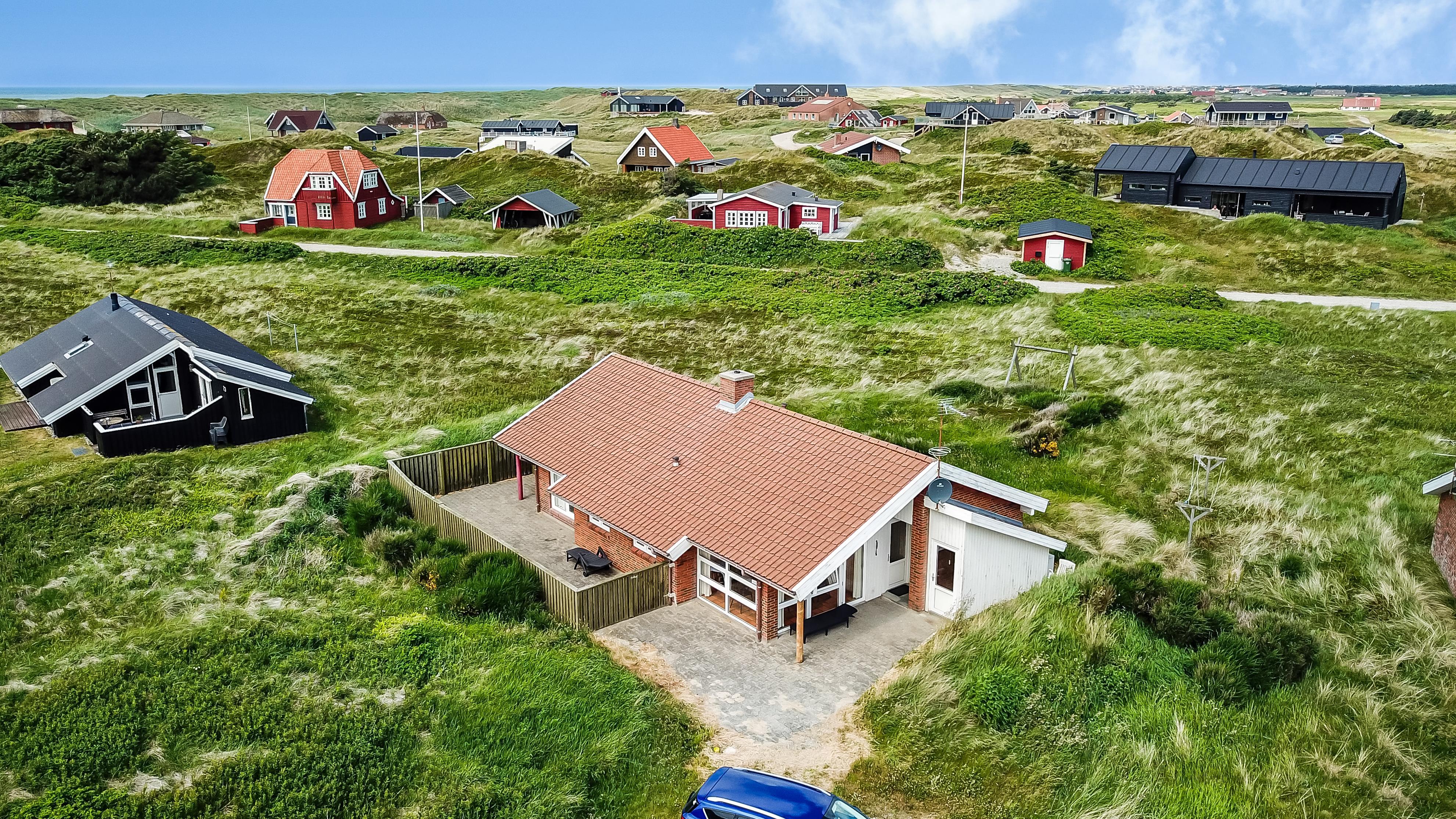 Godt beliggende sommerhus på en klitgrund kun 150 meter fra Vesterhavet. Her er gratis internetadgang, plads til 8 personer og en hund tilladt.