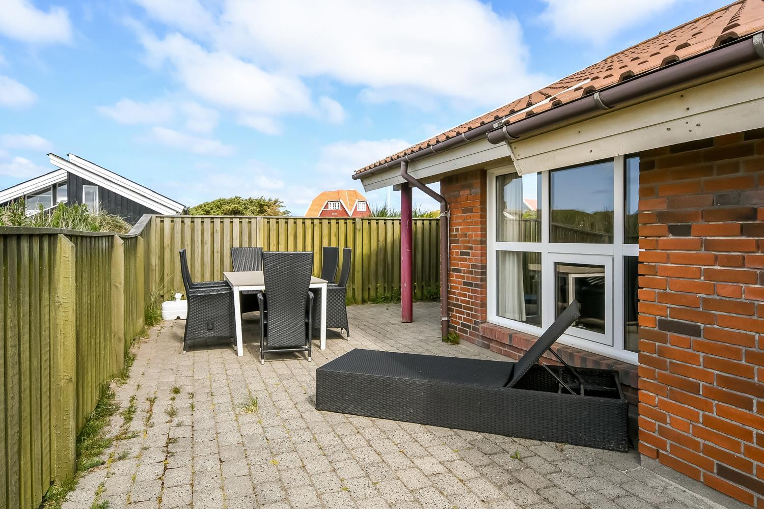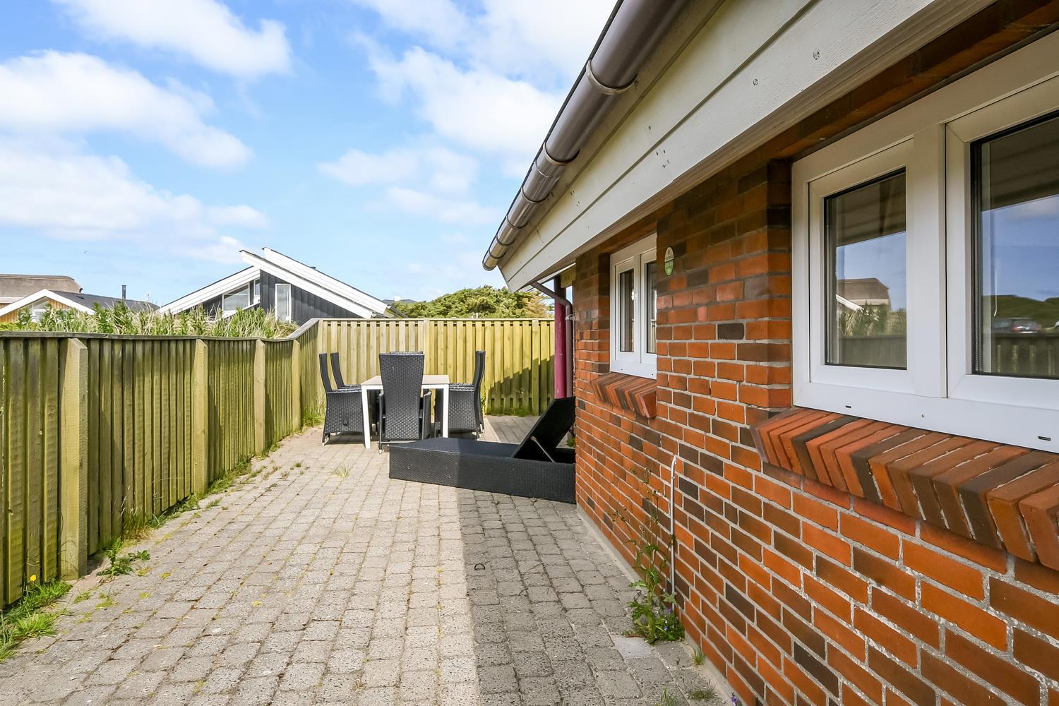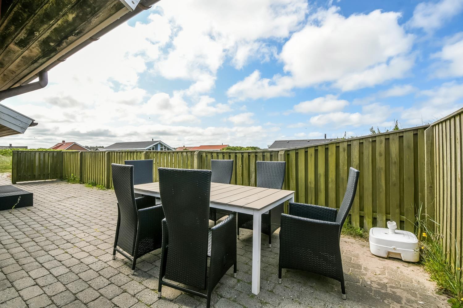 Husets terrasse vender mod syd og vest og udmærker sig ved at have havemøbler og grill. Her kan man sagtens nyde nogle gode eftermiddage og aftener med udsigt til klitlandskabet. På grunden er der ligeledes gynge. Den nære beliggenhed til Vesterhavet gør det let at komme dertil på fods. Her kan man bade, lystfiske, flyve med drage, gå lange ture eller blot sætte sig med sin te og nyde solnedgangen og stilheden. Der er flere muligheder for at lave nogle gode familieudflugter. Således ligger havnebyen Thyborøn med blandt andet Kystcenteret og Jyllandsakvariet samt Seawar Museum kun 18 kilometer væk. Her findes også een af Vestkystens bedste badestrande, som man lige kan prøve af, hvis man alligevel vælger at bruge en dag i byen. Mod syd er der 11 kilometer til Bovbjerg Fyr som tårner sig op fra Bovbjerg Klint i op over 70 meters højde. Man kan faktisk komme op i tårnet og blive bespist på fyret. Her er en speciel stemning, som kan anbefales at opleve.