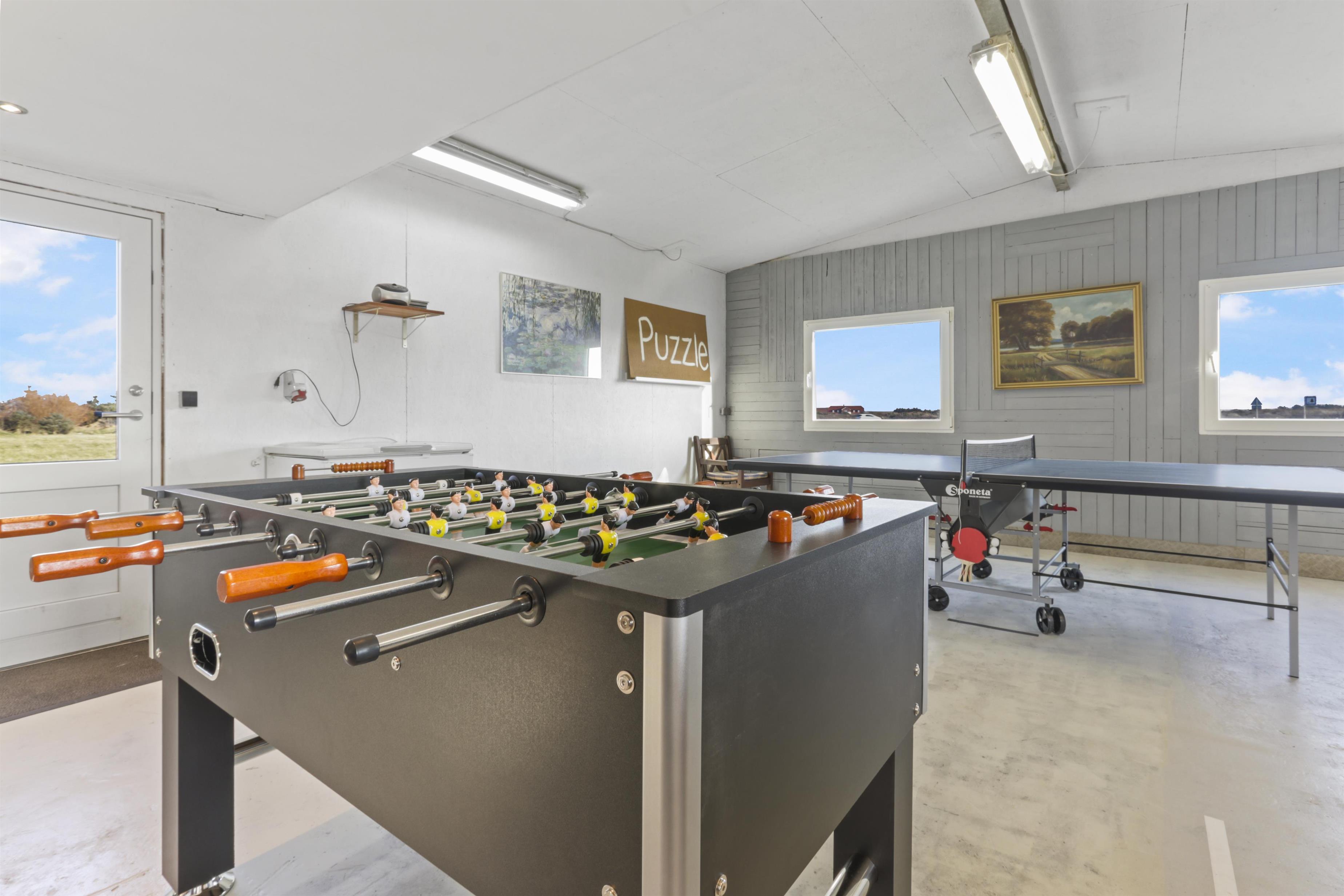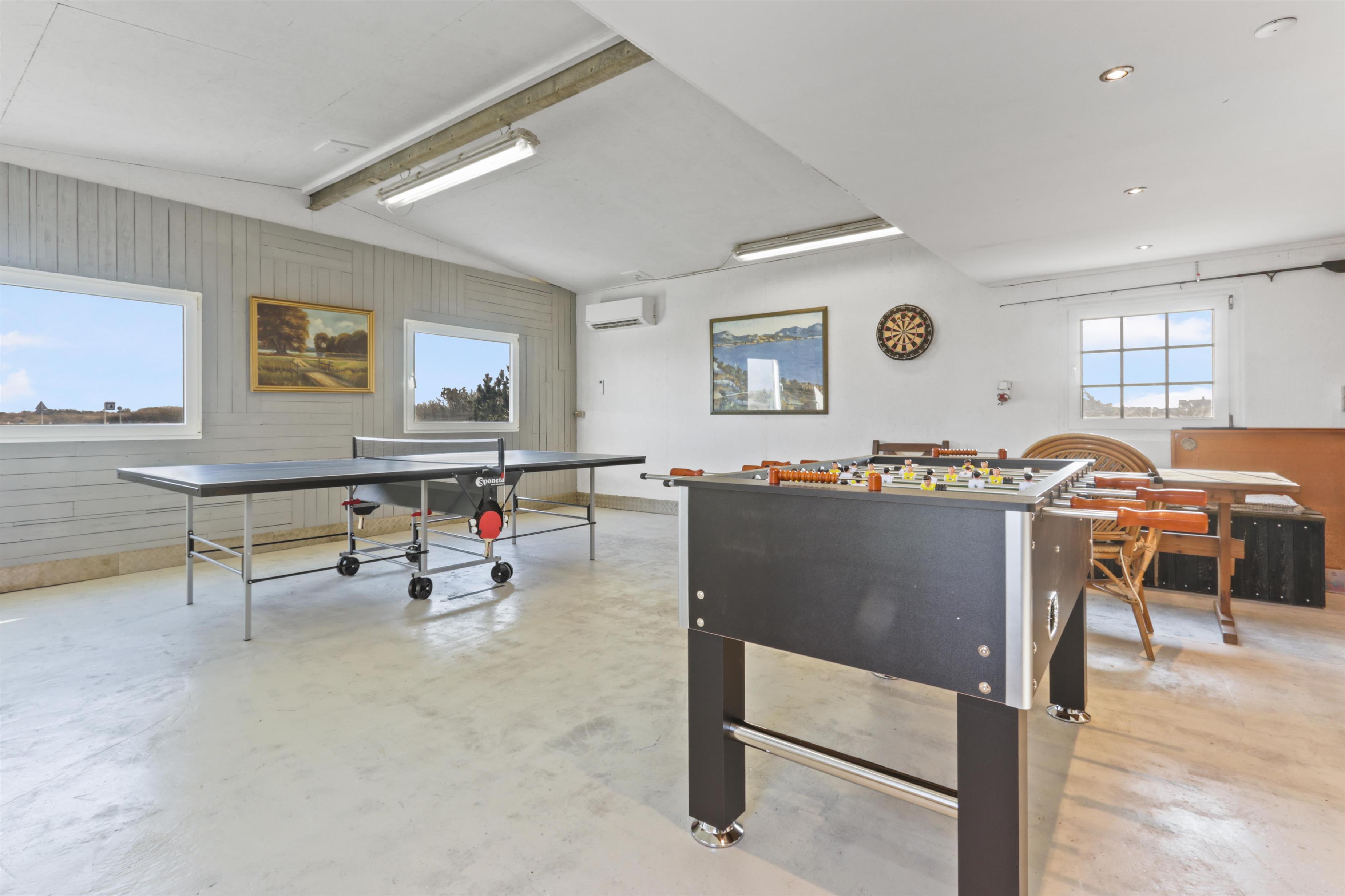 Aktivitetsrummet er ideelt til sjove og udfordrende familiedyster – med både bordtennis og bordfodbold. Her er der også en varmepumpe, der sikrer en behagelig temperatur året rundt.