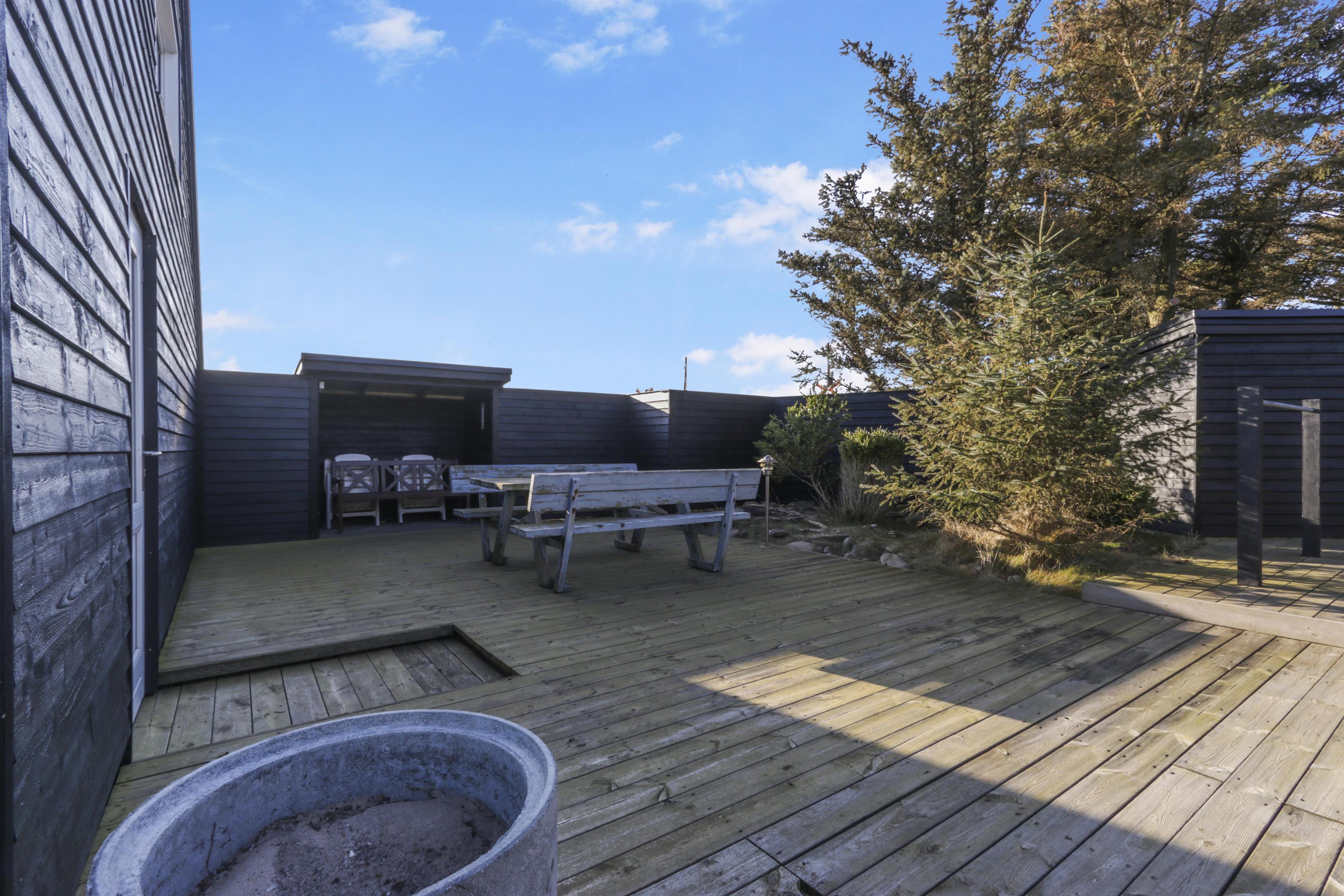 Den 2163 m² store grund er en skøn blanding af natur og plads til leg. Her er der masser af muligheder for at spille fodbold, eller måske samles omkring bålpladsen og bage snobrød. Den private terrasse er en oase af ro, hvor du kan finde læ og nyde ferien i fred og fordybelse.
