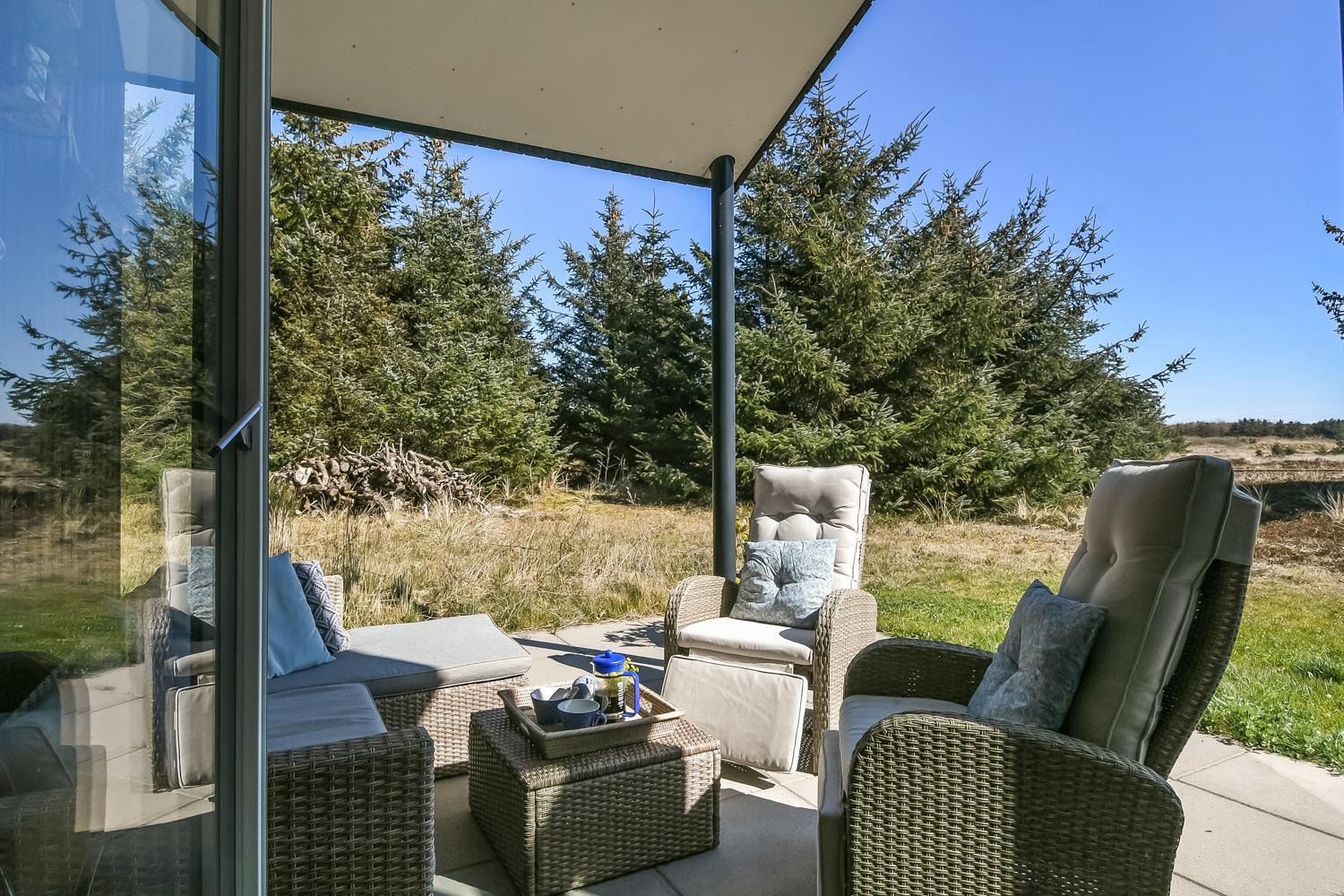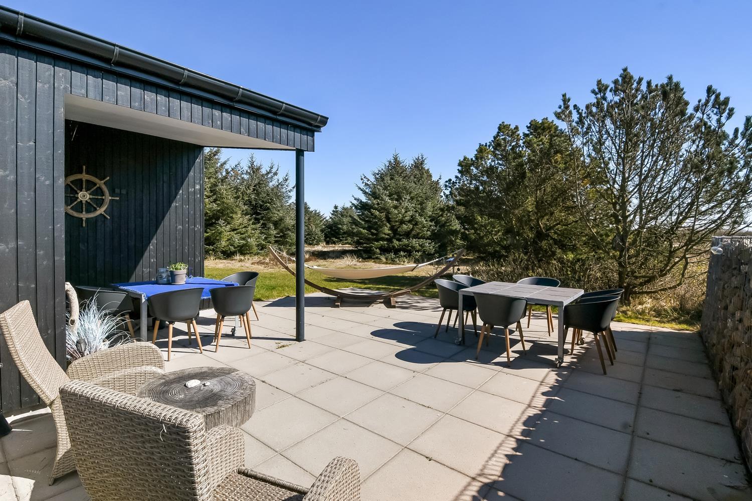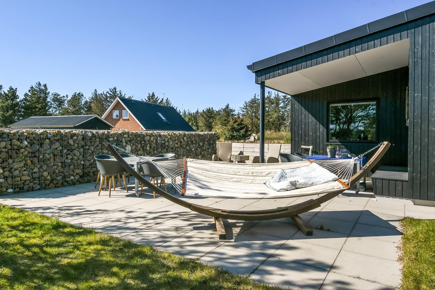 Stil dig selv spørgsmålet – Kan jeg lide den Vestjyske natur? Hvis du kan svarer ja til dette, så er du havnet det helt rigtige sted, når du holder ferie på Vejlby Klit 5. Feriehuset er beliggende på en ca. 1988m2 stor naturgrund med masser af beplantning og læ muligheder. Der er masser af havemøbler, loungemøbler samt grill.