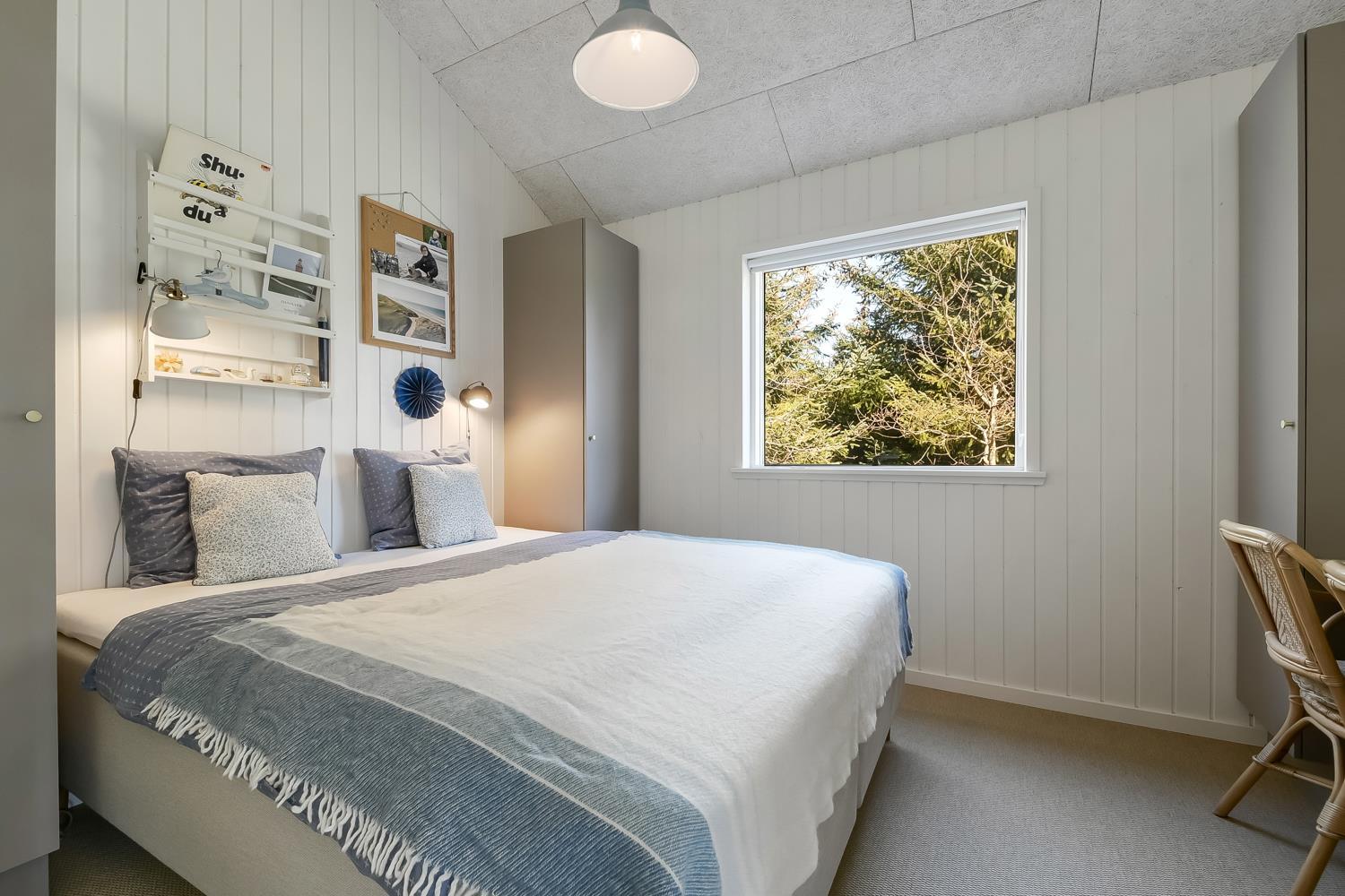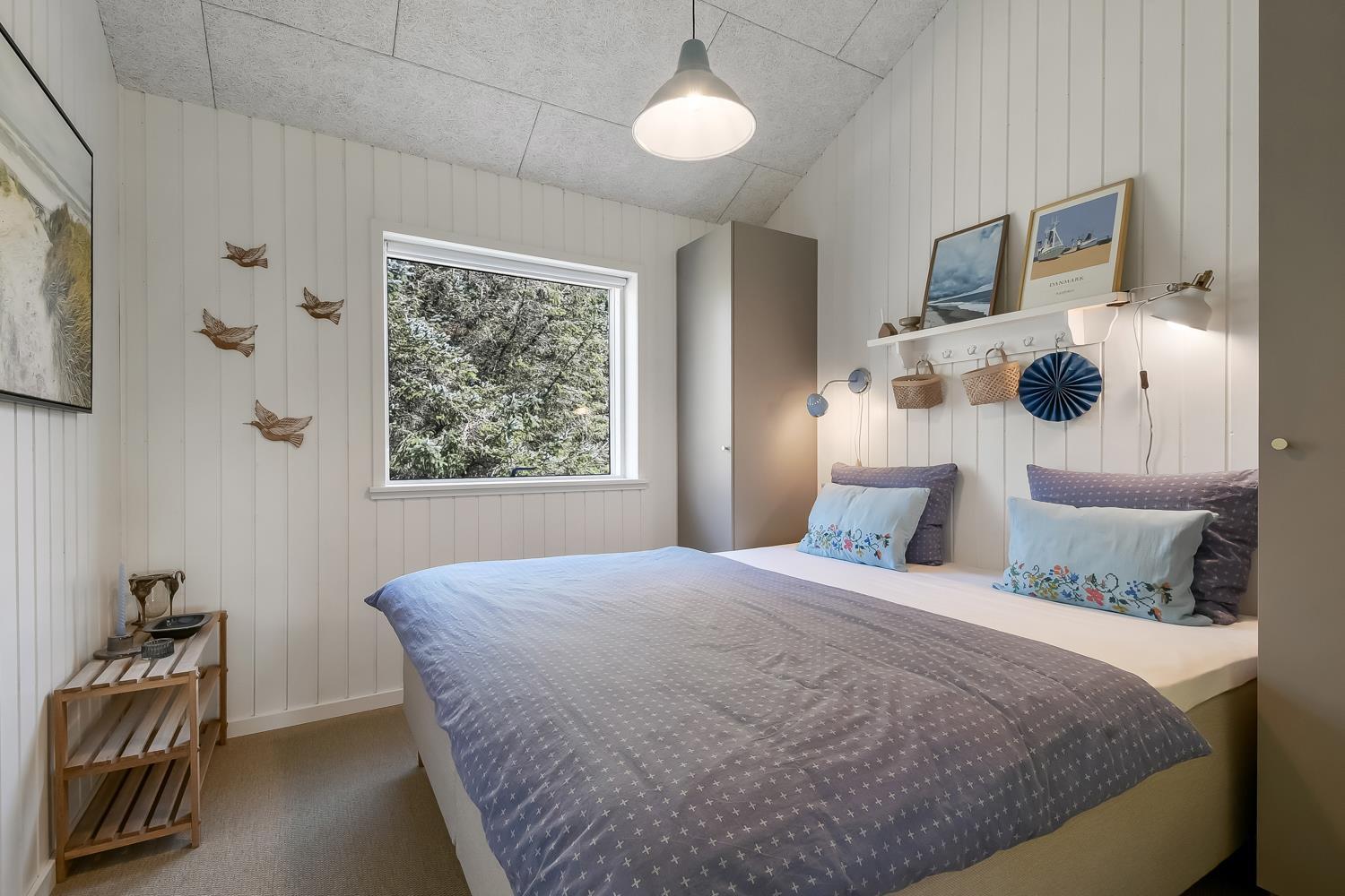 Huset er indrettet med et badeværelse med toilet, håndvask, brusenische og direkte adgang til saunaen som efter en tur i den udendørs bruser giver en fantastisk følelse af velvære. Feriehuset har 3 gode soverum: 1DS + 1 DS + 1DS. Der må ikke komme husdyr i soverummene. En pragtfuld brændeovn som samme med en luft til luft varmepumpen er med til at optimere dine forbrugsudgifter. Der er tænkt på alt, og ejer af huset passer og plejer huset, så det altid præsenteres fra den bedste side. 2 husdyr tilladt. Dette er et ikke ryger hus.