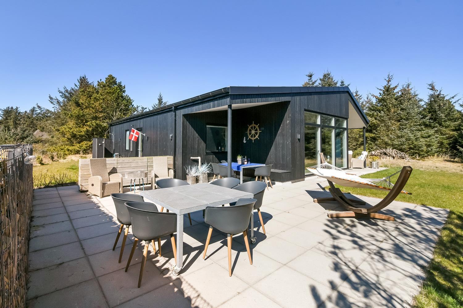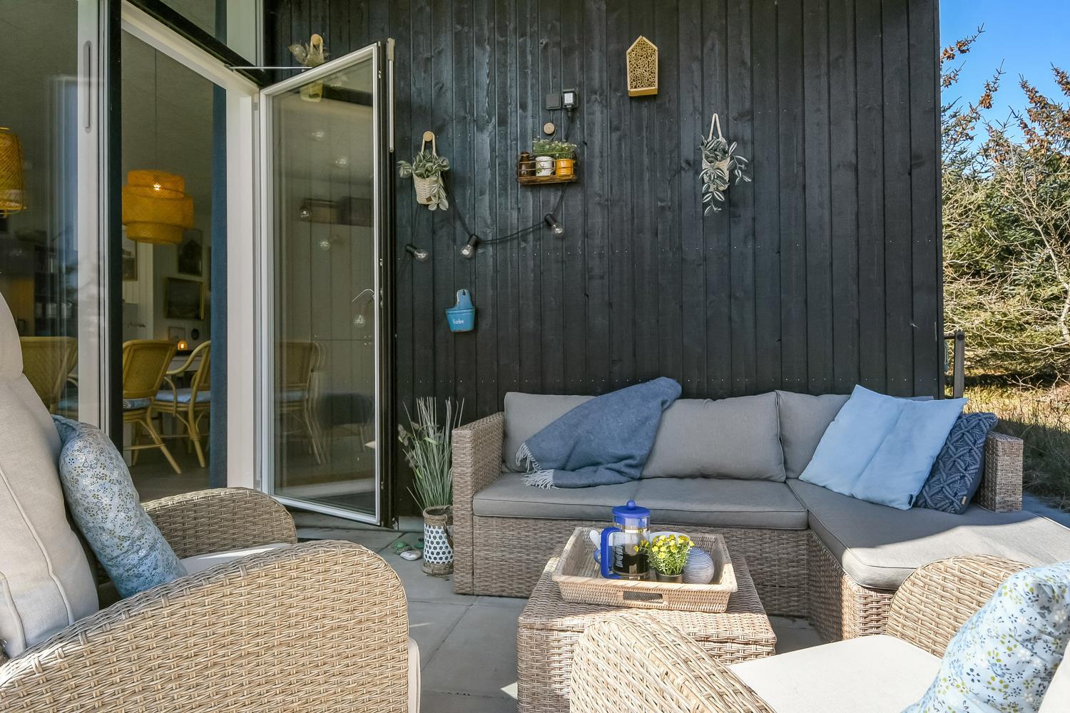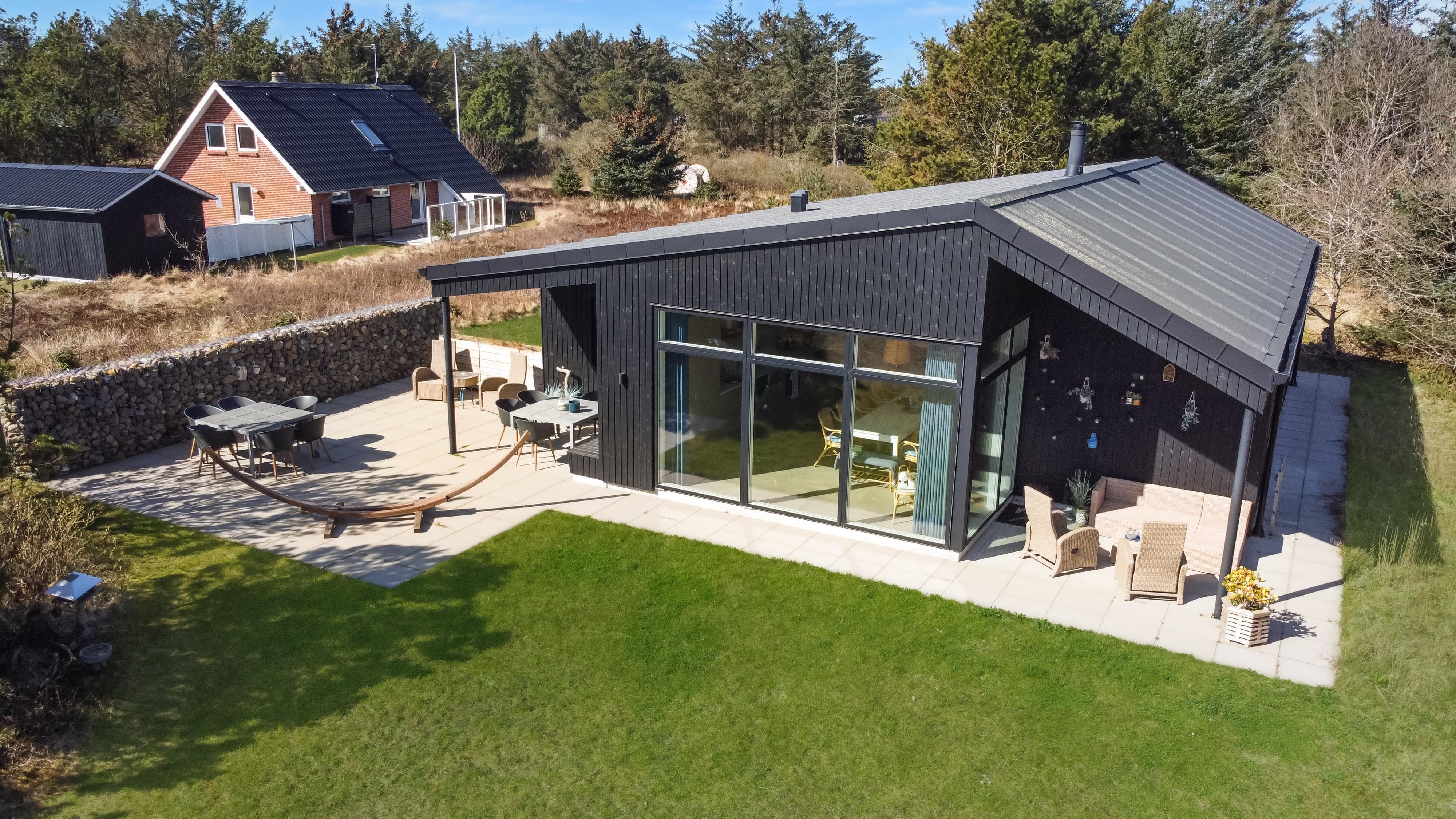 Velbeliggende feriehus med kort afstand til det brusende Vesterhav. Nyere (2022) feriehus hvor der er tænkt på alt. Detaljerne ved dette feriehus er ikke til at overse, og det hele går op i en helhed, der danner rammerne om den perfekte ferie. Her er alt, hvad man har brug for. Store terrasser skaber et fantastisk udeområde med loungeområde, der virkelig er betagende og unik.