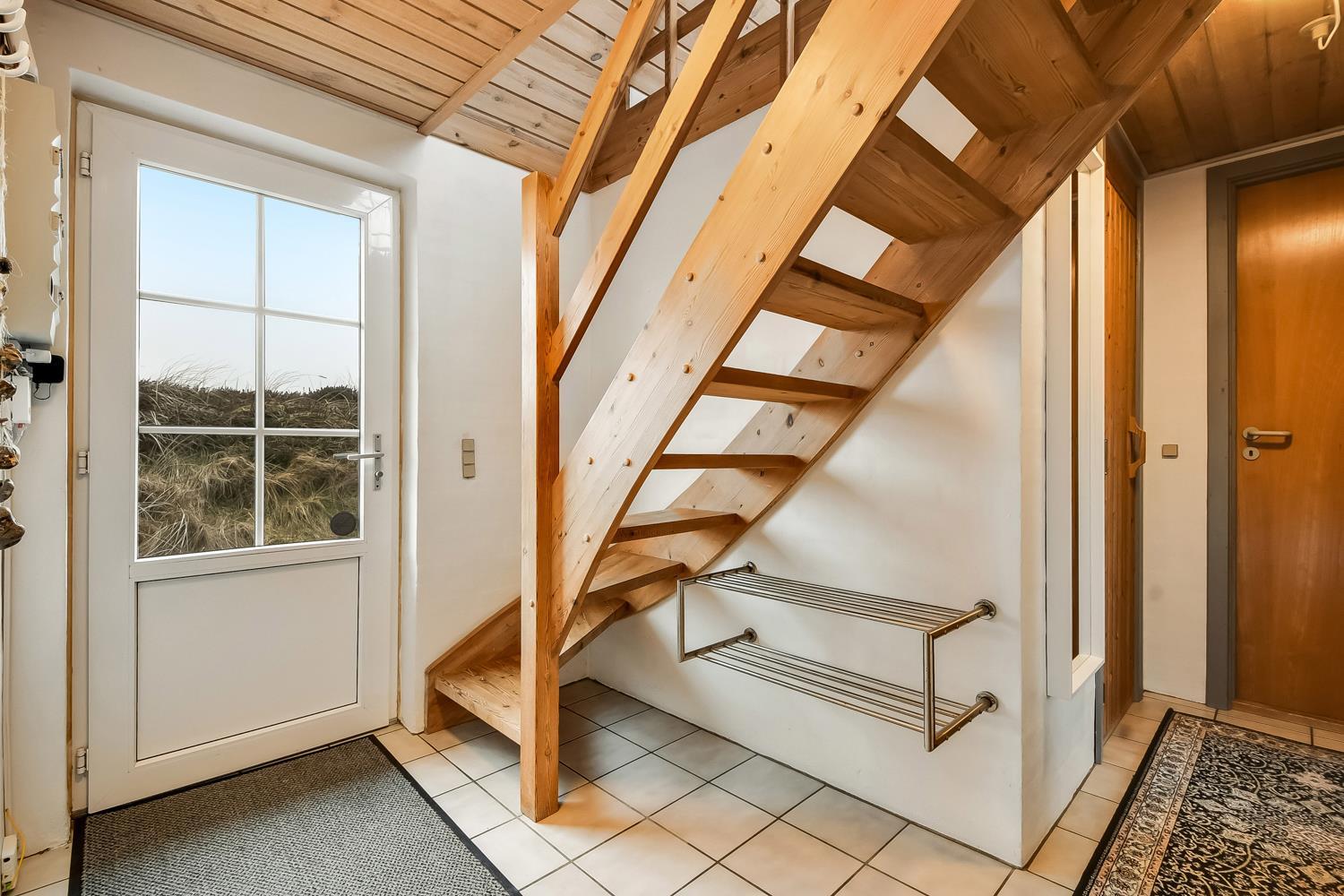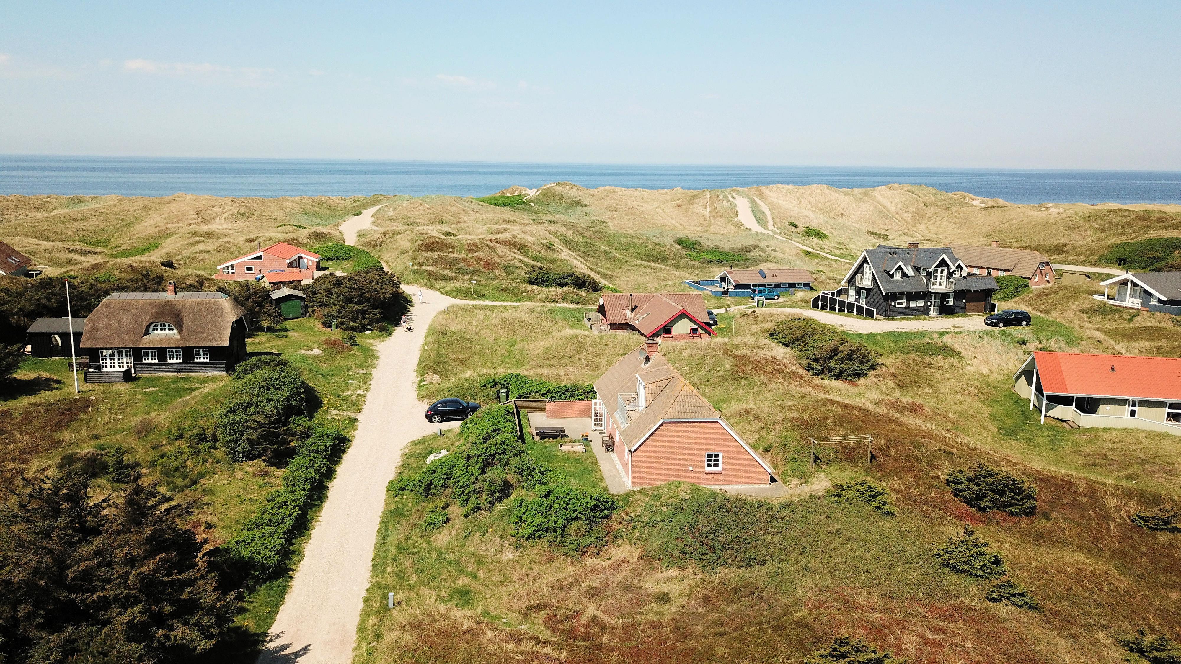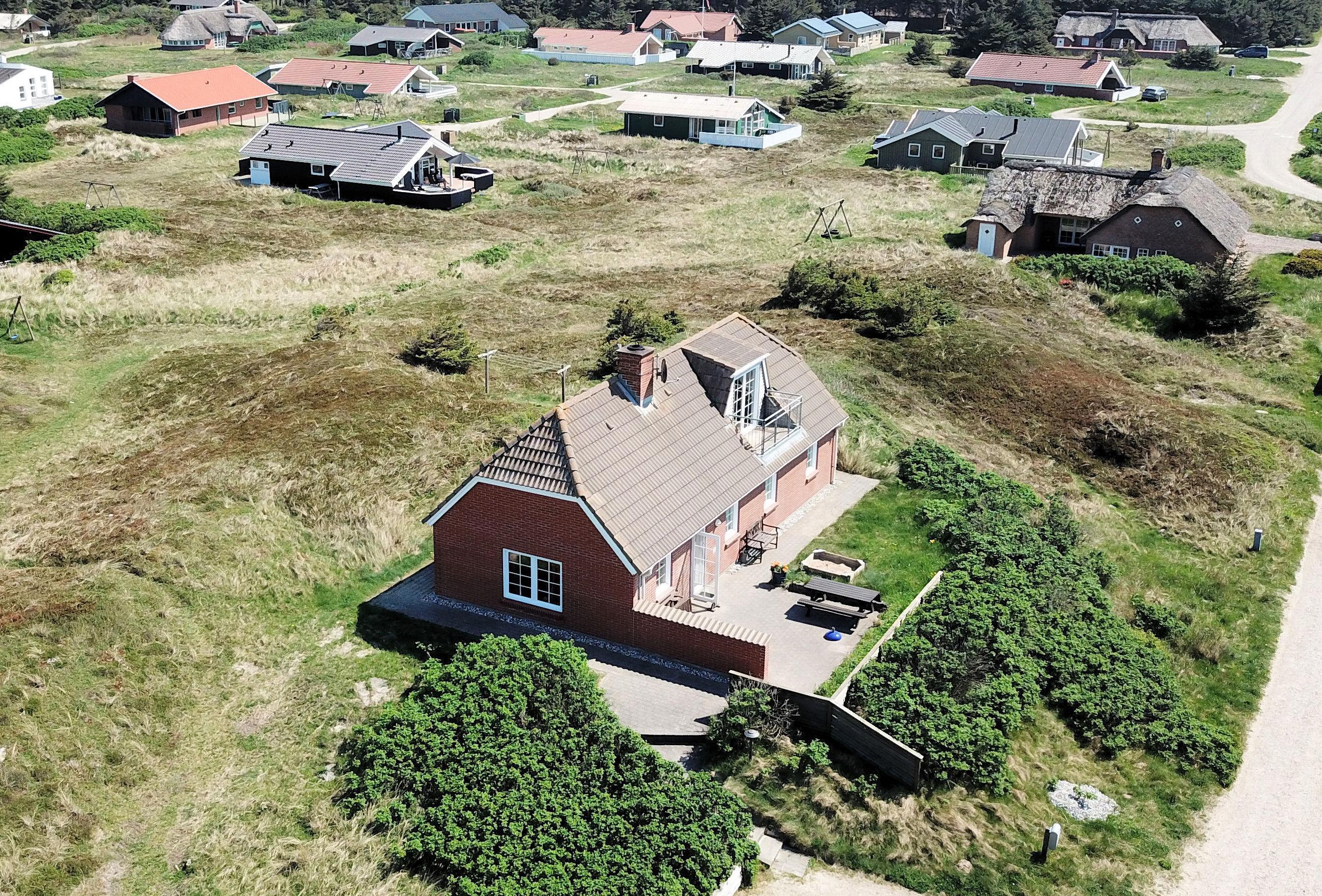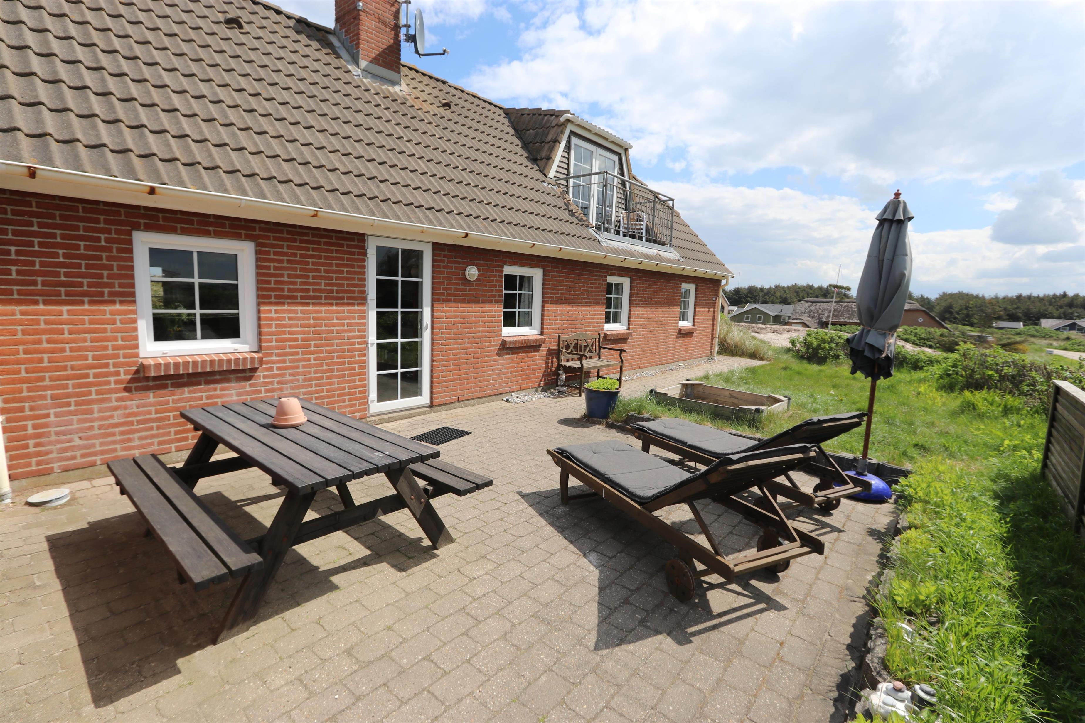 Huset er beliggende på en høj og ugenert naturgrund ved den yderste klitrække og blot 150 m til det dejlige Vesterhav. Huset har en dejlig sydvendt terrasse med læ mur mod vest og en hyggelig østvendt gryde terrasse gravet ind i klitten, herfra kan man nyde solen fra tidlig morgen. Havemøbler og liggestole er en selvfølgelighed. På 1. sal er der en balkon, hvorfra man har udsigt over det bølgende klitlandskab, feriehusområdet og retning mod Vesterhavet. Husets beliggenhed tæt på Vesterhavet byder på mange muligheder, I kan f.eks. vandre, løbe eller cykle en tur i området, eller besøge den dejlige sandstrand ved Vesterhavet, som indbyder til mange forskellige aktiviteter såsom lystfiskeri, badning, bygge sandslotte, finde rav eller flyve med drager. Alt i alt et særdeles attraktivt feriehus – uanset årstiden.