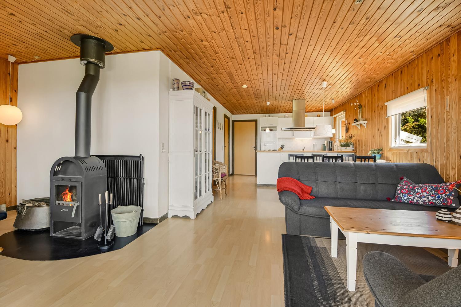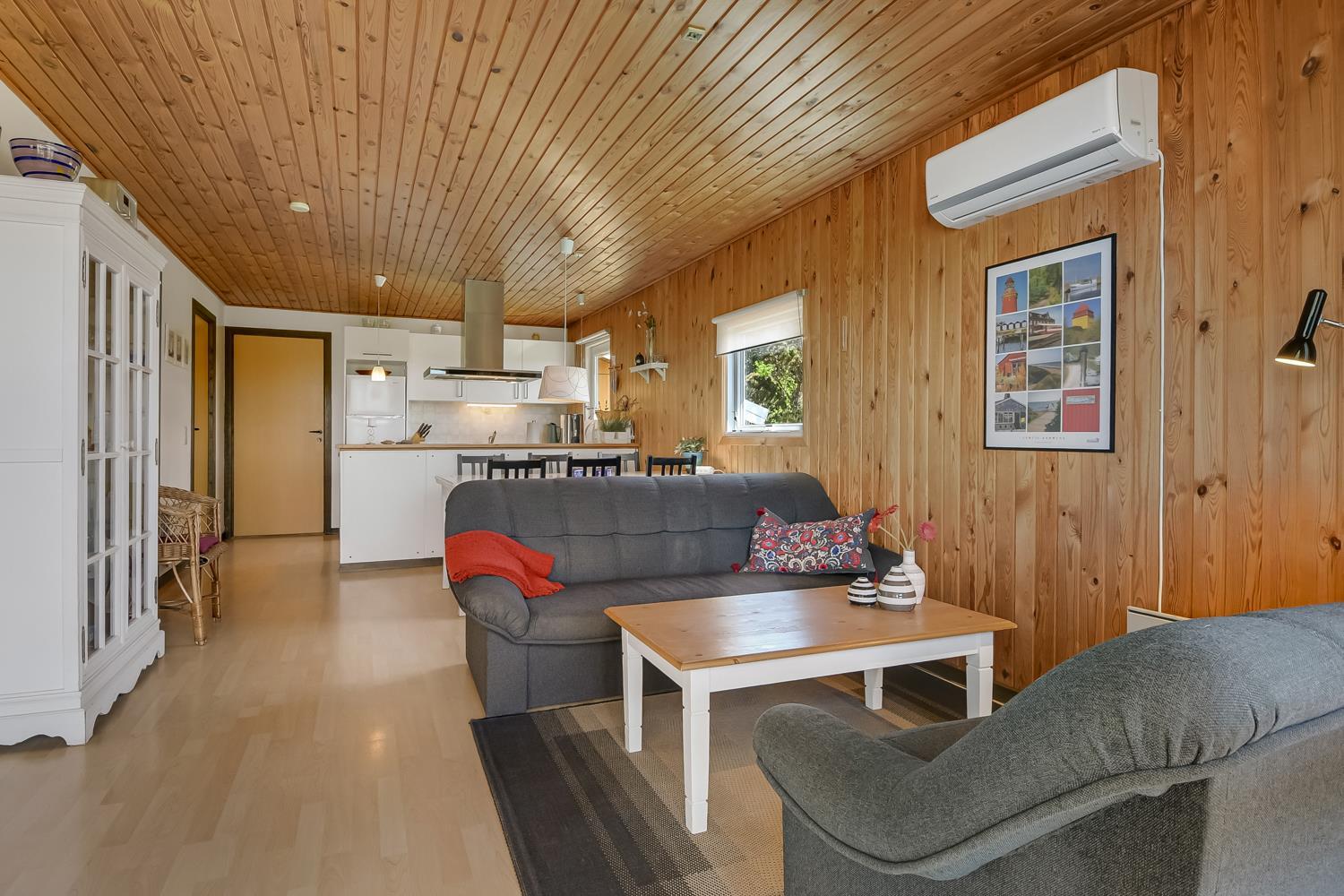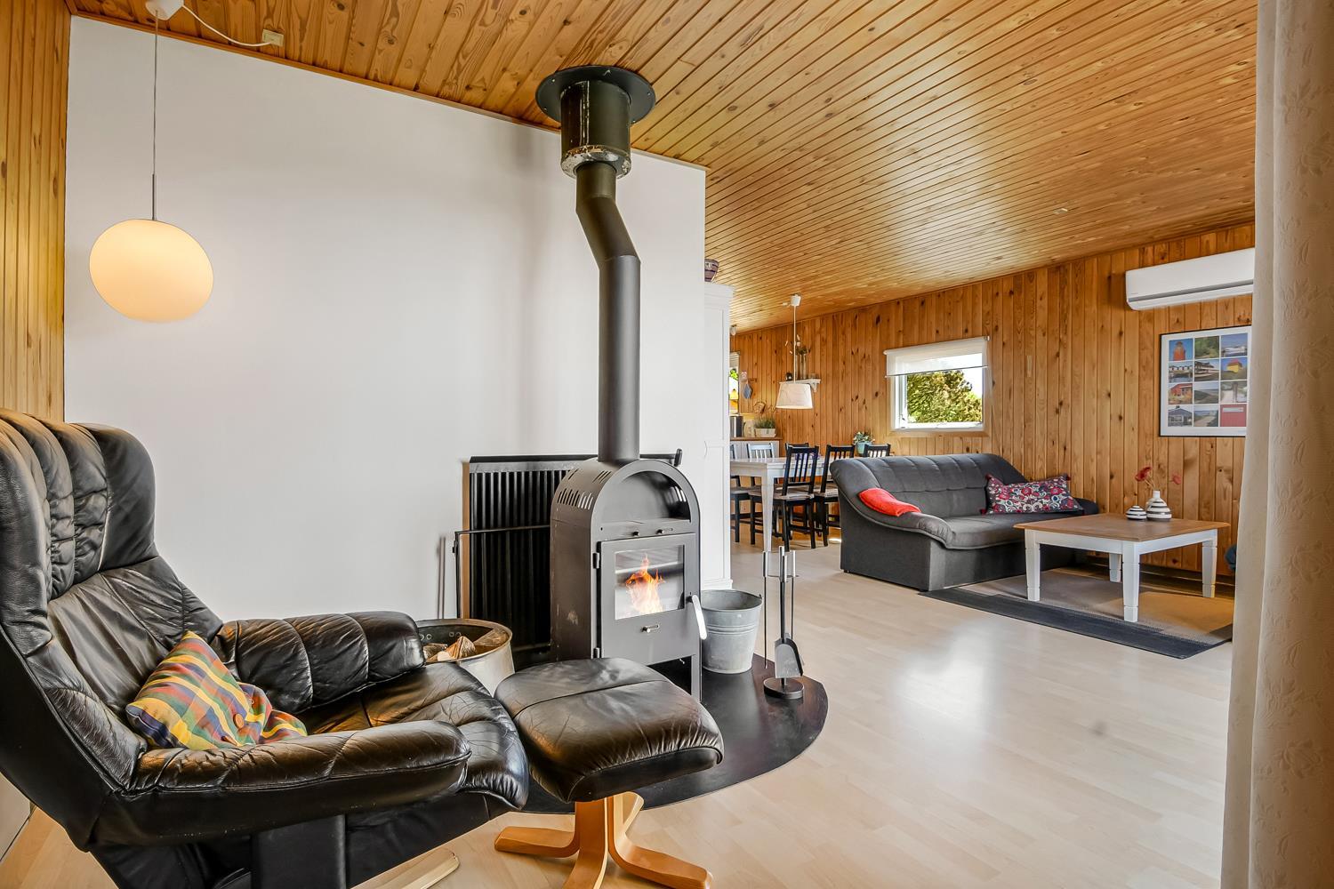 Dette charmerende feriehus er perfekt til familien eller gruppen, der ønsker en central beliggenhed med nem adgang til både hav, sø og indkøbsmuligheder. Huset byder på en varm og hyggelig atmosfære med trævægge og -lofter samt gulvtæpper overalt. Gratis internetadgang er inkluderet (medbring selv computer).