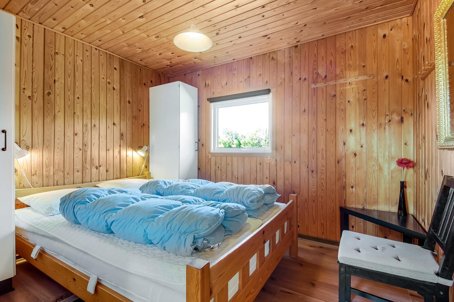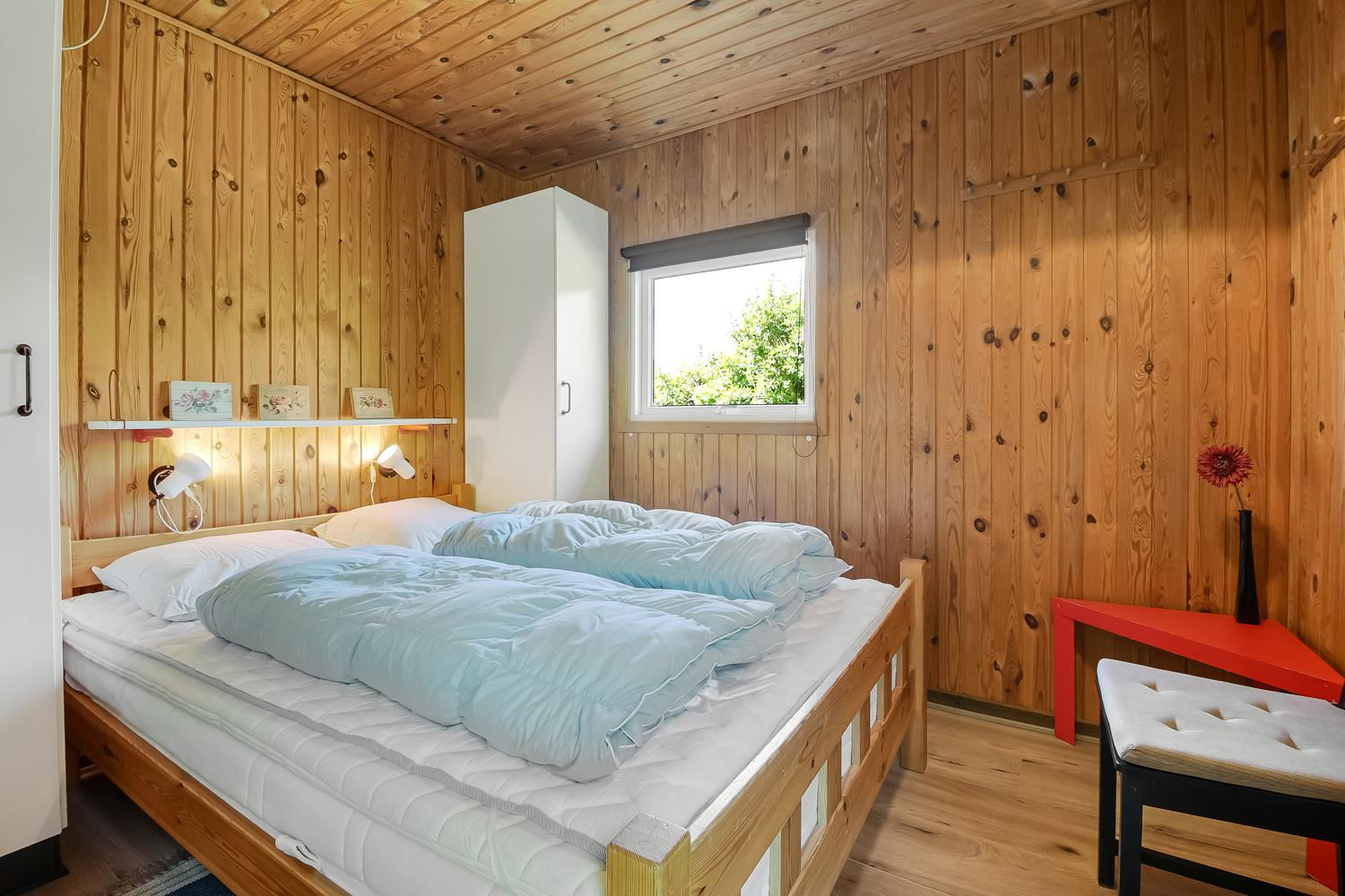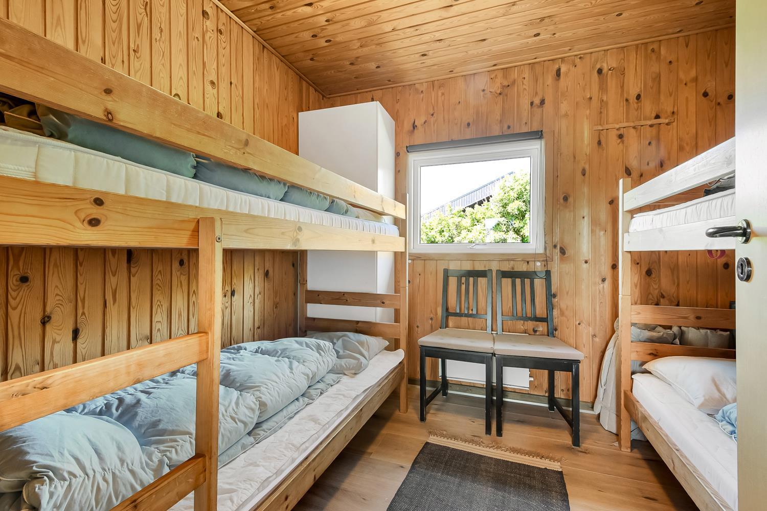 Huset har tre soveværelser: to med dobbeltsenge og ét med fire køjesenge – ideelt til børn og teenagere. Badeværelset er udstyret med bruser, gulvvarme og vaskemaskine, og der er direkte adgang til husets sauna – perfekt til afslapning efter en dag på stranden eller i naturen.