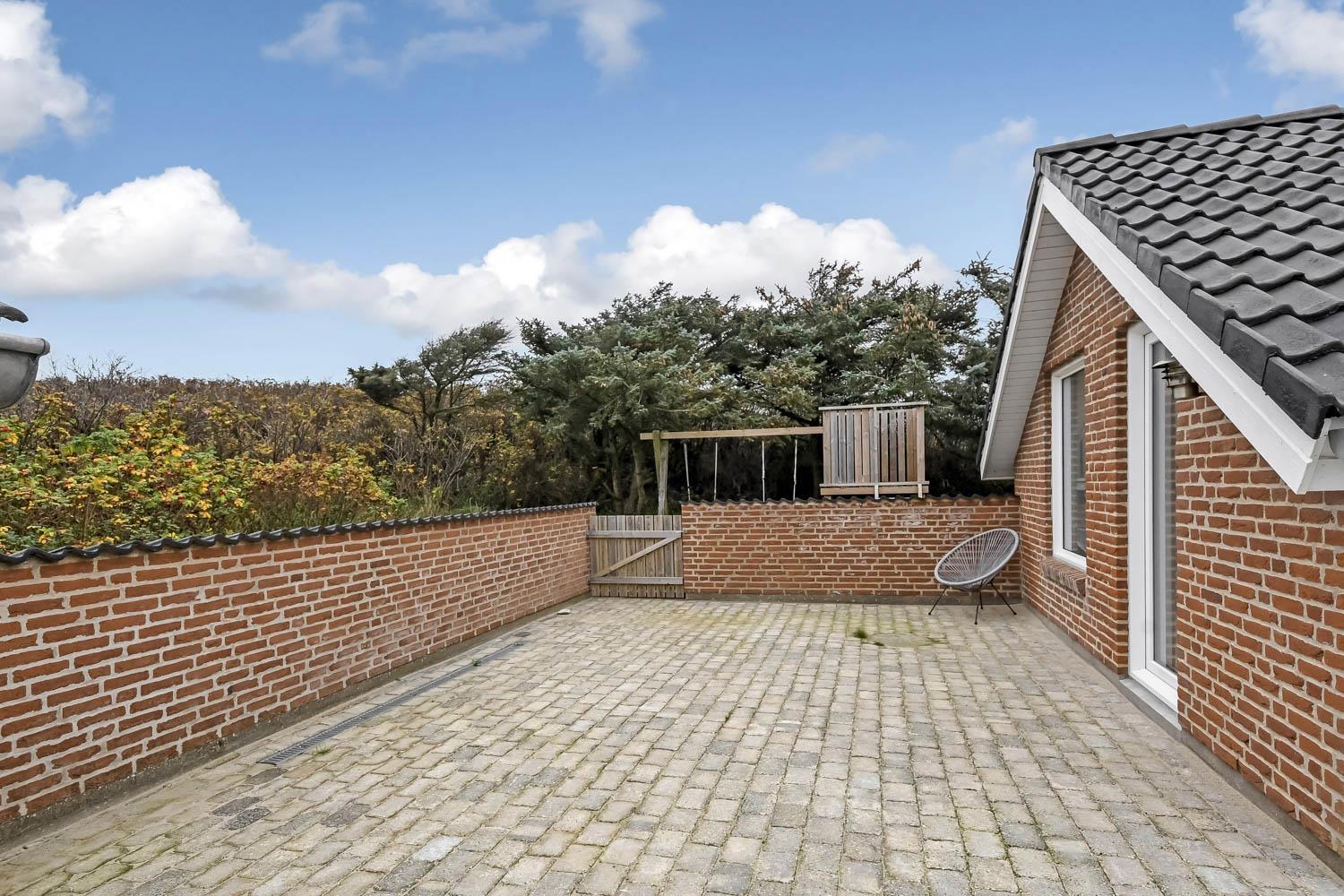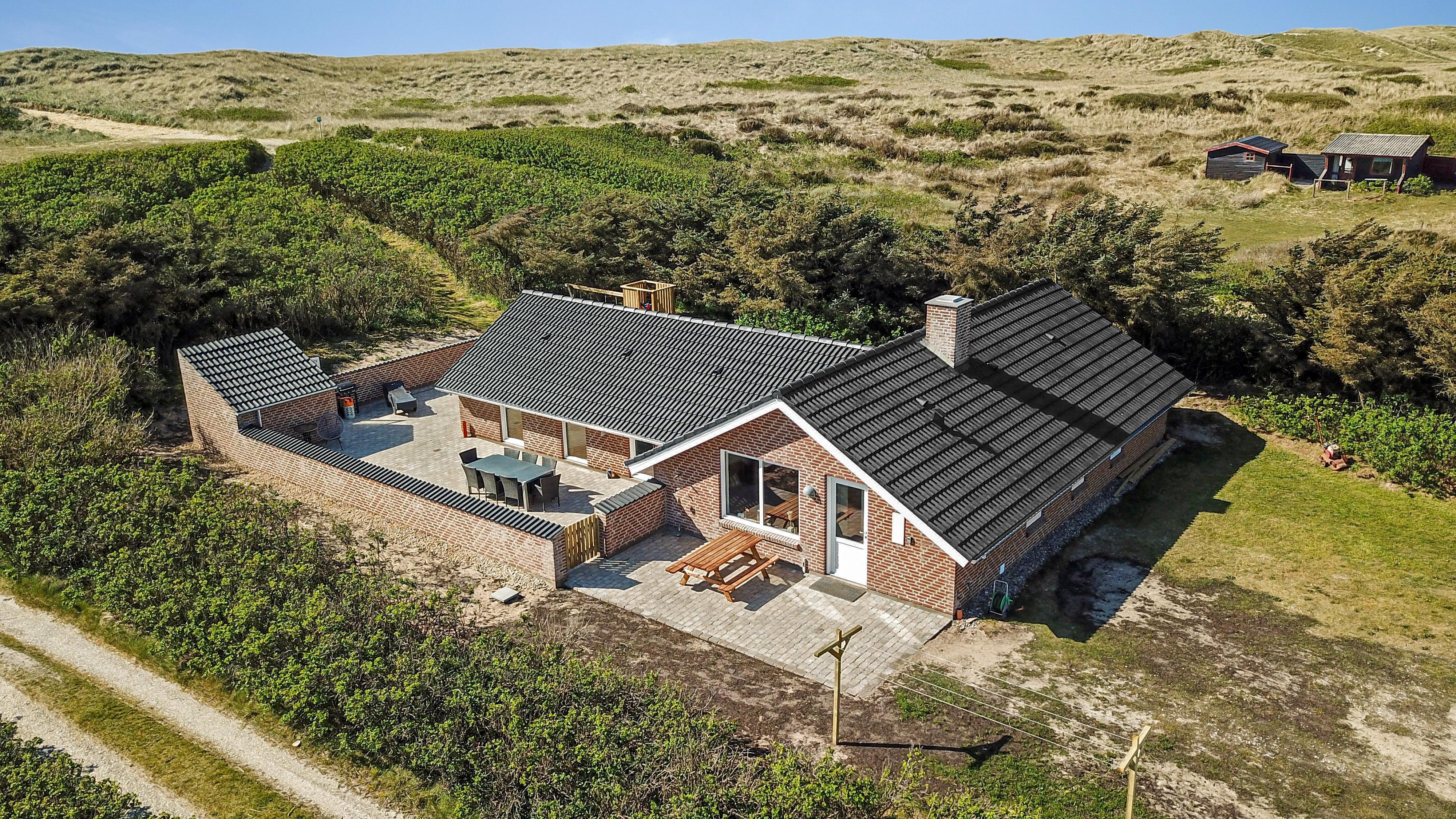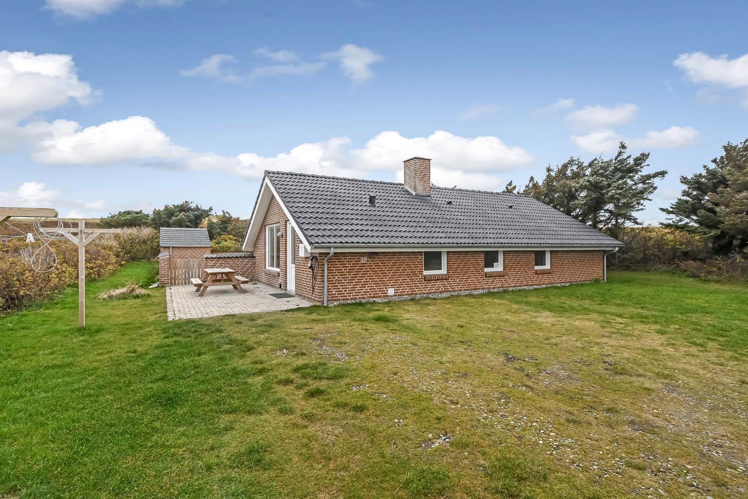Huset ligger på en 1.407 m² stor naturgrund for enden af en blind vej – direkte op til klitterne. Fra haven er der privat sti til stranden og en stor, indhegnet terrasse med nye havemøbler, solvogne og gasgrill – ideelt til børnefamilier og gæster med hund. Her er også gynger, sandkasse og klatrestativ til børnene.
