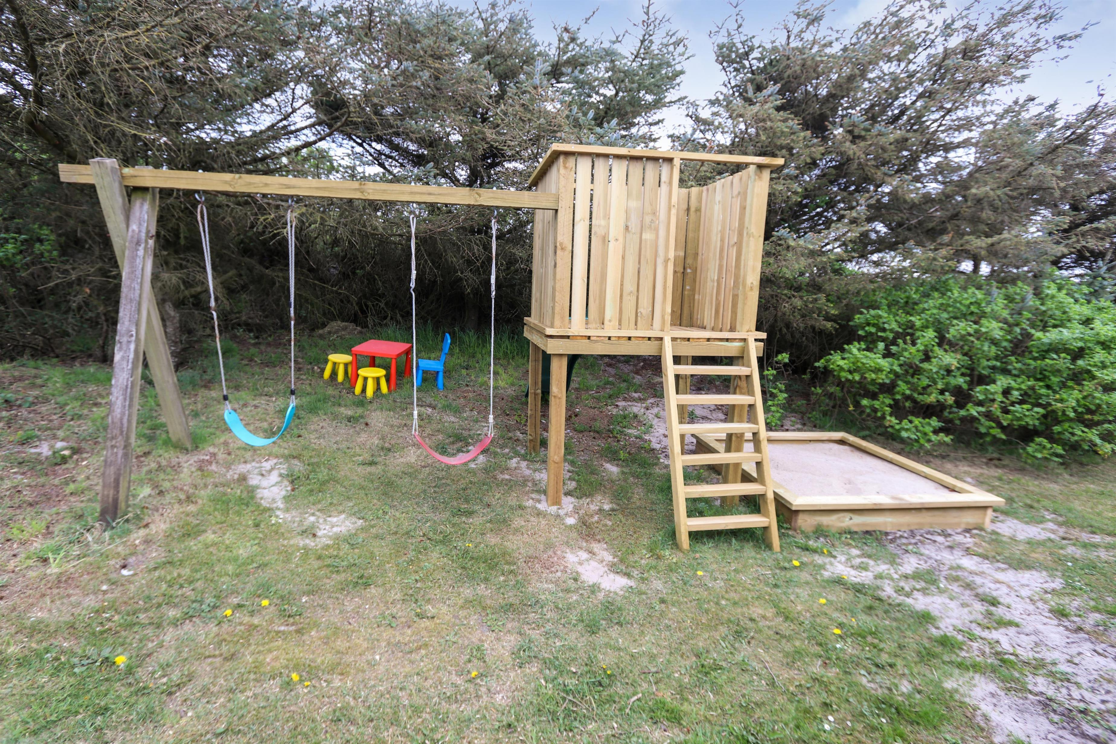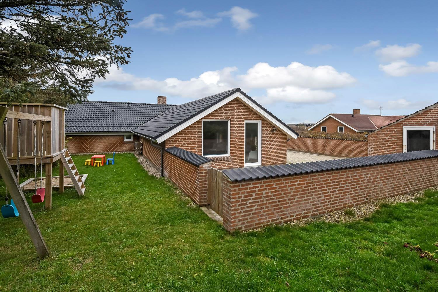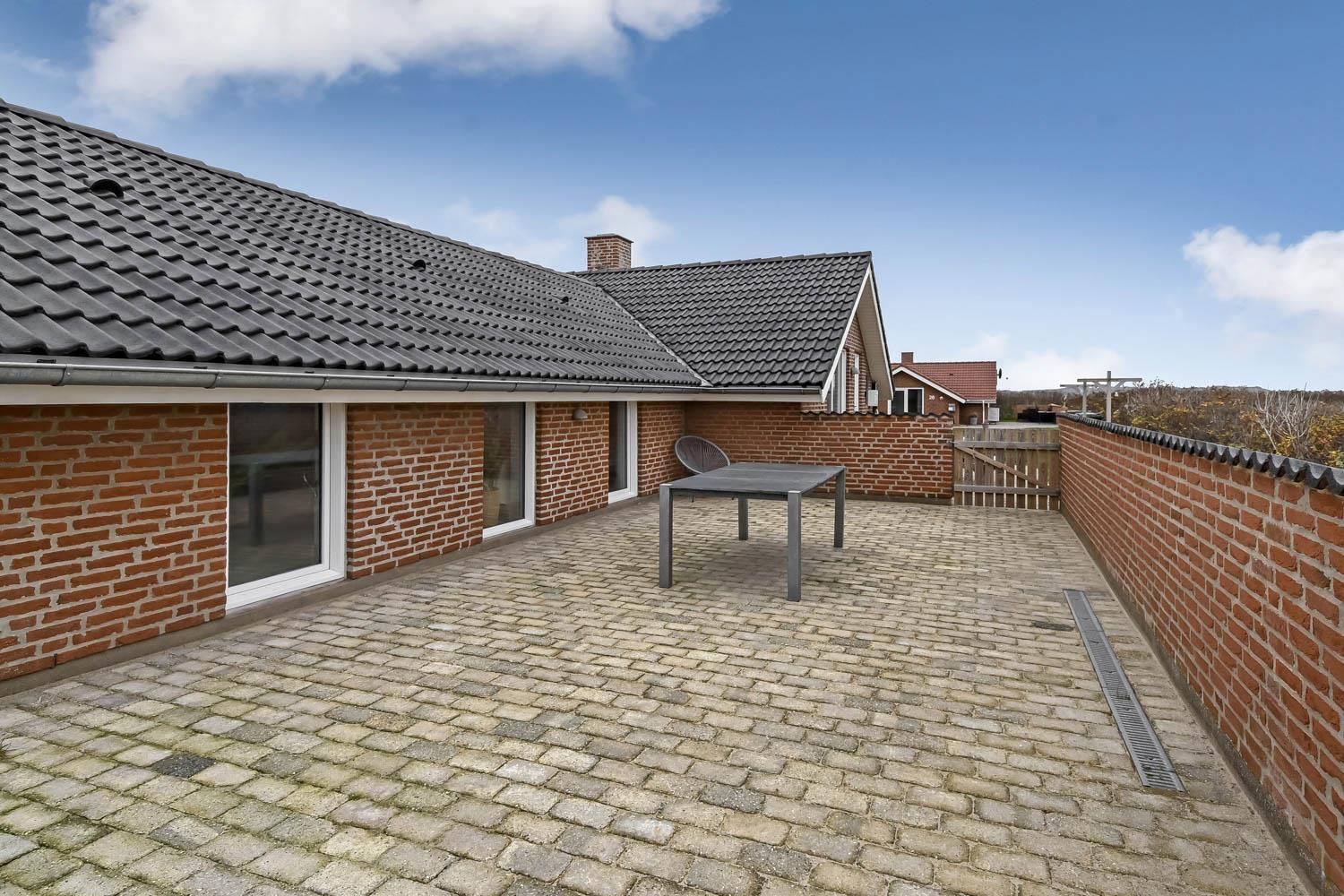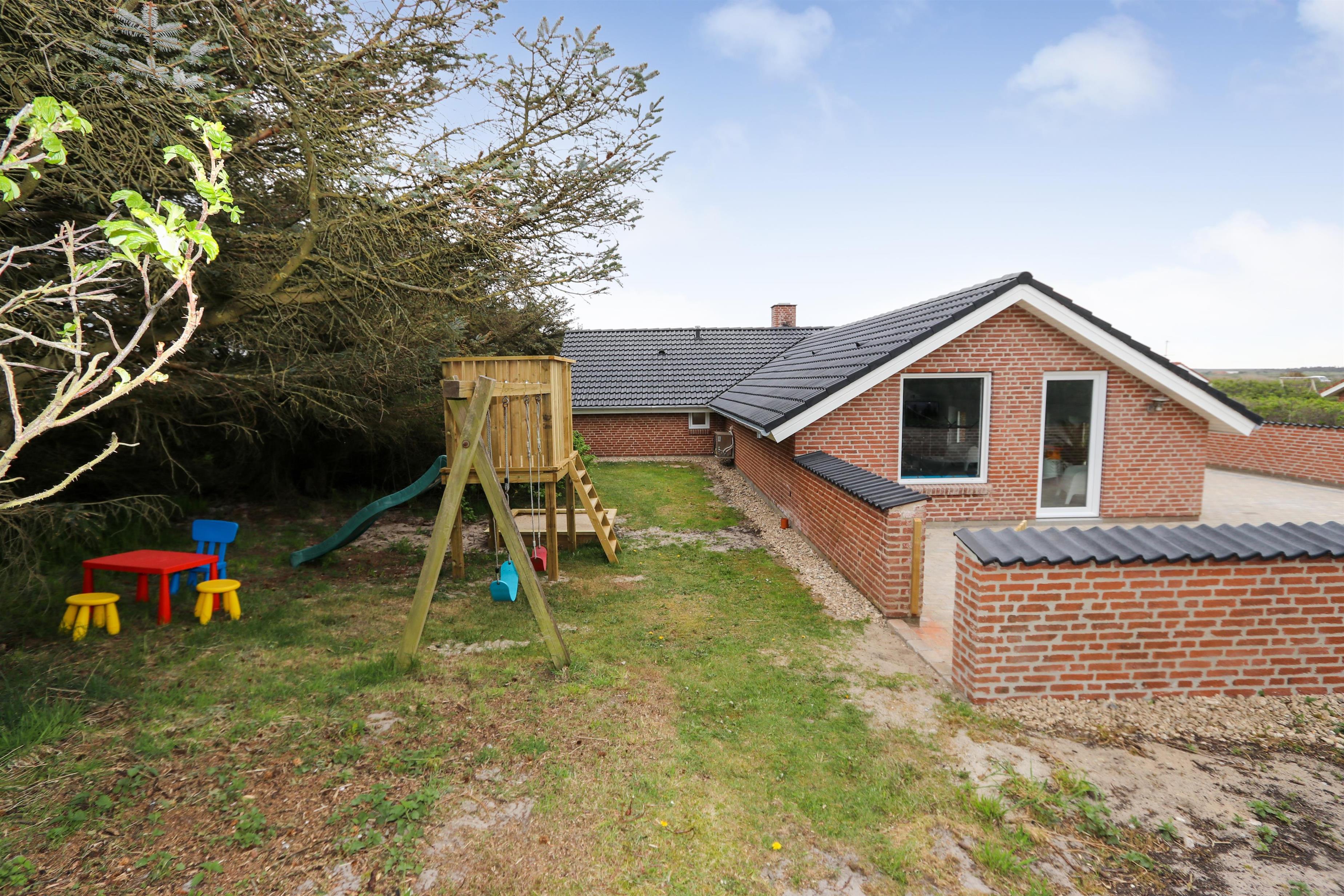 Huset ligger på en 1.407 m² stor naturgrund for enden af en blind vej – direkte op til klitterne. Fra haven er der privat sti til stranden og en stor, indhegnet terrasse med nye havemøbler, solvogne og gasgrill – ideelt til børnefamilier og gæster med hund. Her er også gynger, sandkasse og klatrestativ til børnene.