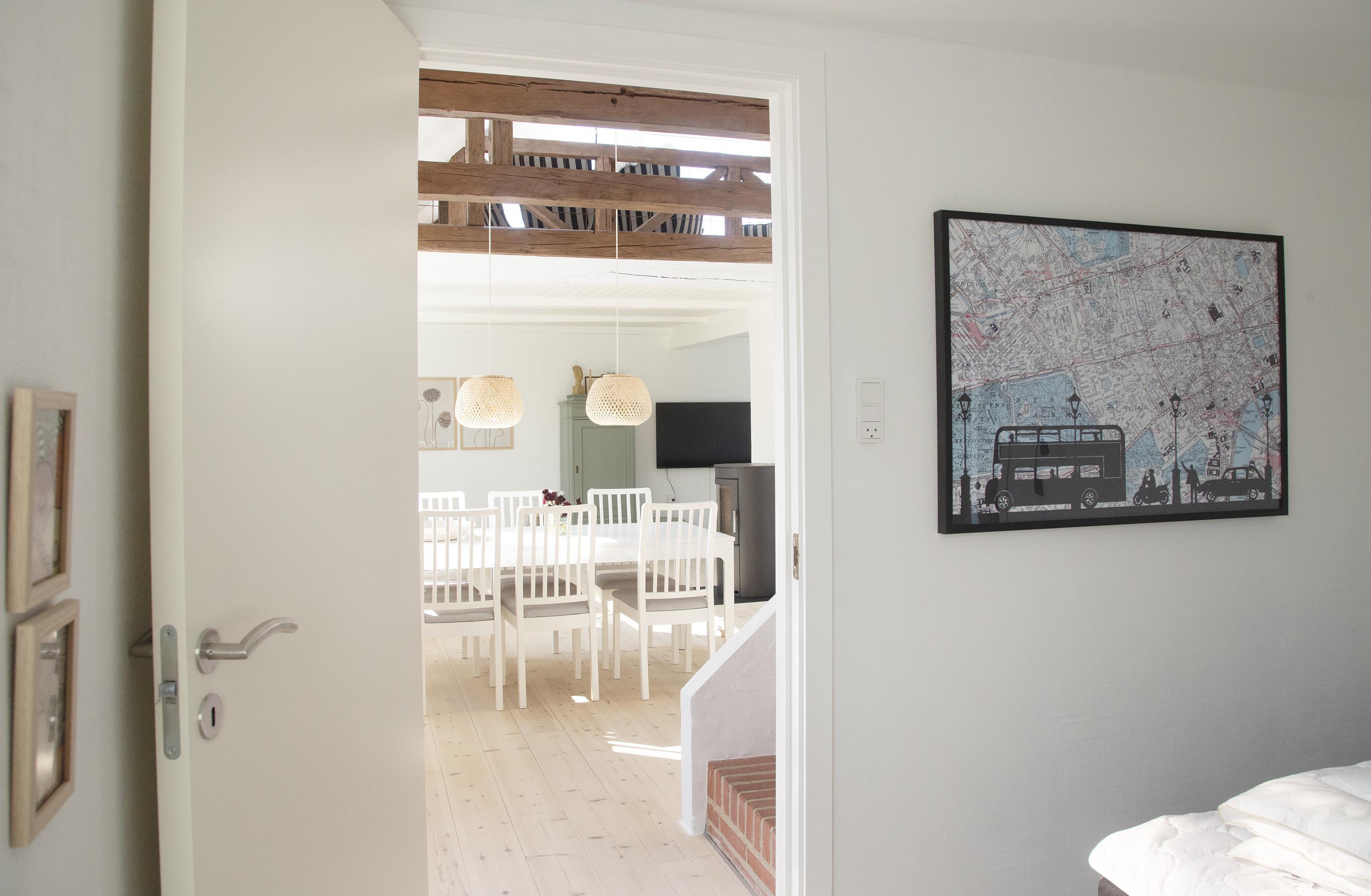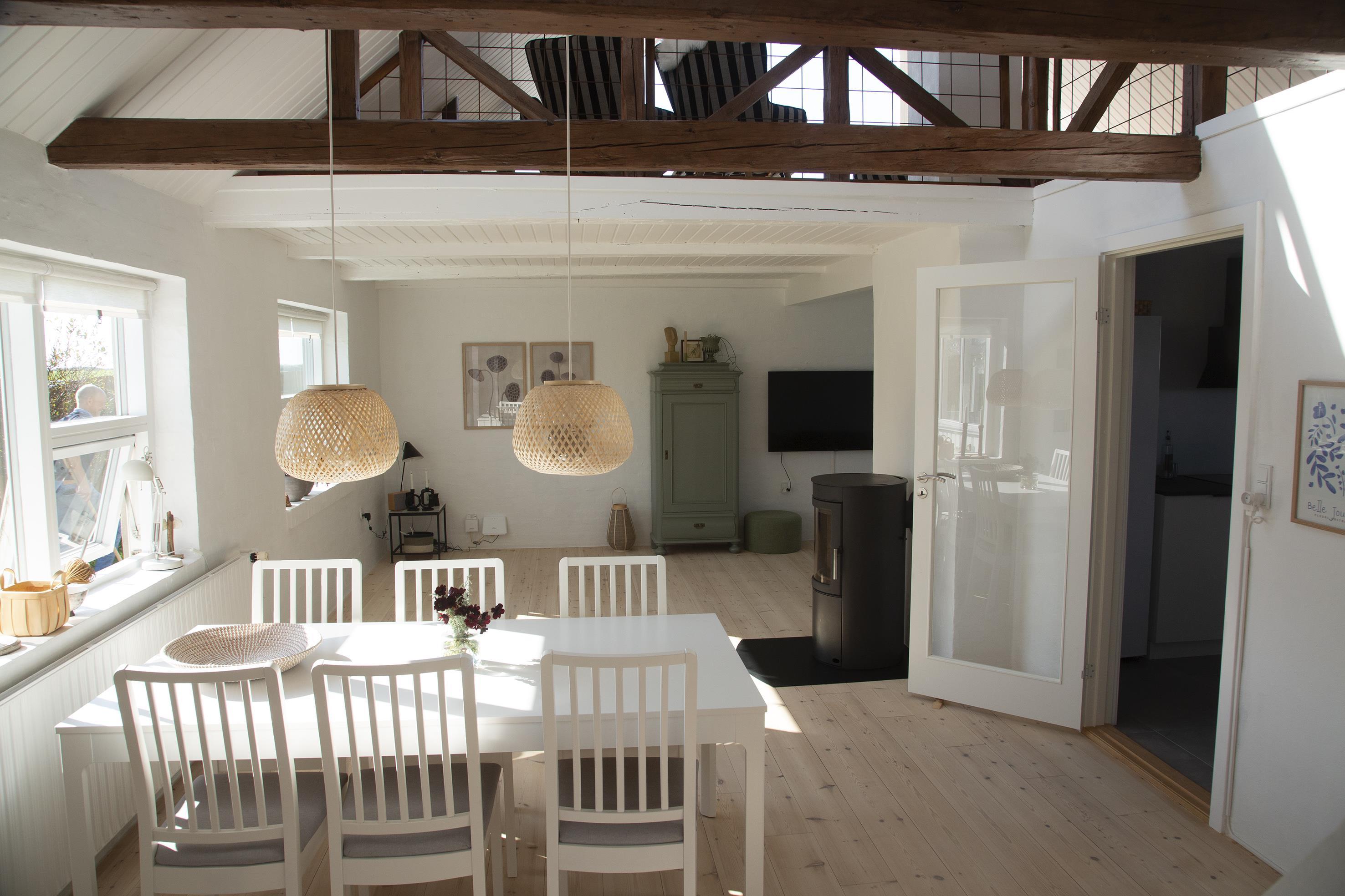 Huset er 189 m2 er total moderniseret i 2024. Huset er med 3 soverum som er fordelt således: i stueplan er der 1 soverum med 1 dobbeltseng 180x200 og 1 soverum med 2 enkeltsenge 90x200. Stuen som ligger lige op til køkkenet er med et stort spisebord og stole så der plads til alle mand, Smart-TV med danske og tyske kanaler. Der er et sofasæt og desuden er der en skøn brændeovn som er medvirkende til at give en behagelig varme uanset årstid, stuen har også gulvvarme. Der er åbnet til kip og der er synlige bjælker. Utrolig flot og veludstyret køkken med gulvvarme, indeholder induktionskogeplade, indbygnings ovn, emhætte, opvaskemaskine, airfryer samt køleskab. Der findes skabsfryser på 220 liter i bryggers. Badeværelse med toilet, bruser, håndvask og gulvvarme. Max. 1 husdyr tilladt, Ikke-ryger hus. Bryggers med vaskemaskine og tørretumbler. Flot orangeri/udestue med havemøbler, med en fantastik udsigt over landskabet.