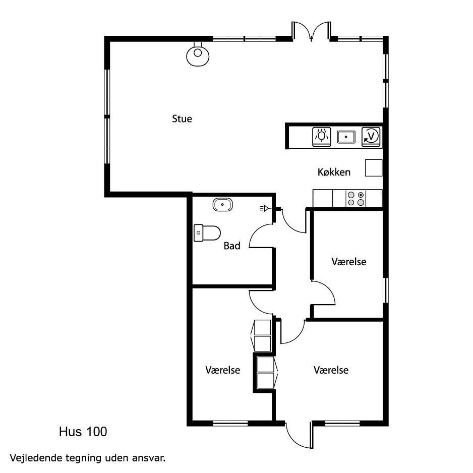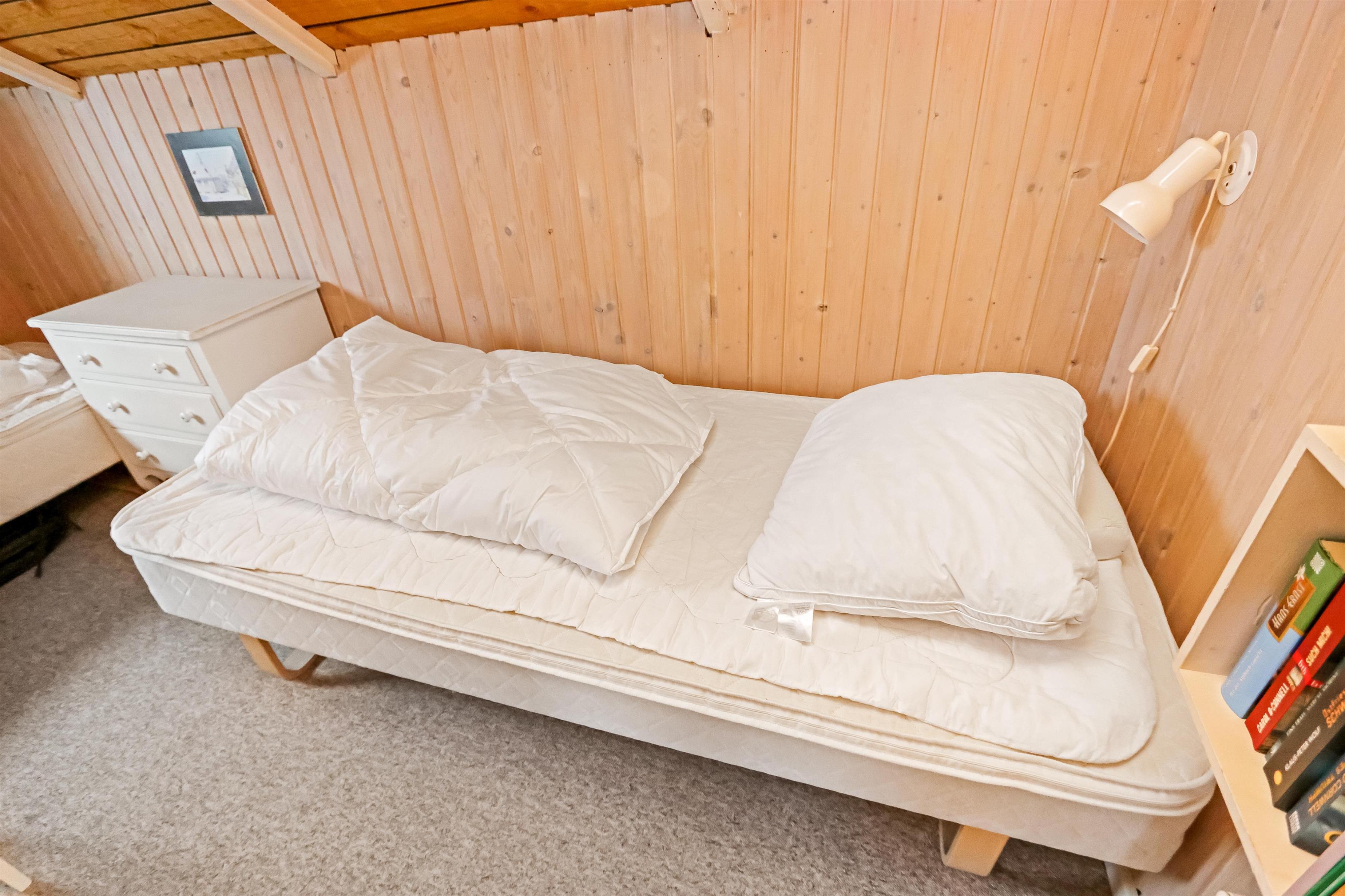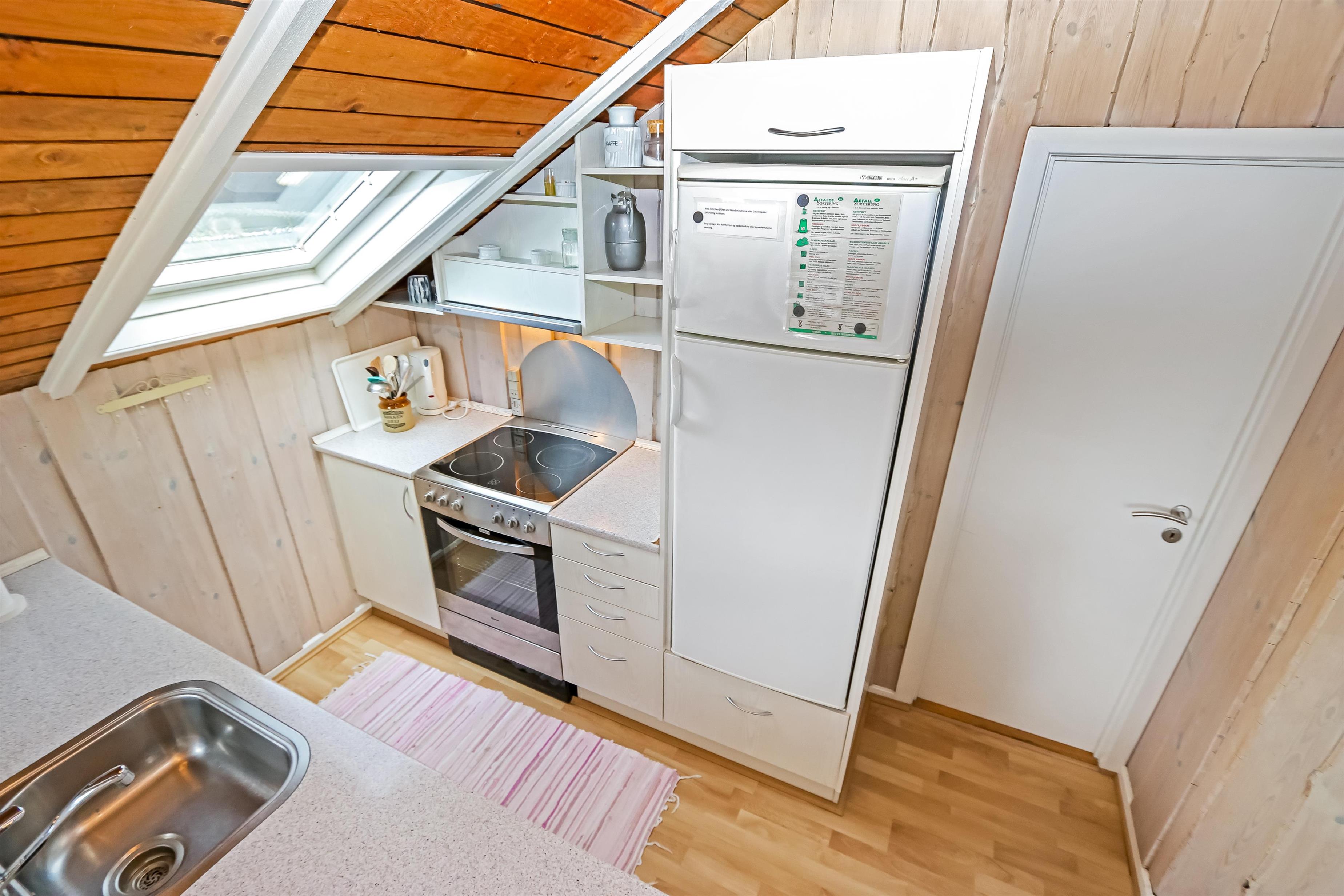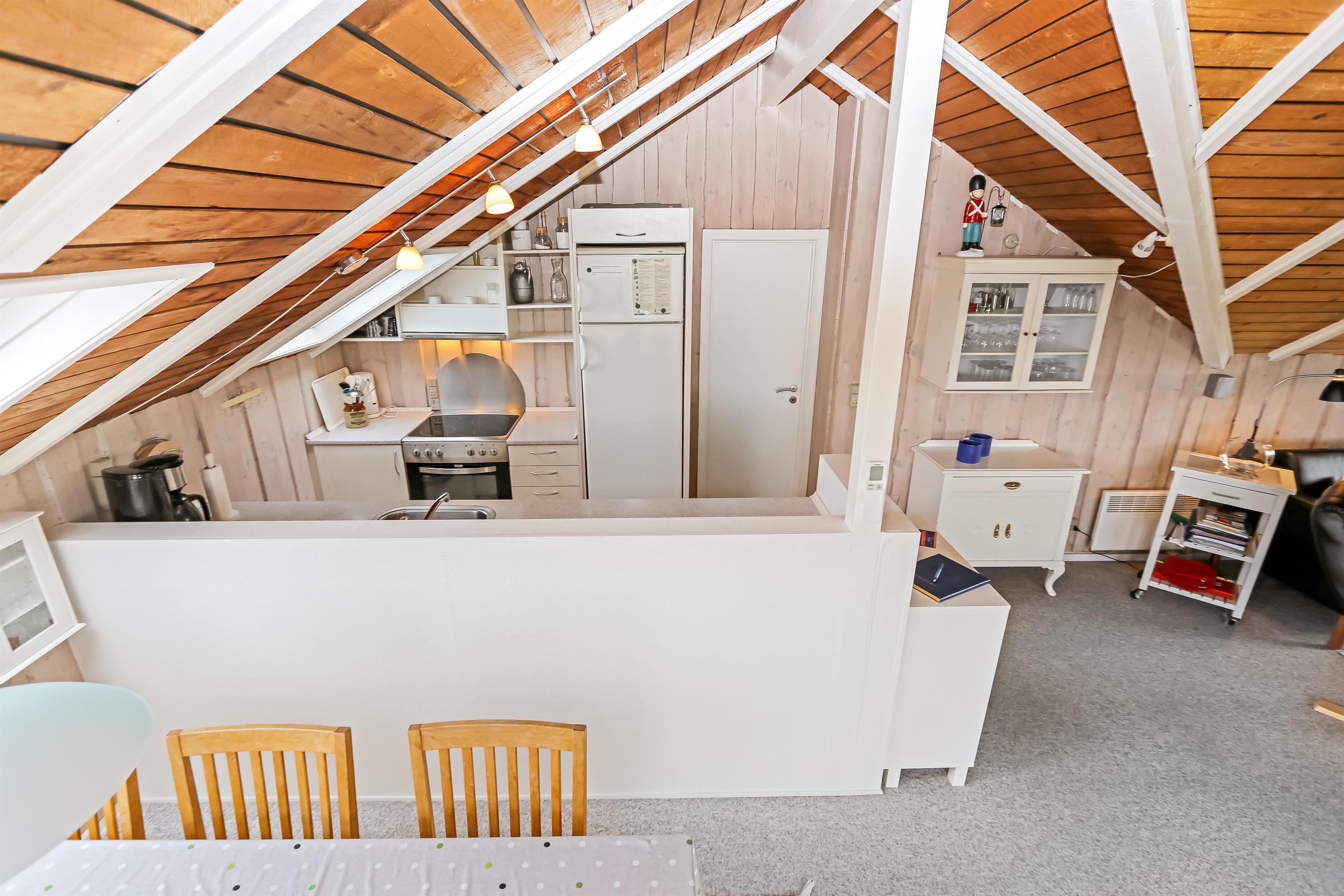 Huset er renoveret i 2008 og er godt indrettet med bl.a 3 soveværelser (2 DS, 2ES). Rummelig opholdsstue med farve-tv med danske og tyske kanaler, stereoanlæg med CD-afspiller, spiseplads og en dejlig brændeovn som sammen med husets varmepumpe sørger for en dejlig varme også på de kolde dage. Køkkenhjørne med glaskeramisk komfur, opvaskemaskine, vaskemaskine og køleskab med lille fryseboks. Dejlig ovenlys vinduer giver massere af lysindfald i husets opholdsrum. Funktionelt badeværelse med bruseniche i glas, håndvask, toilet og klinkegulv med gulvvarme. Ikke ryger hus. 1 husdyr tilladt.