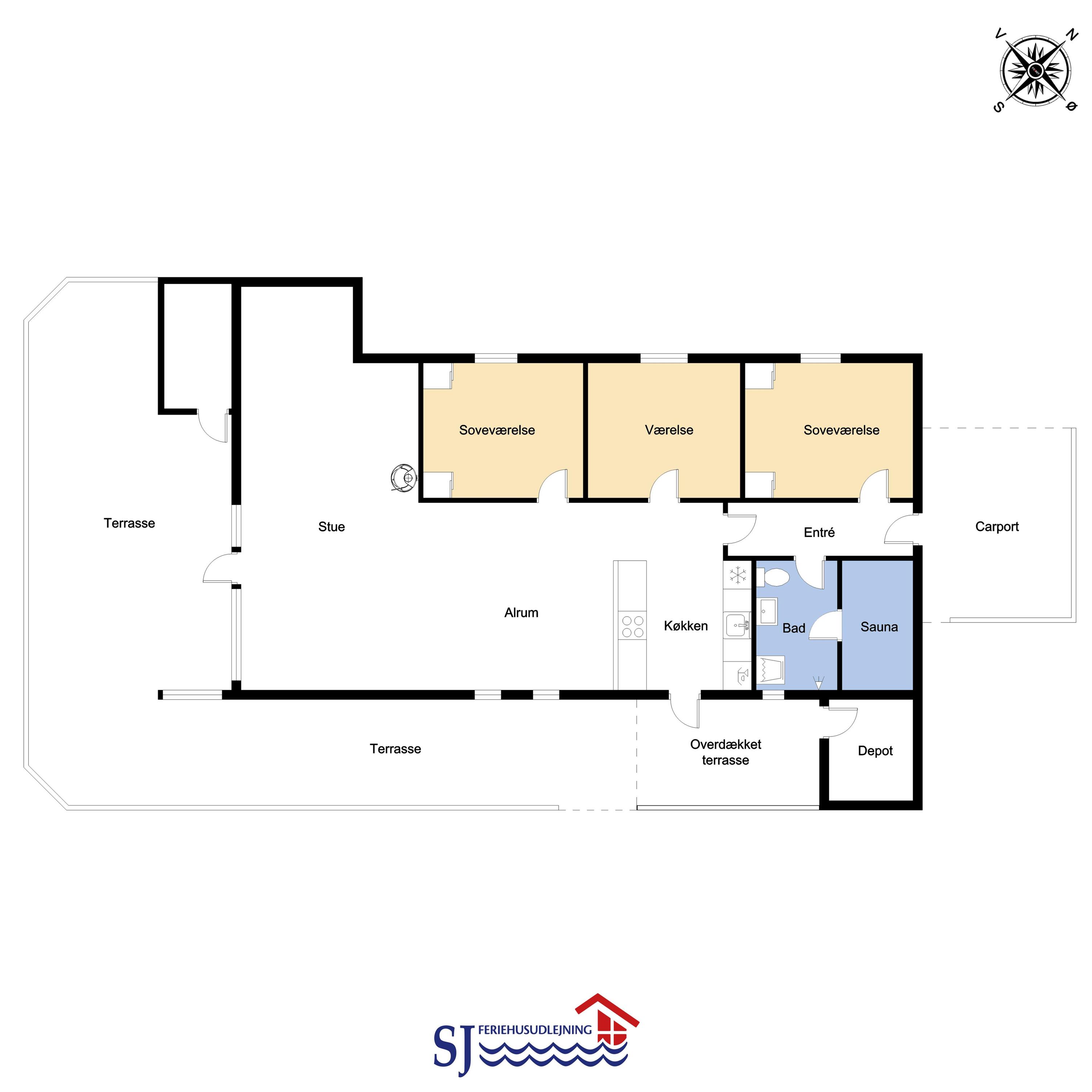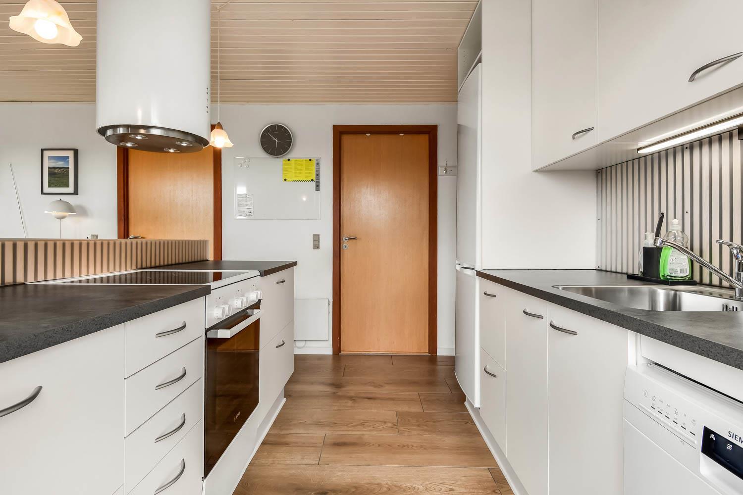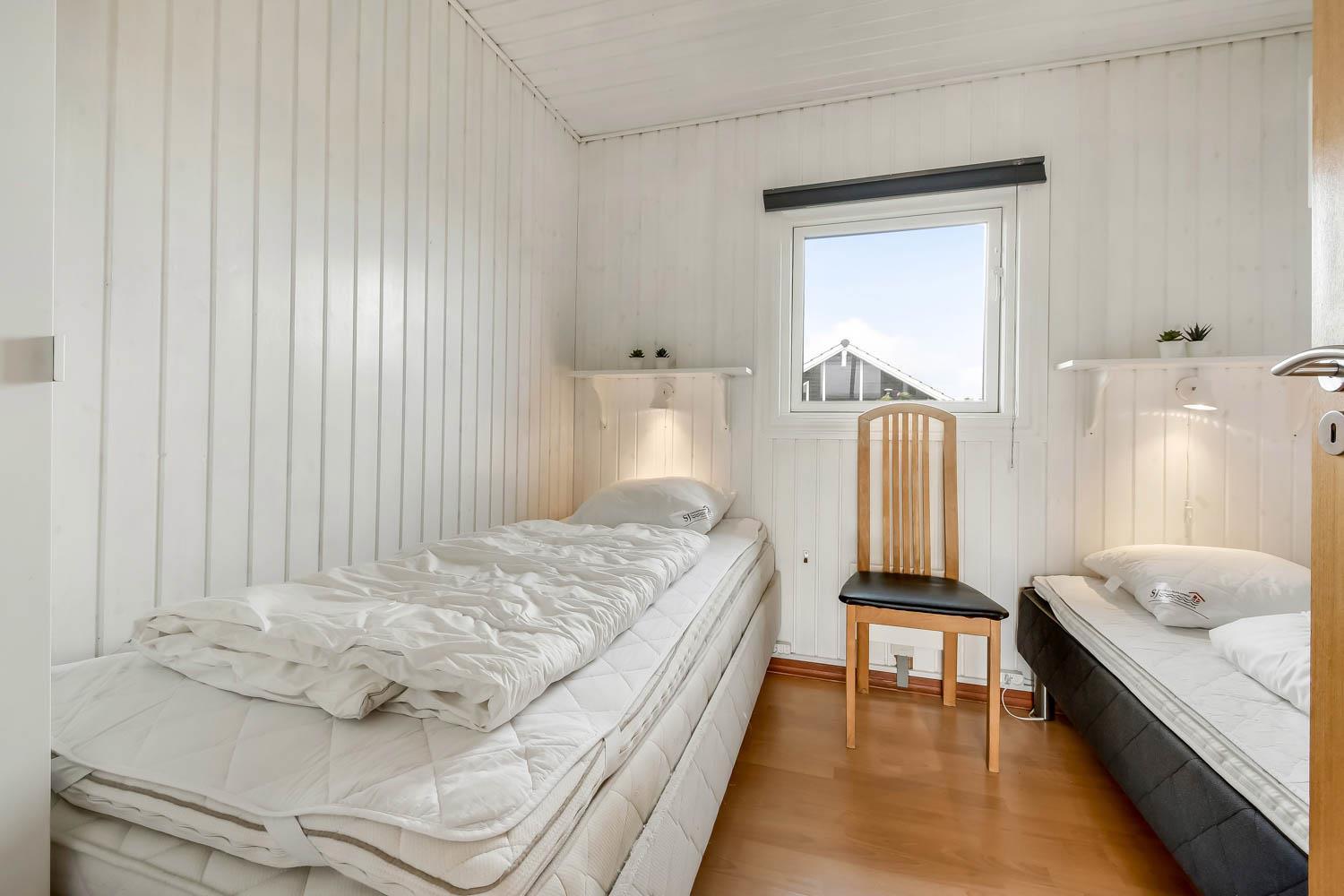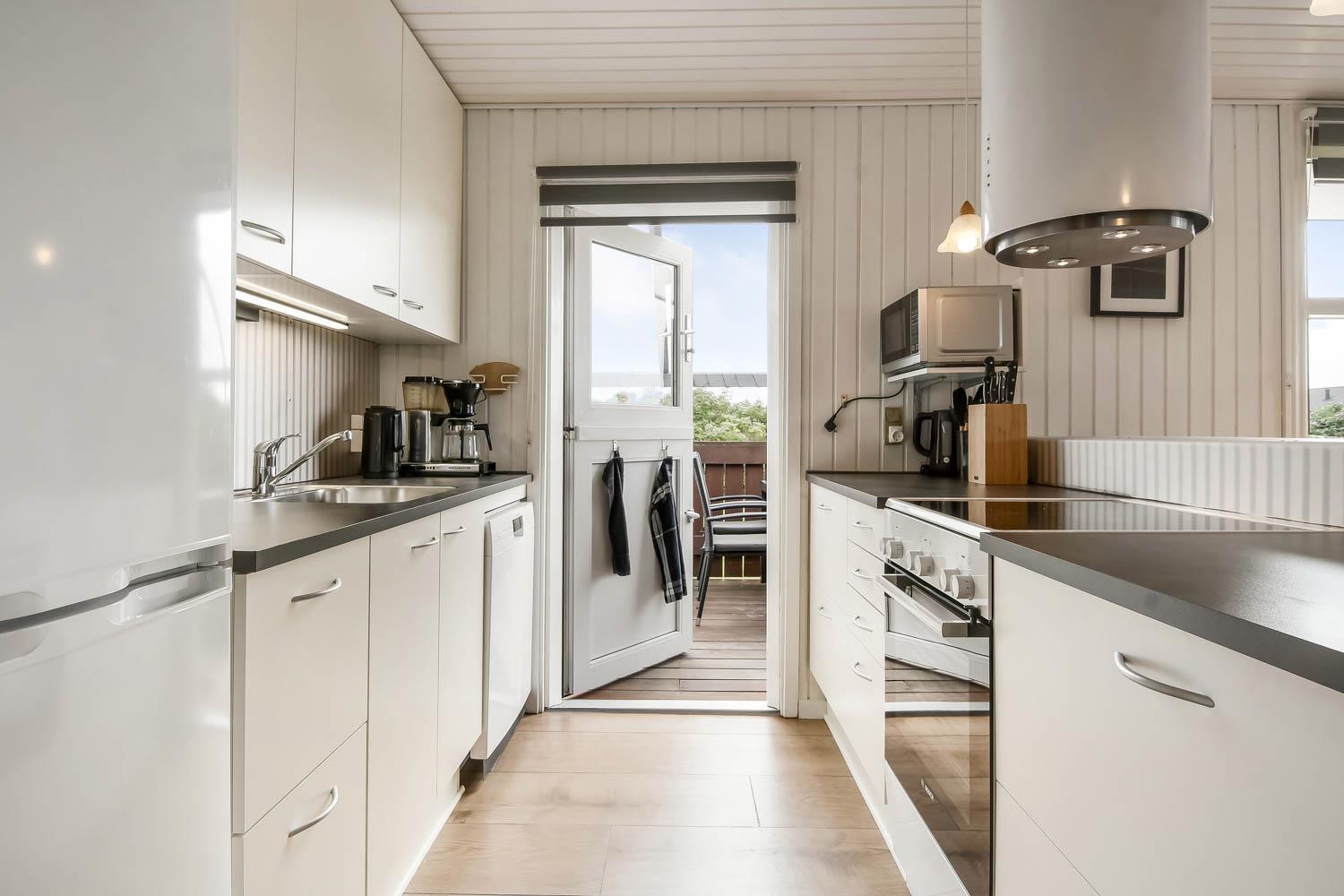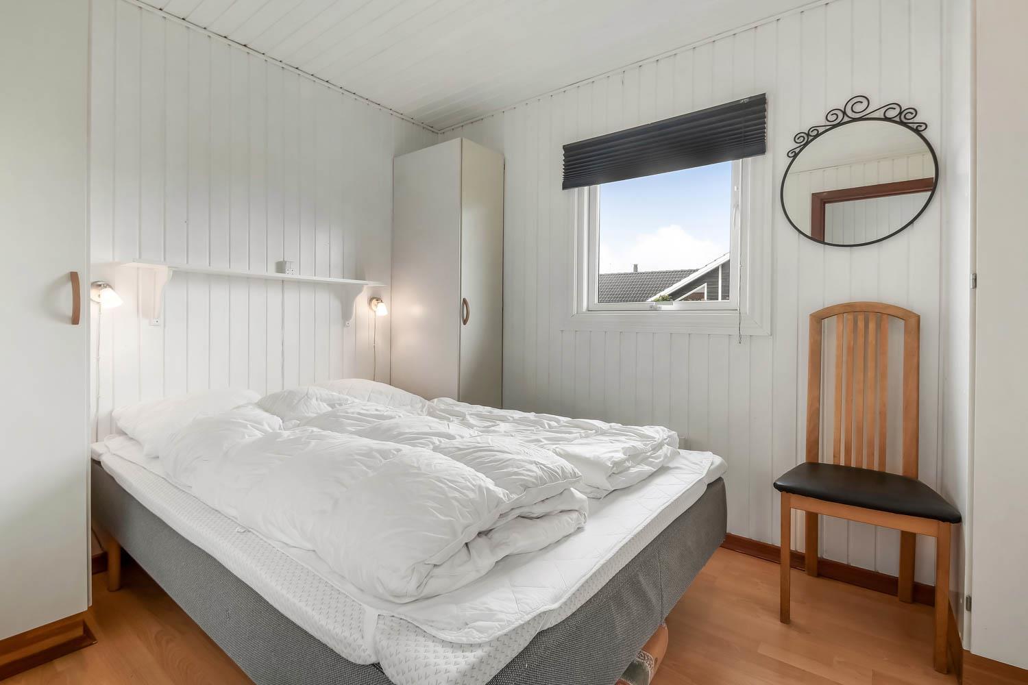 81 m2 stort, godt udnyttet træhus med 3 soveværelse (1DS, 1DS, 2ES) samt en dejlig alkove i opholdsstuen som kan bruges til 2 sovepladser. Hyggelig, kombineret opholdsstue og køkkenhjørne. Opholdsstue med DAB-radio med bluetooth, DVD-afspiller, TV med danske og tyske programmer samt Chromecast til streaming af TV / radio / Apps, så har du en mobiltelefon eller et andet device med kan du streame hvad du nu har abonnement. Der er komfortable møbler og spisebord direkte ved køkkenhjørnet. Slap af foran den knitrende brændeovn som sammen med varmepumpen hjælper med at reducere udgiften til varmeregningen. Huset fremstår overalt lyst og venligt med bl.a. nye gulve. Køkkenhjørne med glaskeramisk komfur, emhætte, køleskab med fryseboks (92L), mikroovn, opvaskemaskine og alt i service og køkkengrej. Flot istandsat og godt udnyttet badeværelse med klinkegulv med gulvvarme, bruser, toilet, håndvask og mini-vaskemaskine. Højstol til de mindste. Ekstra køleskab med lille fryseboks i skuret.