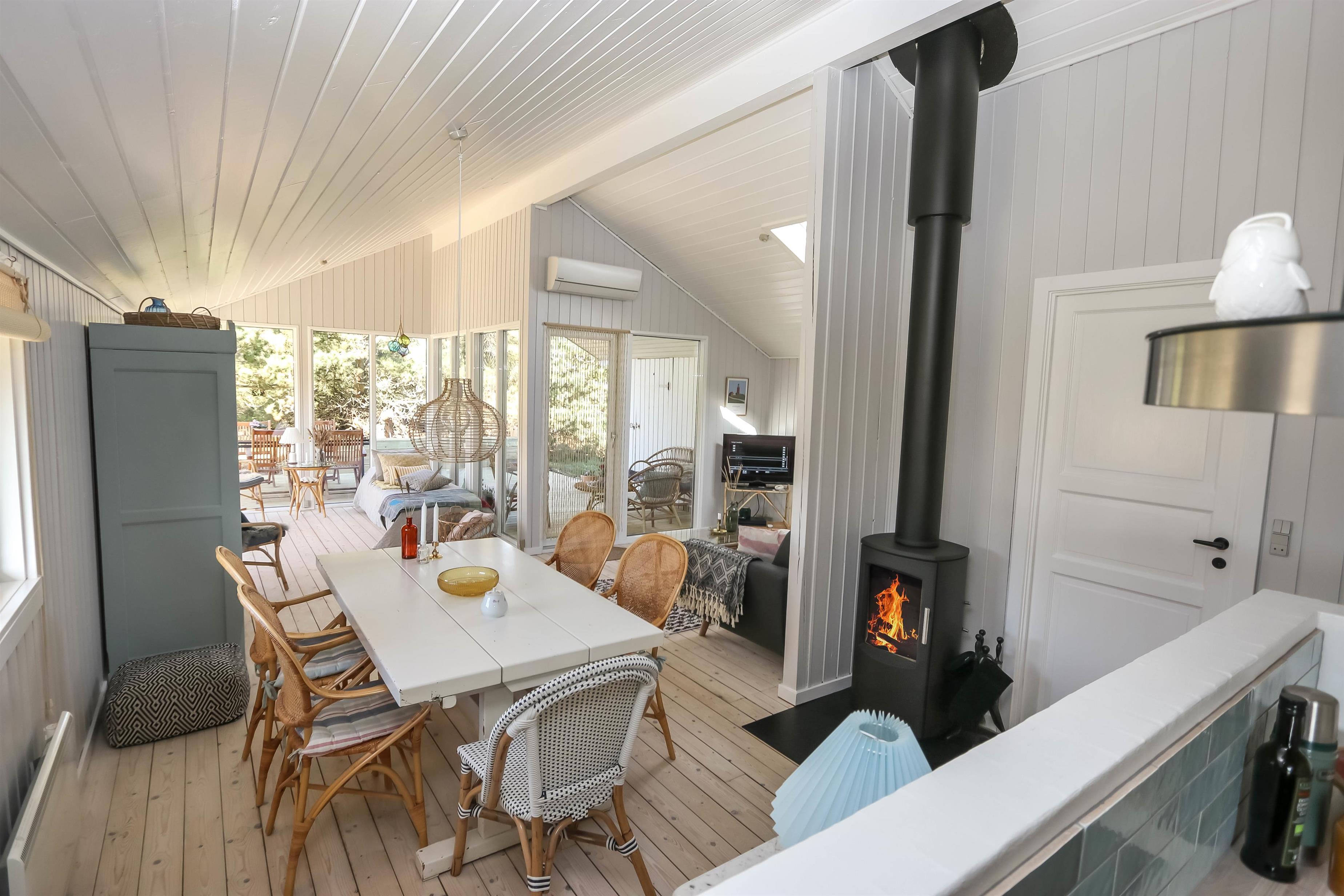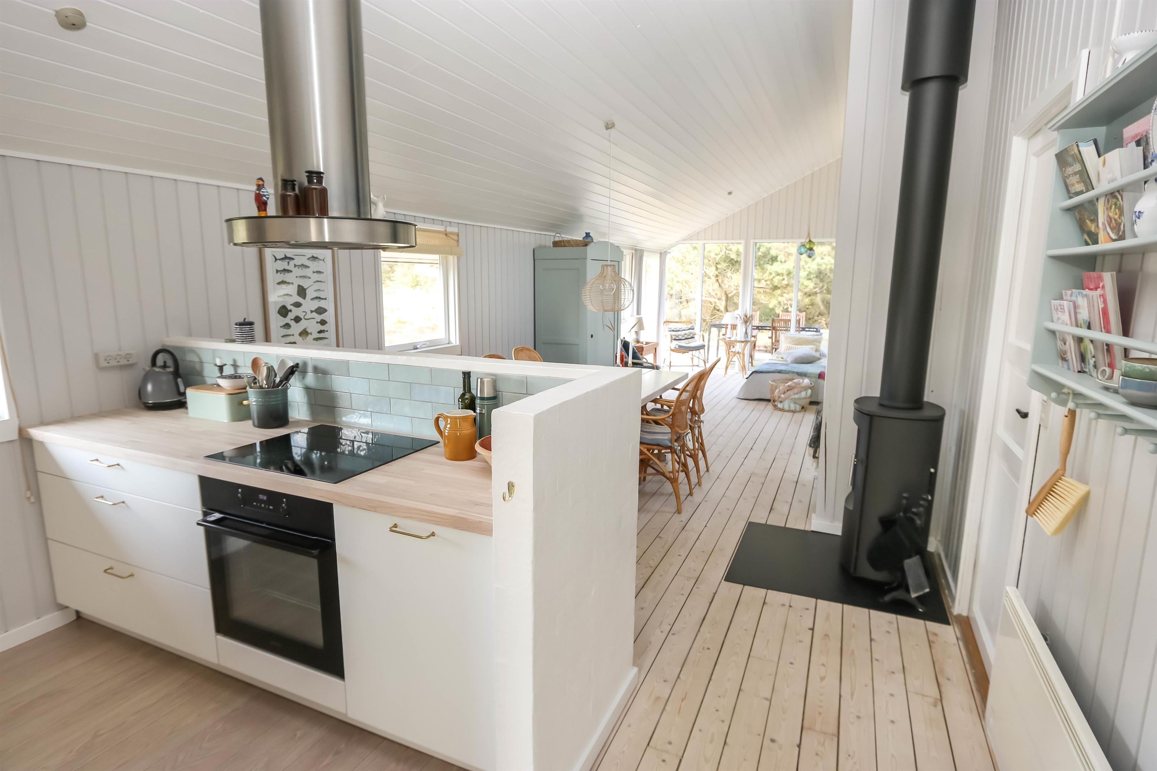 Velholdt træhus på 75 m2 med 3 gode soverum (1DS, 1ES, 2ES). Alle soverum har gode senge. Opholdsstue med chaiselong stofsofa, TV med danske og tyske programmer samt mulighed for streaming af TV / radio / Apps. Har du en mobiltelefon, en ipad eller en computer er det muligt at streame, direkte til TVét med dit abonnement. Brændeovn og varmepumpe til de kolde aftener og til at minimere strømregningen. Tæt ved køkkenhjørnet er husets spisebord placeret. Indbydende køkkenhjørne med keramiske induktionskogeplader, emhætte, opvaskemaskine, køleskab med fryseboks og masser af service. Nyt, dejligt badeværelse med klinkegulv, vaskemaskine, toilet, håndvask, bruseniche og sauna. Flot ny afslebet gulv i opholdsrum. Ikke Ryger hus. Max 1 husdyr tilladt.