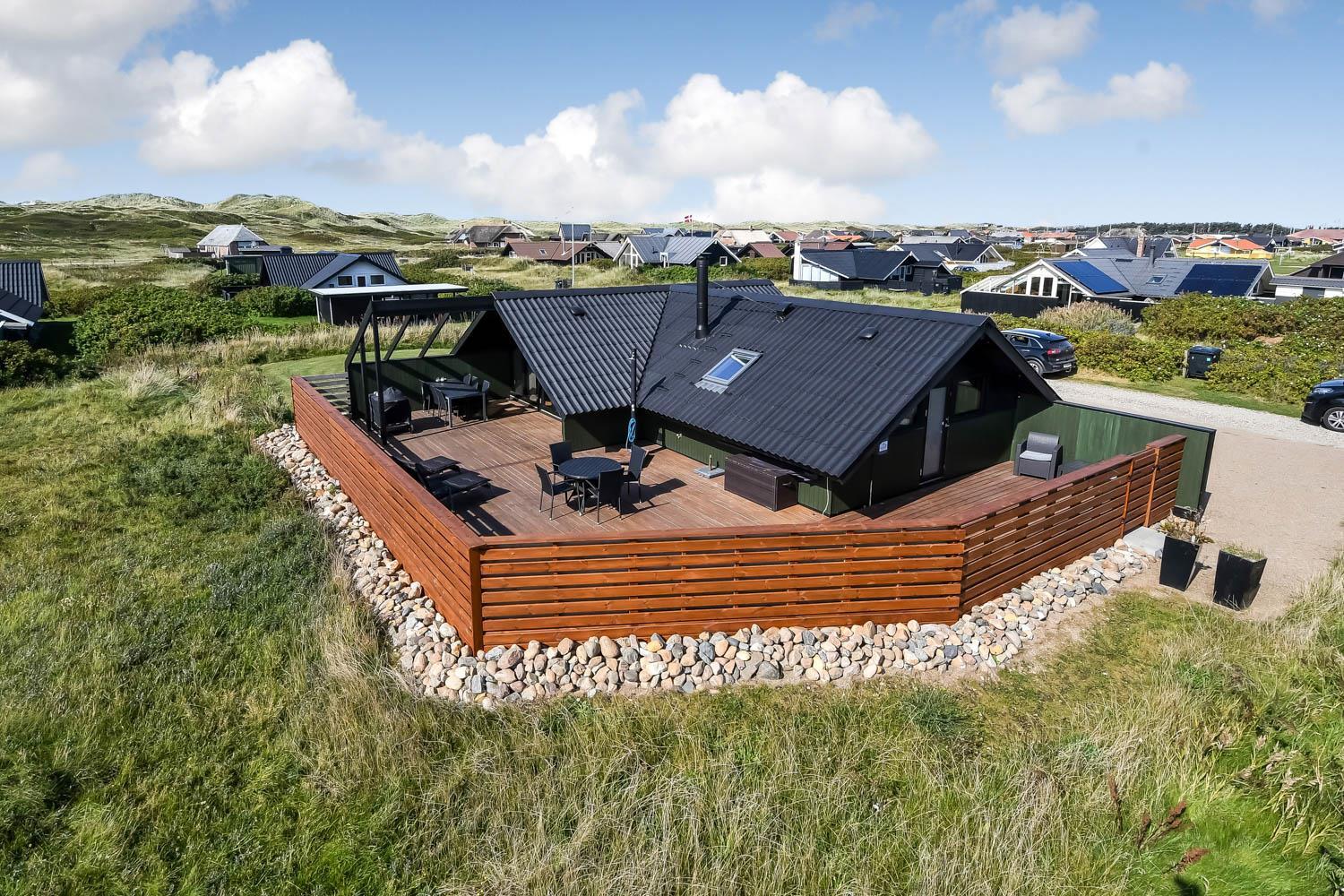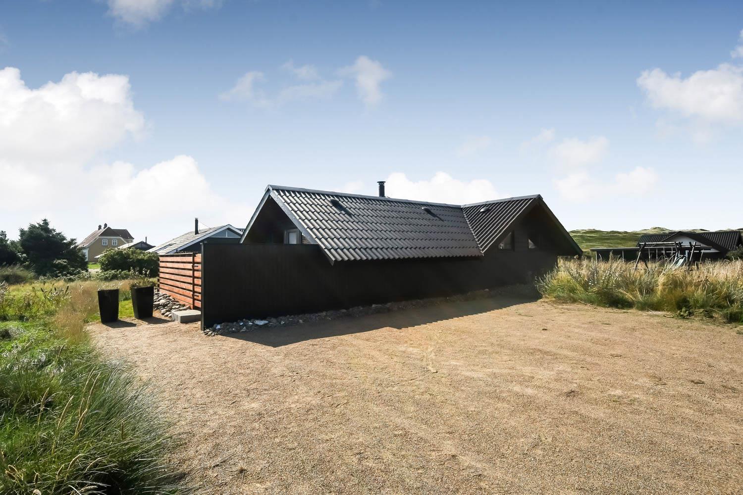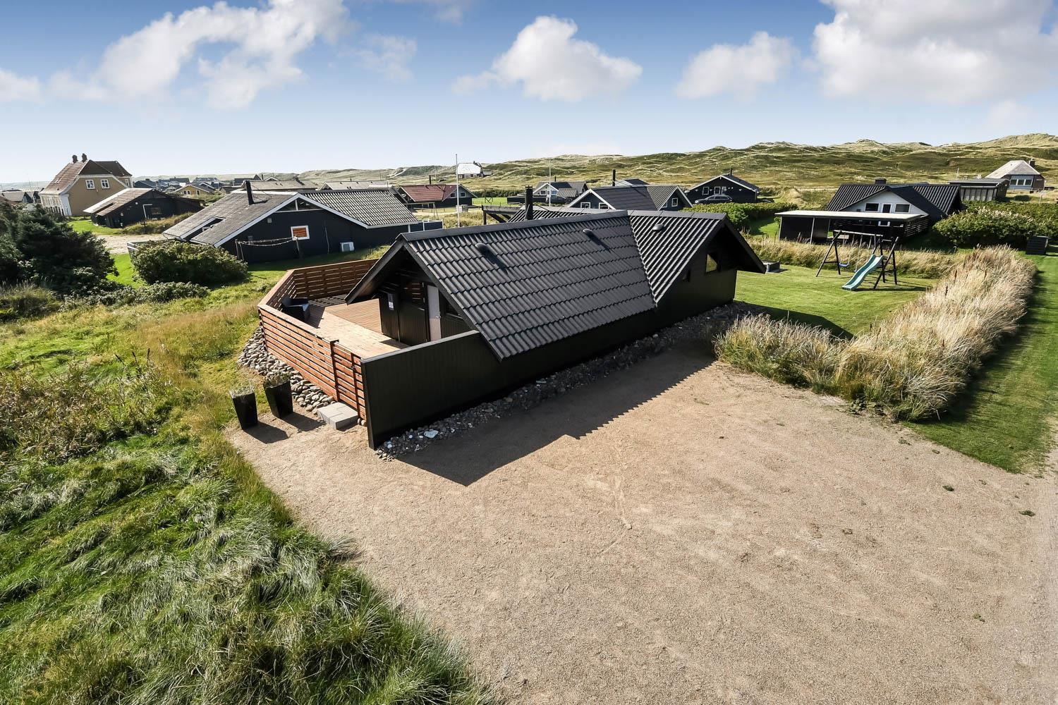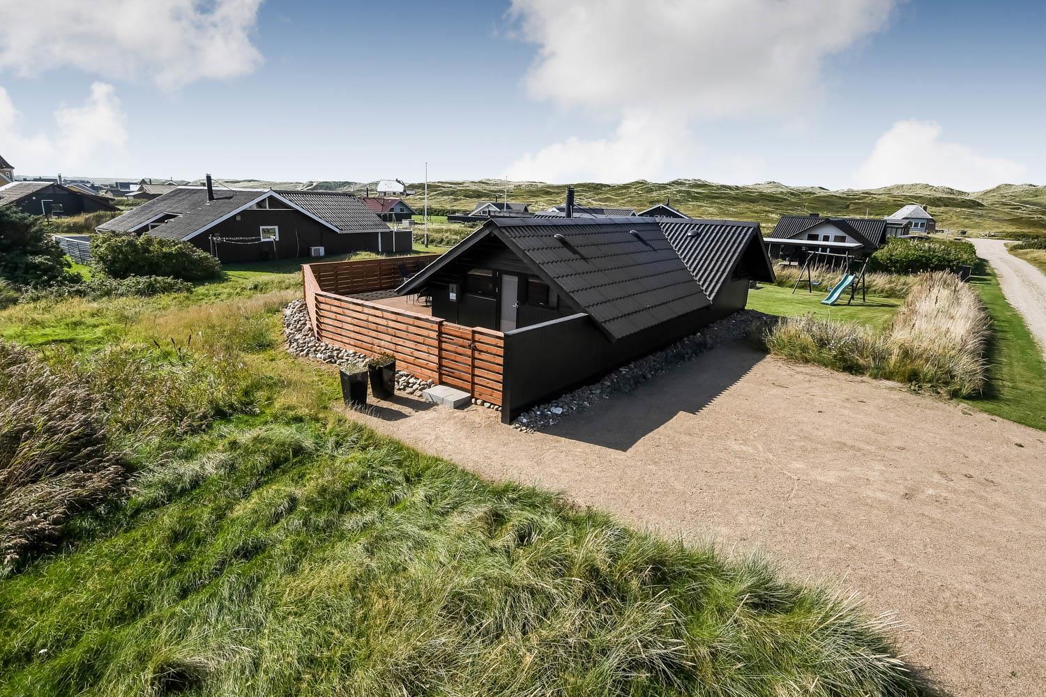 Renoveret, hyggeligt indrettet feriehus i træ med stor, delvis overdækket terrasse. Beliggende på naturgrund kun 200 meter fra Vesterhavet. Terrassen er indhegnet og dermed egnet til at man kan have sin hund gående løs rundt. Her er desuden gratis trådløs internetadgang (fiberforbindelse). Fra huset er der udsigt til klitterne og huset er ideelt til parret eller den lille familie.