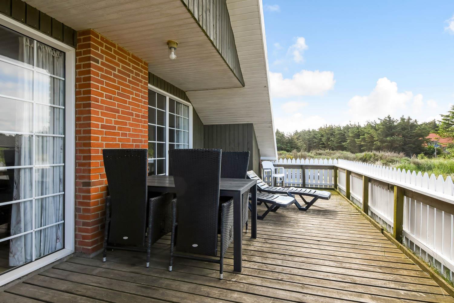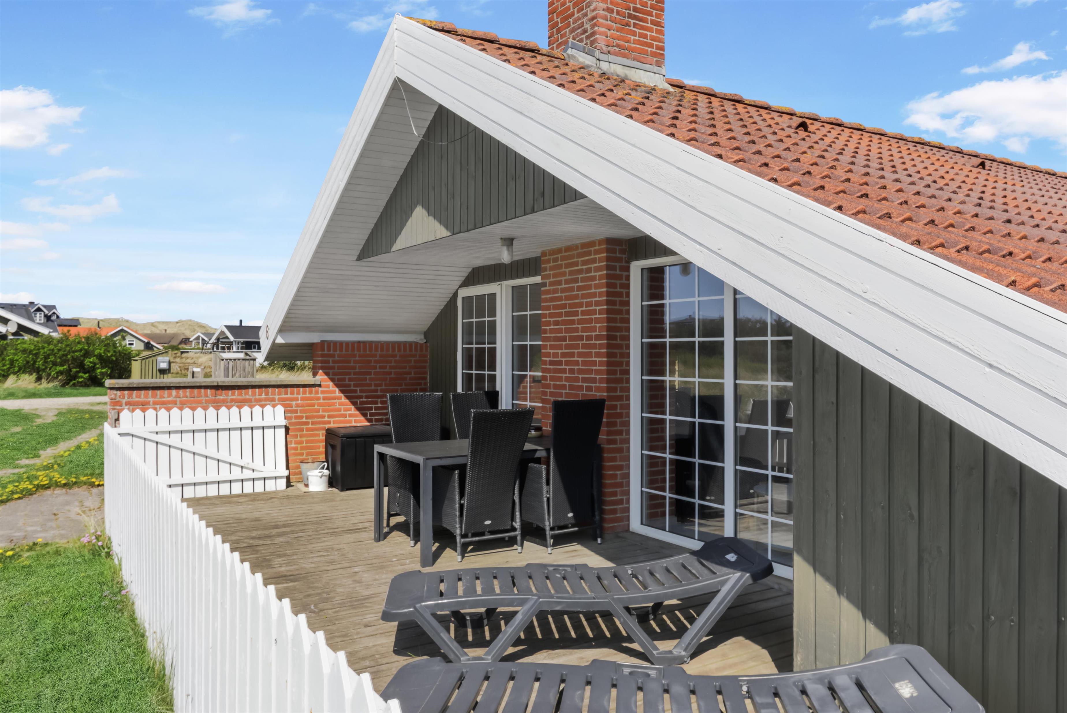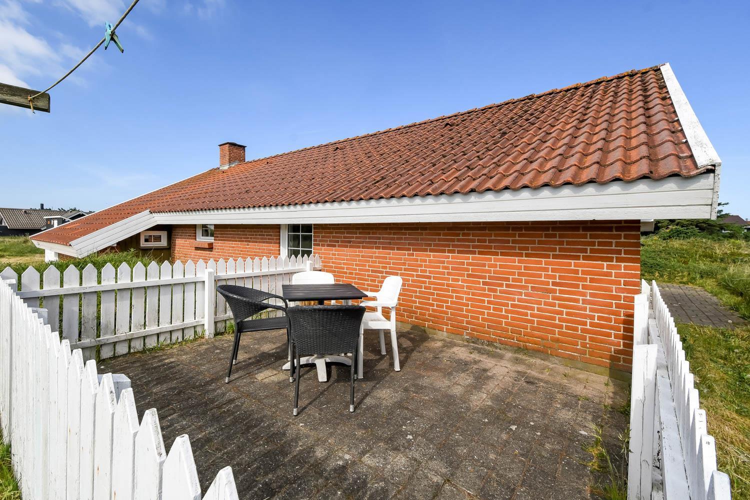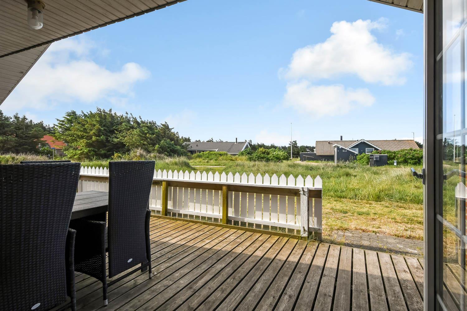 Udendørs finder du en dejlig, lukket terrasse med havemøbler, solvogne og grill, hvor du kan nyde solen, læ og den fantastiske natur omkring huset i fulde drag.