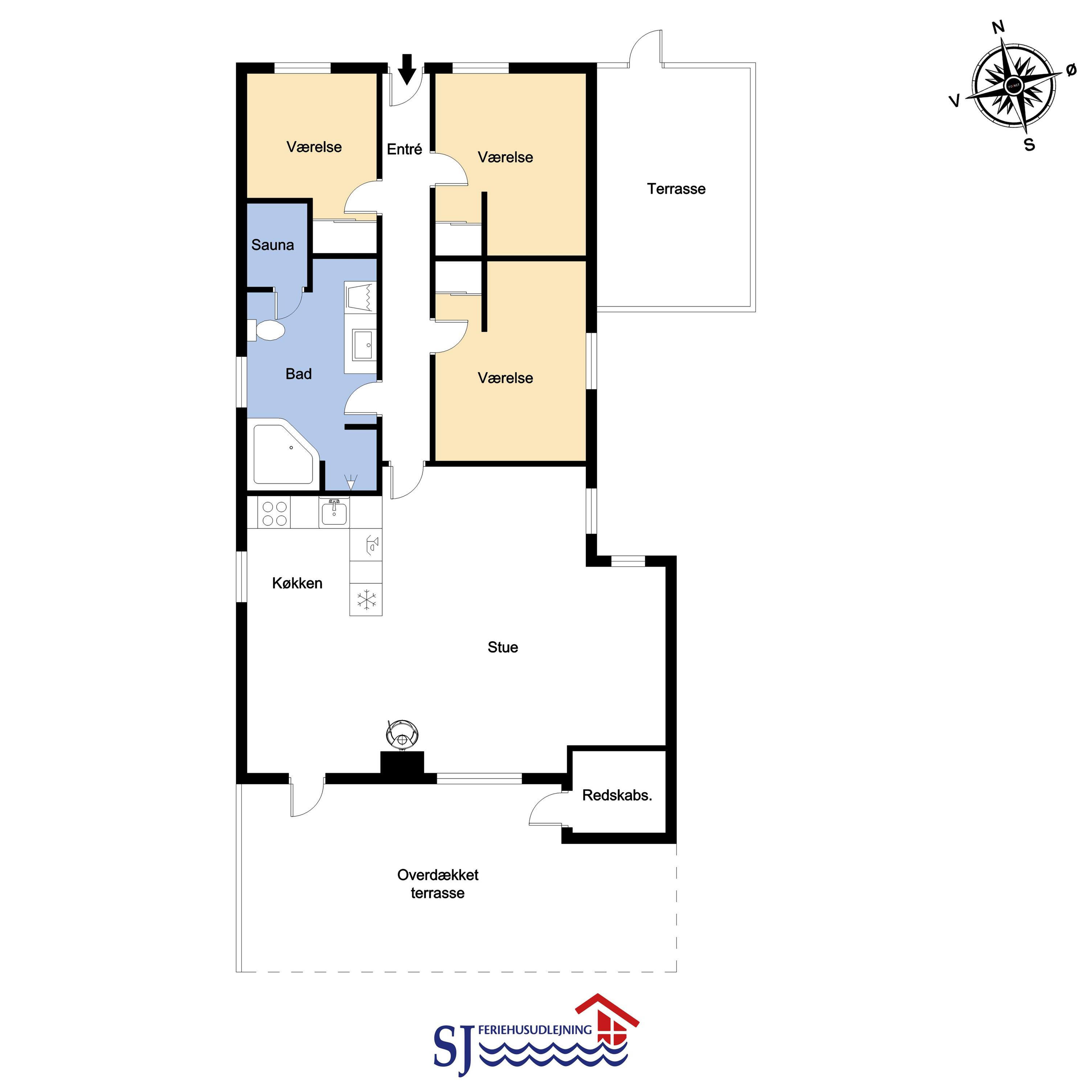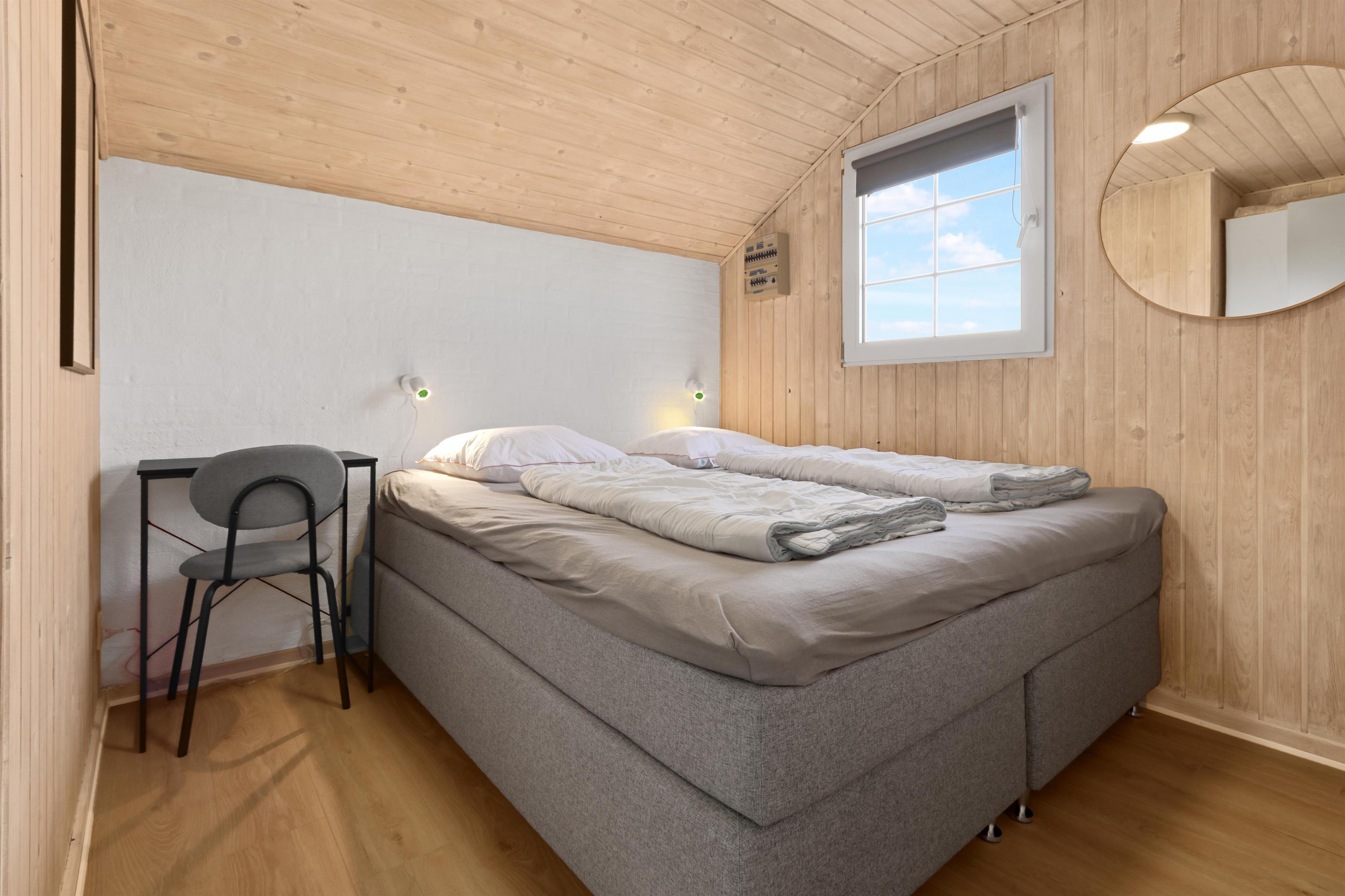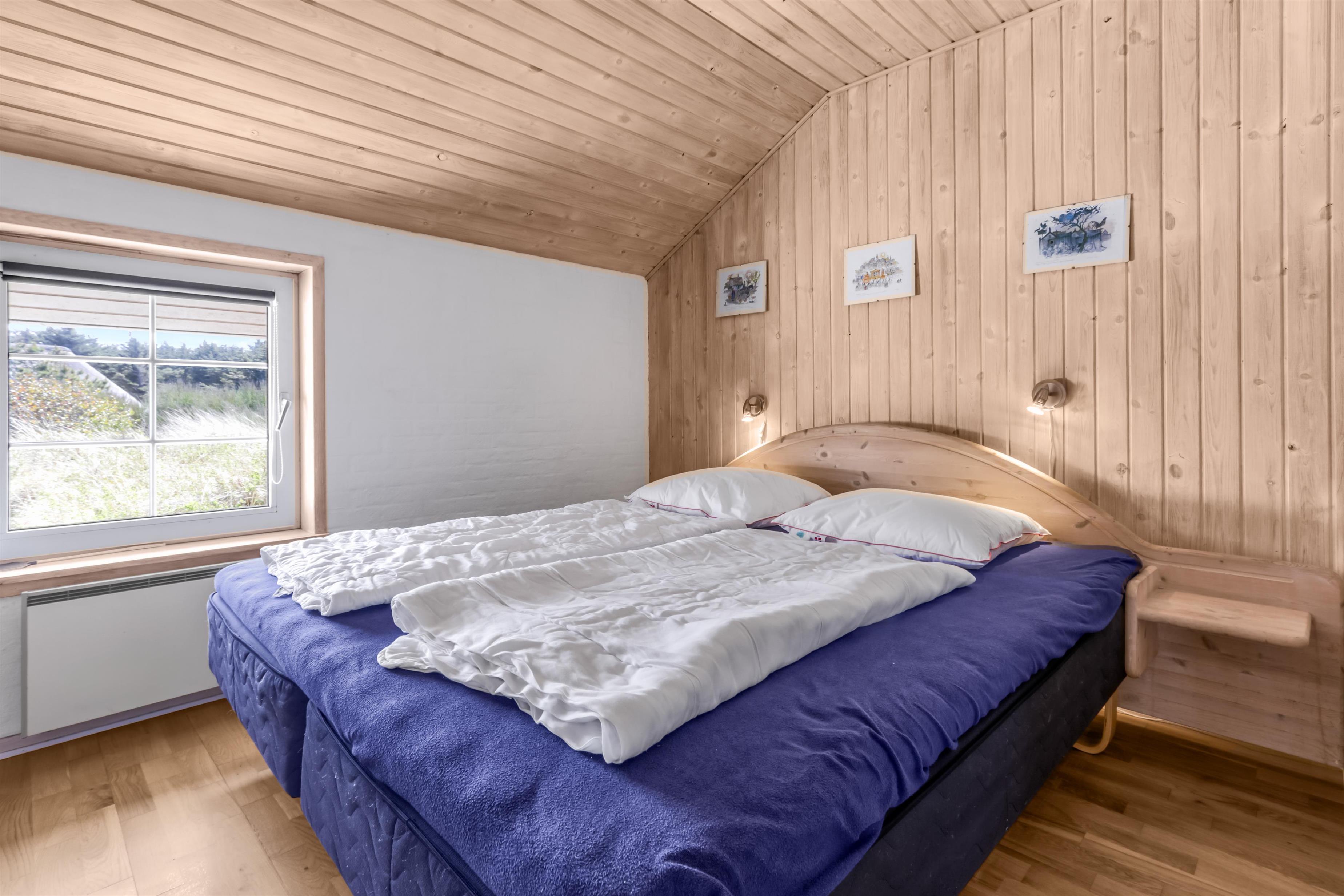 Feriehuset rummer tre soveværelser med to dobbeltsenge og én enkeltseng, og er derfor velegnet til både par og familier.