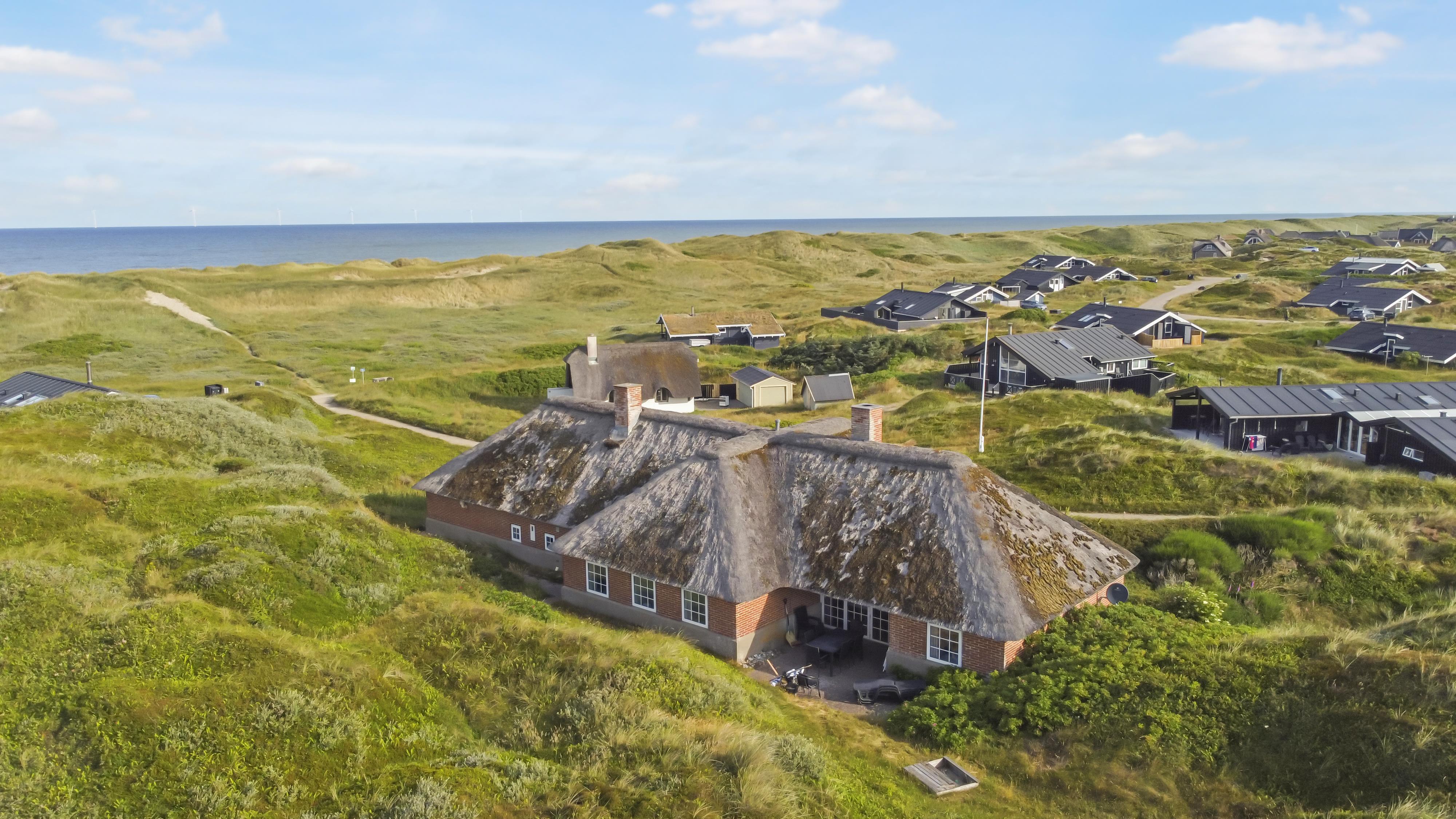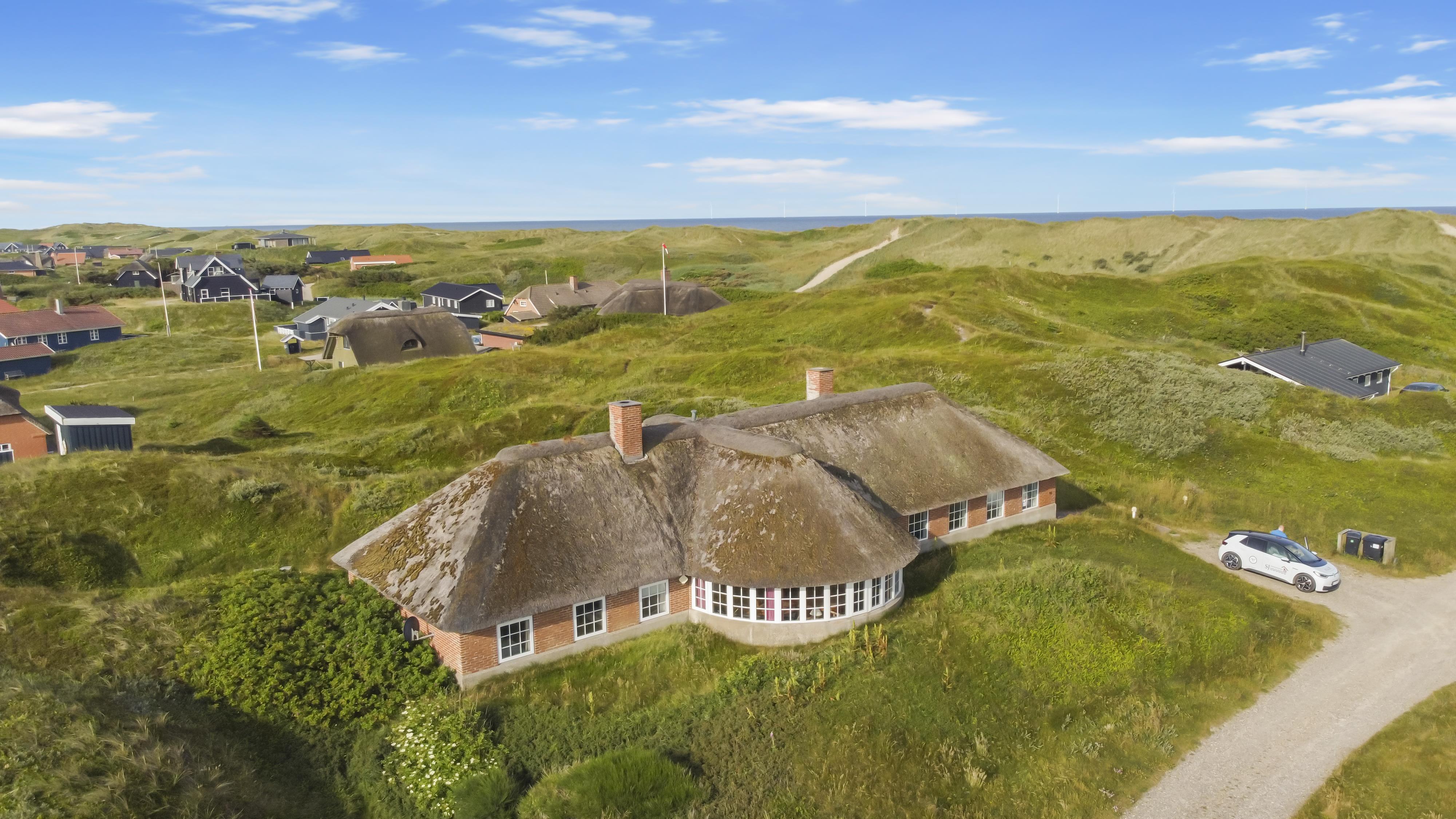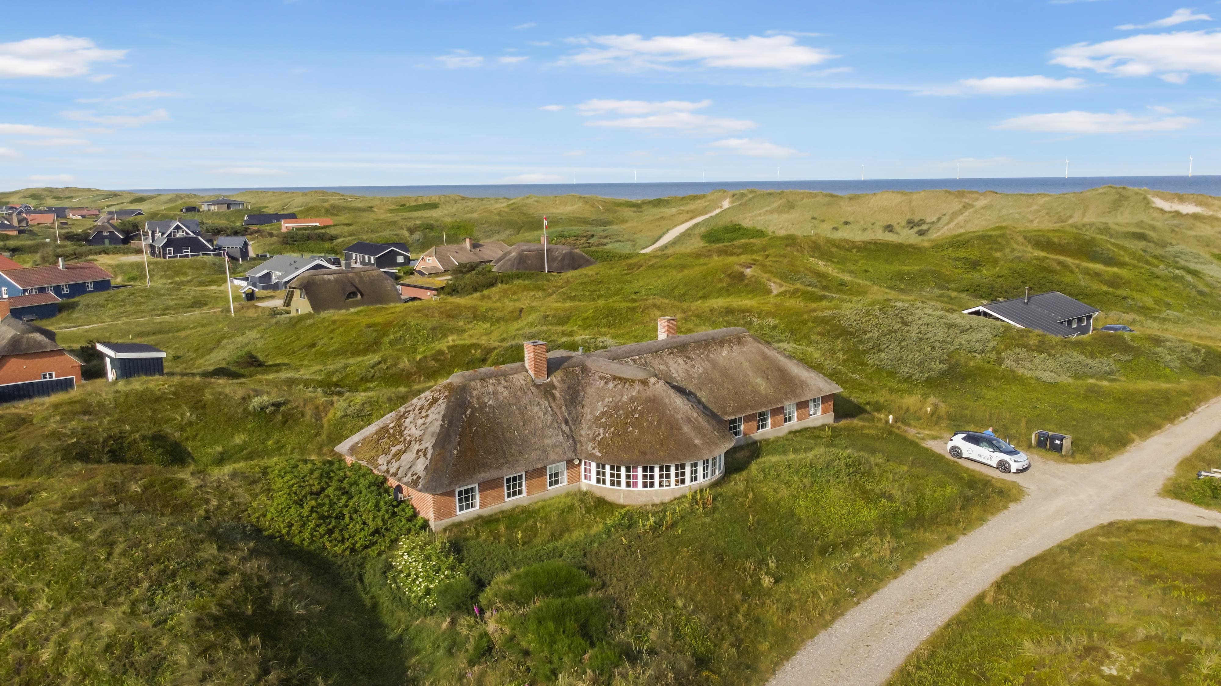 Dette flotte, stråtækte feriehus er pragtfuldt beliggende på en klitgrund kun 150 m fra Vesterhavet på en 3000 m2 kuperet natur klitgrund med kig klitterne fra grunden. Huset råder over en åben og en overdækket terrasse med havemøbler, solvogne og grill. Et rigtig dejligt feriehus som på alle årstider vil kunne danne rammen om en vellykket ferie. Har man lyst til at udforske området, er der rige muligheder bl.a. kan man køre en tur til Bovbjerg og besøge Bovbjerg Fyr, her er der altid mange gode arrangementer og cafèen er indbydende og har altid et godt hjemmelavet måltid med råvarer fra området. Eller prøv det store kage tagselvbord som bugner af rigtig lækre hjemmelavede kager. Ovenpå sådan et kagebord kan man gå en tur ned på stranden ad trapperne og få brændt kalorierne væk, eller gå en tur op i fyret og se udsigten over området og ud over Vesterhavet.