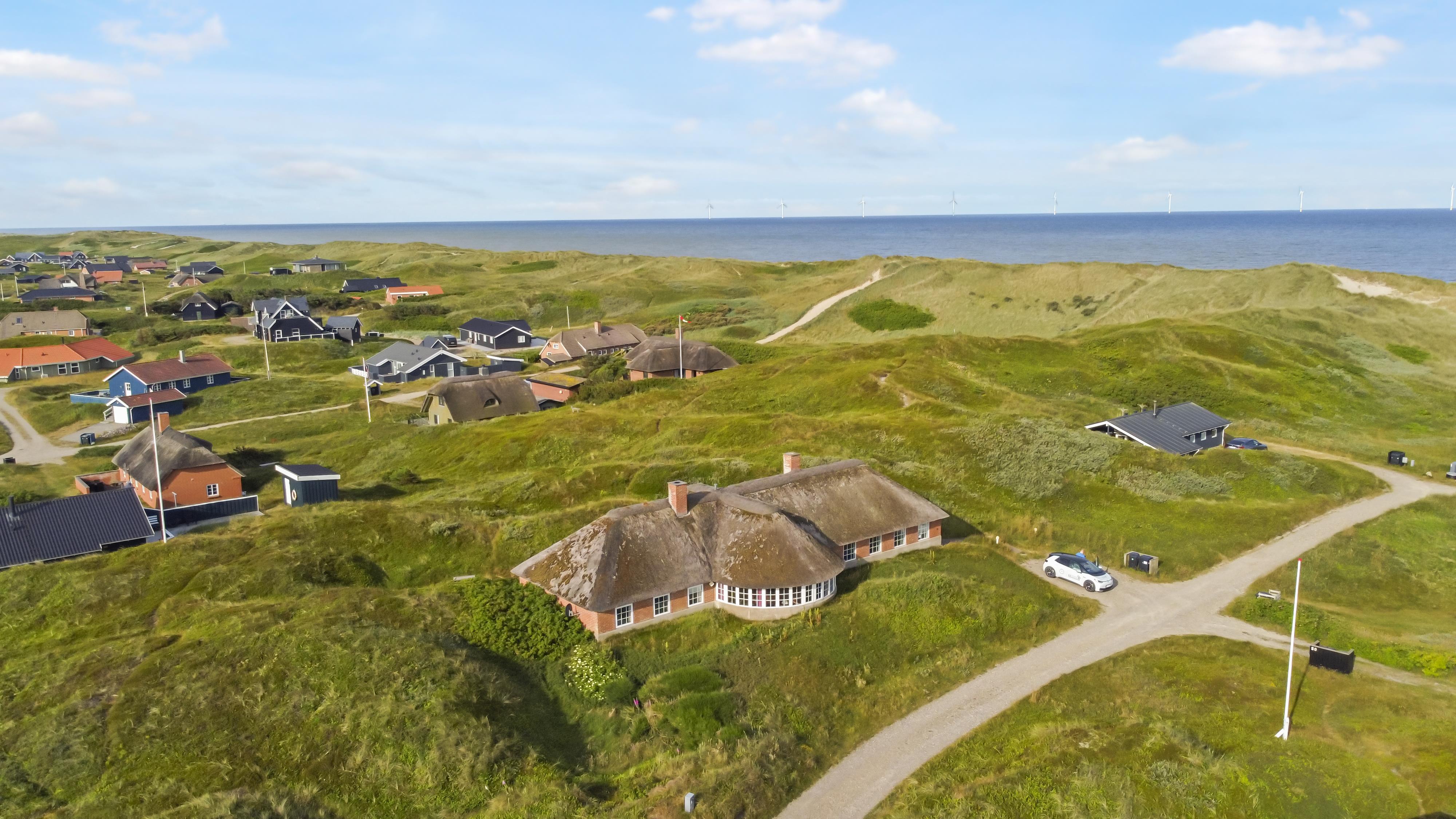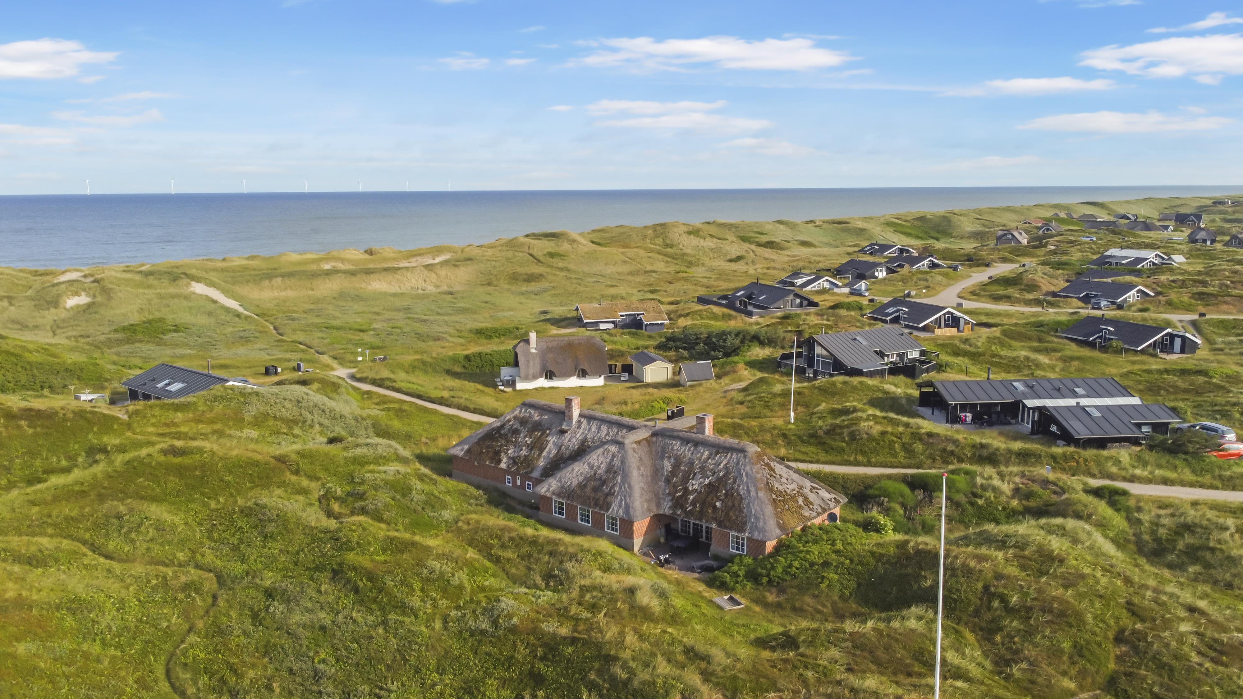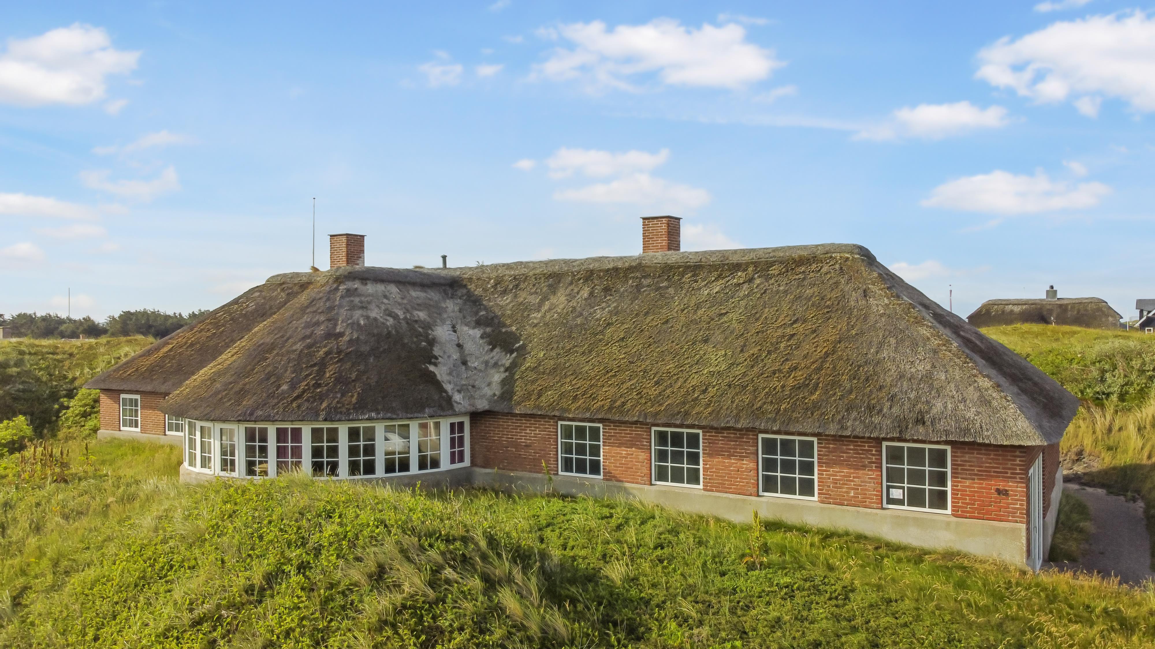 Dette flotte, stråtækte feriehus er pragtfuldt beliggende på en klitgrund kun 150 m fra Vesterhavet på en 3000 m2 kuperet natur klitgrund med kig klitterne fra grunden. Huset råder over en åben og en overdækket terrasse med havemøbler, solvogne og grill. Et rigtig dejligt feriehus som på alle årstider vil kunne danne rammen om en vellykket ferie. Har man lyst til at udforske området, er der rige muligheder bl.a. kan man køre en tur til Bovbjerg og besøge Bovbjerg Fyr, her er der altid mange gode arrangementer og cafèen er indbydende og har altid et godt hjemmelavet måltid med råvarer fra området. Eller prøv det store kage tagselvbord som bugner af rigtig lækre hjemmelavede kager. Ovenpå sådan et kagebord kan man gå en tur ned på stranden ad trapperne og få brændt kalorierne væk, eller gå en tur op i fyret og se udsigten over området og ud over Vesterhavet.